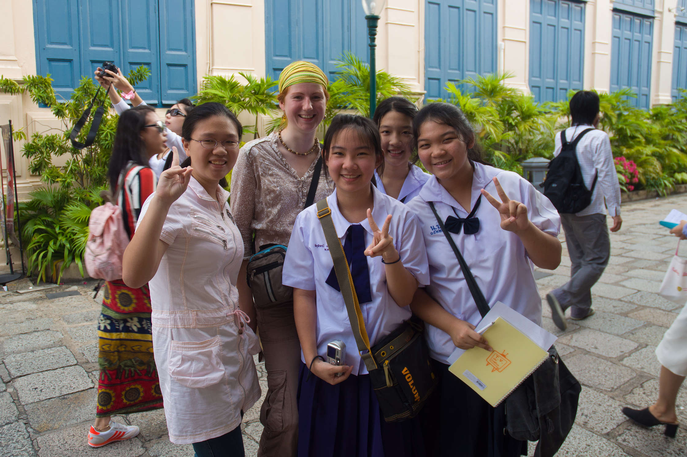 Pēc biļešu iegādes steidzām apskatīt visus galvenos tempļus, pilis un dažādās smukās vietas Bangkokas centrā. Tempļi te ir ļoti skaisti un vārdos neaprakstāmi. Vakarpusē kādai tantei prasījām kur atrast tuvāko aptieku, sanāca arī nedaudz parunāties, un viņa mums ieteica nebraukt tuvāk valdības ēkai pilsētas ziemeļos, jo tur noticis kārtējais protests, un sprādziena rezultātā cietuši kādi cilvēki. Centrā esot droši. Par ko arī paši bijām pārliecināti, jo visa ceļojuma laikā nevienu reizi nekādi nejutāmies apdraudēti un neredzējām nekādus agresīvus vai uz ļauniem darbiem tendētus cilvēkus. Par piekrāpt mūs neviens negribēja.