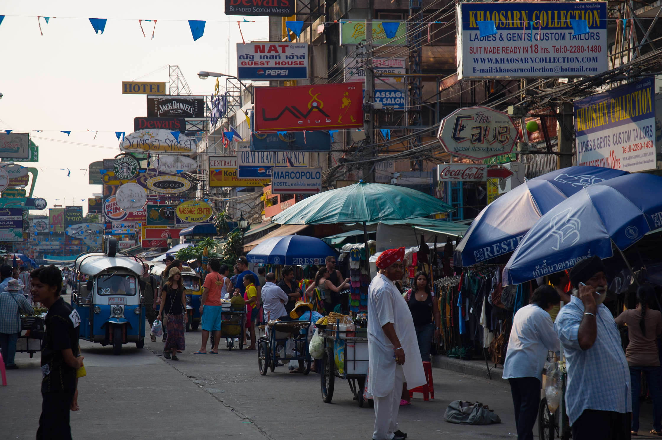 Pirmais iespaids par pilsētu - ļoti līdzīga Mumbajai, kurā biju agrāk šogad. Līdzīgs klimats, līdzīga pilsētas uzbūve un atmosfēra. Bet šis pirmais iespaids vēlāk mainījās un kad Bangkoku jau sākām labāk pārzināt, tad jau Mumbaja pavisam no prāta bija pazudusi. Pēc iečekošanās Viengtai, devāmies pa taisno uz Pantip Plaza, kurš itkā esot labākais veikals kur meklēt visādas tehniskas ierīces - tāpēc, ka ar nodomu nebiju paņēmis līdzi fotoaparātu, jo cerēju te iegādāties jaunu, daudz lētāk kā Eiropā. Uz turieni devāmies ar kuģīti, kurš maksā lētāk nekā jebkas cits pilsētā, un ir daudz ātrāks par autobusiem, jo tam netraucē nekāda cita satiksme. Pēc kuģīša pārkāpām Tuk-Tuk, kas ir tāds kā motocikls ar jumtu un aizmugurē esošu sēdekli kurā satilpst ~3 cilvēki. Izdomājām ar laiku izmēģināt visus transporta līzekļus šajā valstī. Kas vēlāk arī izdevās.