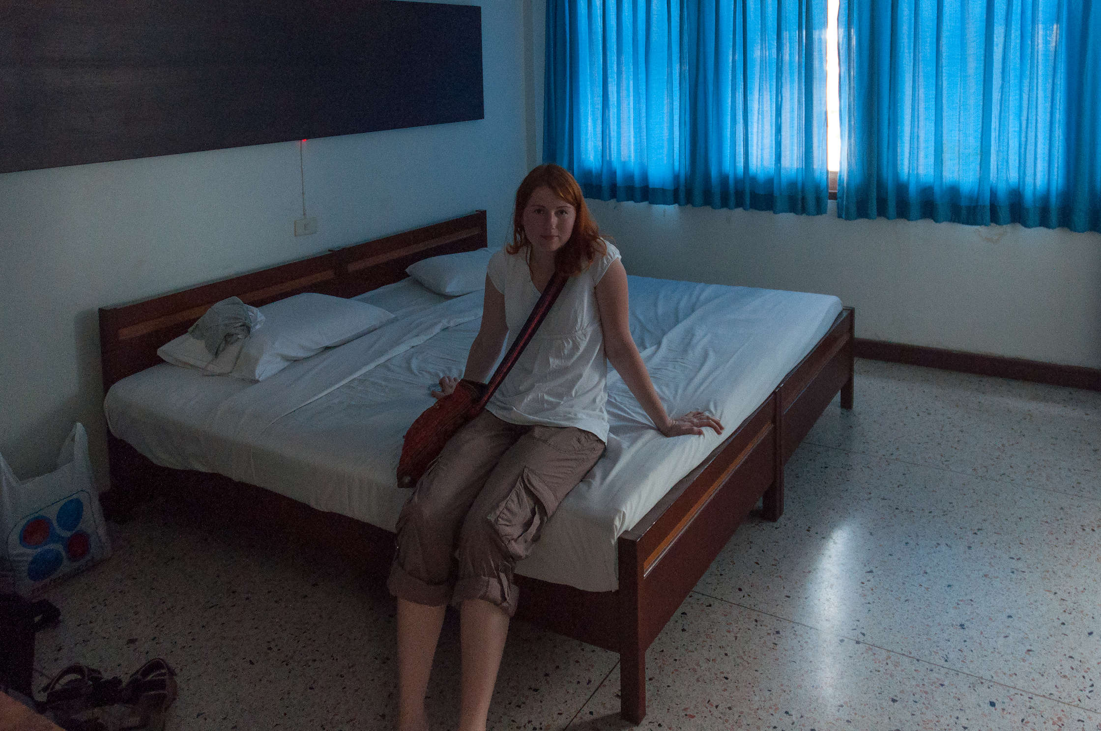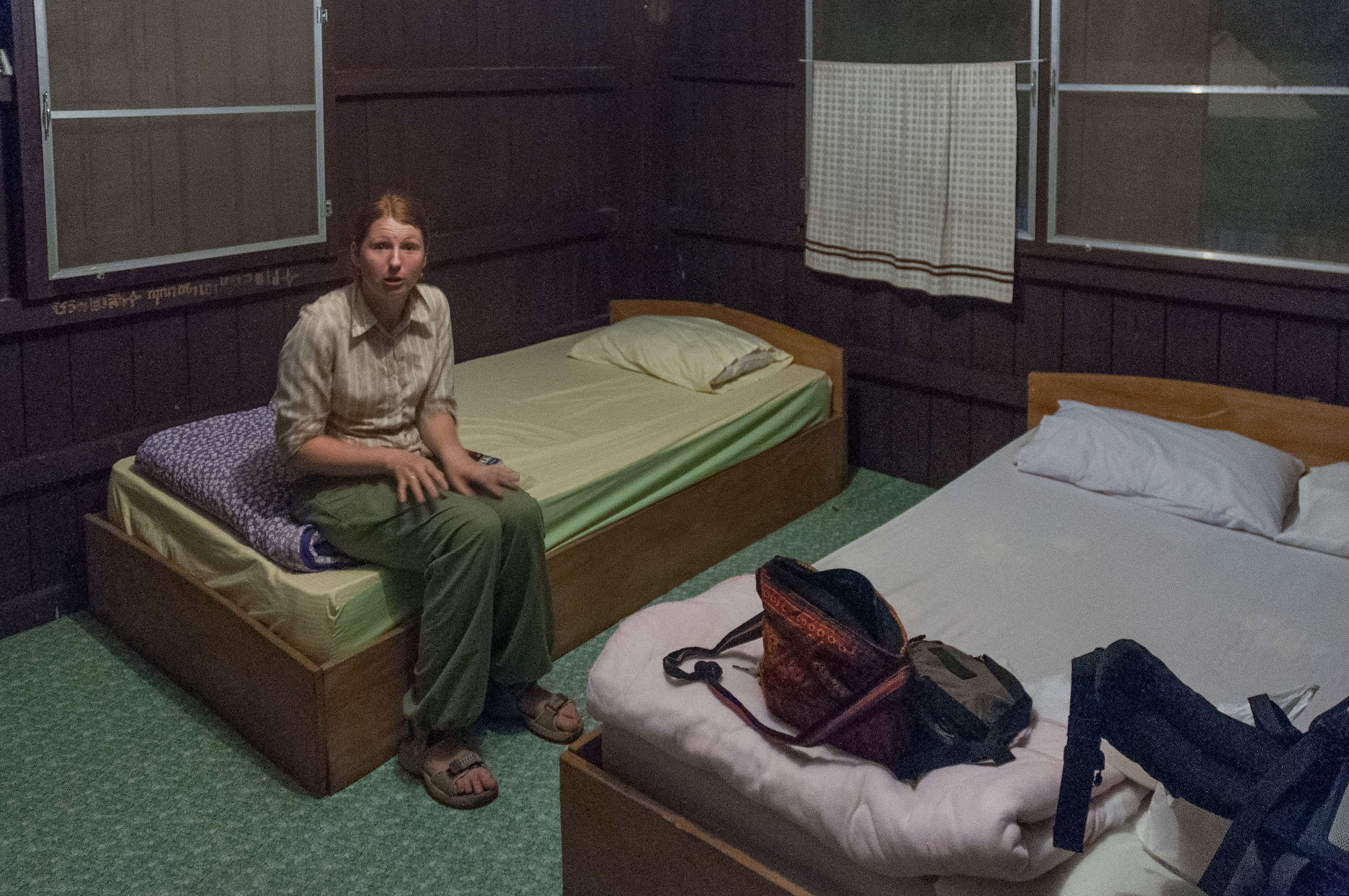 Ielīdām visai cietajā gultā un aizmigām, lai nākamajā rītā dotos uz Laosu.