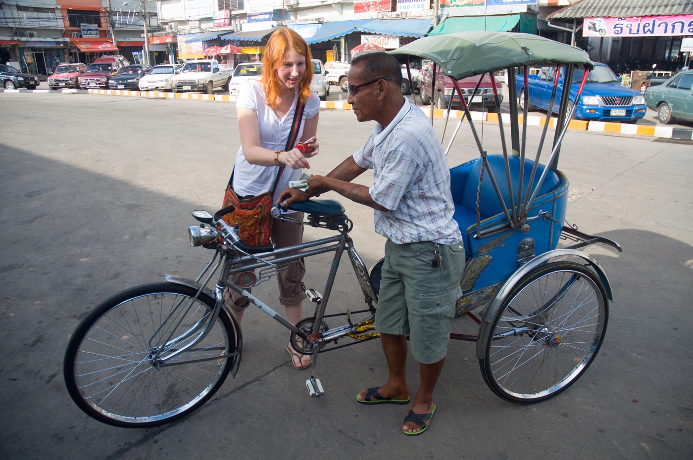 Pie šī paša cilvēka sarunājām arī rīdienas braucienu pāri Laosas robežai. Būtībā nav nekāda problēma pašiem tikt pāri, bet par ekvivalentu summu saņēmām braucienu ar auto līdz upei, biļeti uz prāmi, ārpus rindas “immigration checkout”, taksi otrā pusē uz 10km attālo autoostu, un pašu biļeti. Īsi sakot ietaupīts laiks.