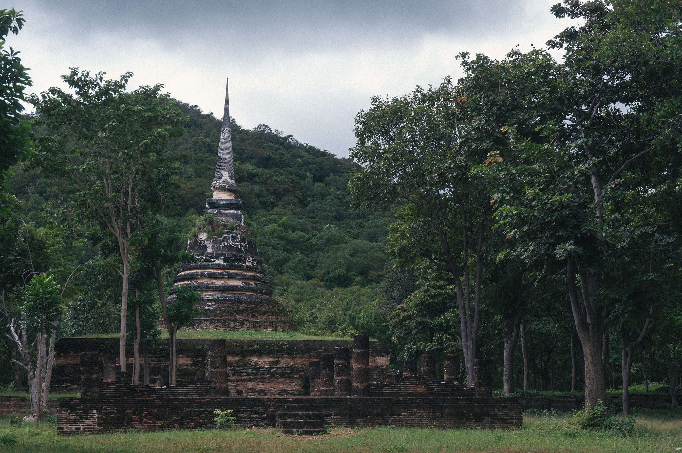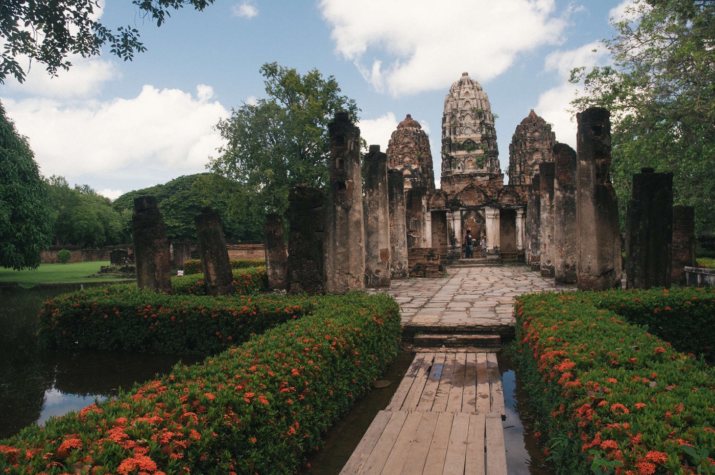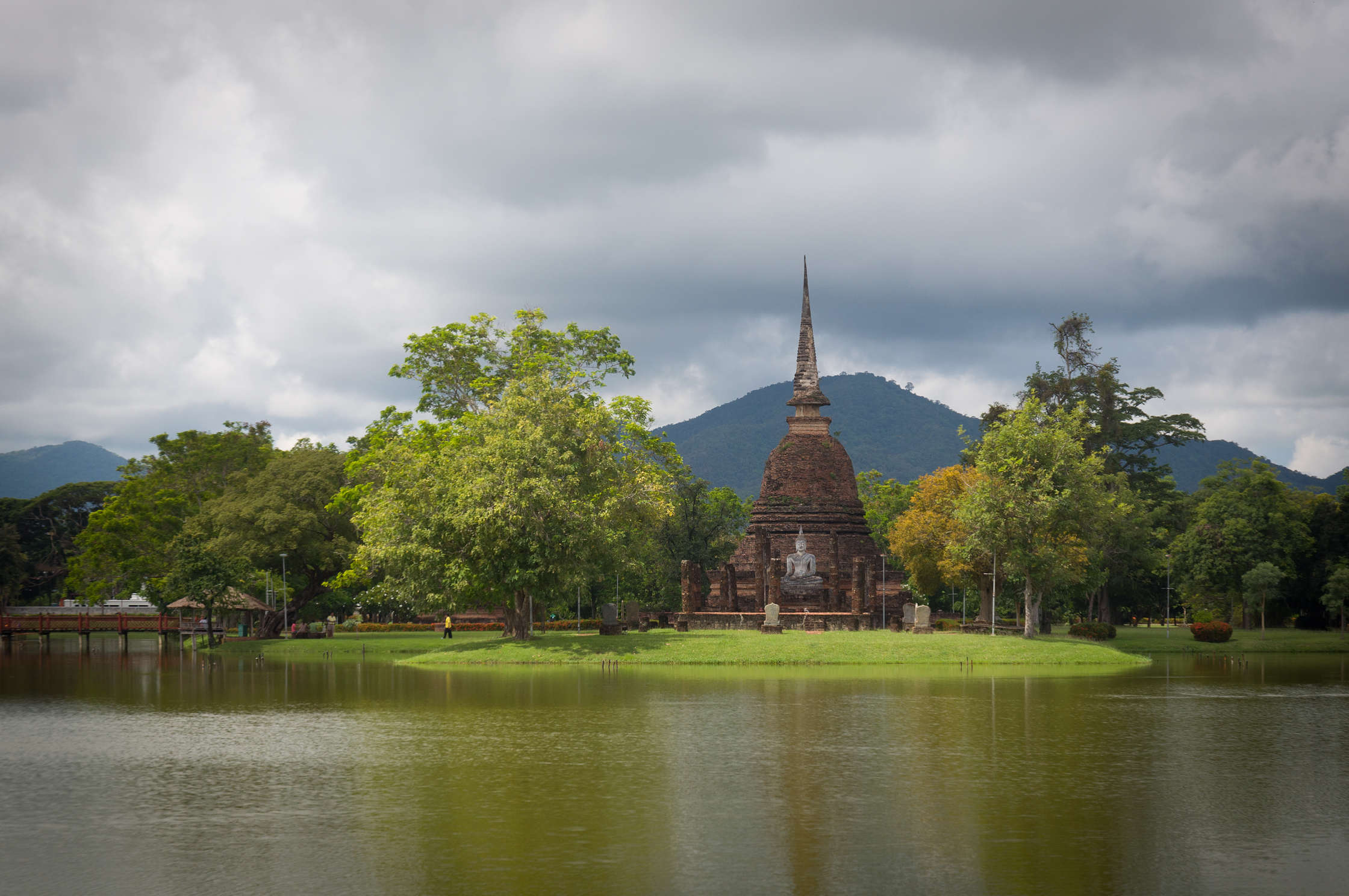 Brauciens uz Sukhotai bija visai dīvains, pirmkārt autobuss nobrauca pāris kilometrus, un visus pasažierus izmeta ārā kādā mazpilsētā, kur tālāk ar TukTuk vajadzēja braukt uz Autoostu, tur meklēt autobusu uz Tak, un mēģināt iestāstīt vadītājam ka mums vajag līdz Historical Ruins. Autobusā gāja televizors kurā rādija Tajiešu humora raidījumu, kurā tika parodēti baltie tūristi. Tajietis ar blondu parūku, tērpies šortās un vestē, dimdināja apkārt ar lielajiem pārgājiena zabakiem un skaļi smējās. Stilīgi protams, bet man bija sajūta ka tas tika speciāli mums uzlikts. Pati Sukhotai Historical Park ir sīka vieta, centrēta uz senu pilsētu, kurā daudz dažādu sagruvušu tempļu un lielu Budas statuju. Tur ir ļoti skaisti un tas viss komplekss ir vienkārši milzīgs. Daudz arhitektūras ir Khmēru laika, tapēc vietām izskatās pēc Angkor Wat, tikai protams mazākos izmēros.