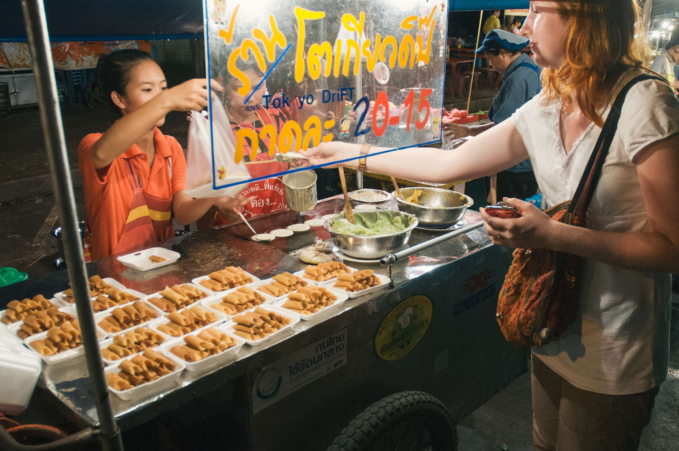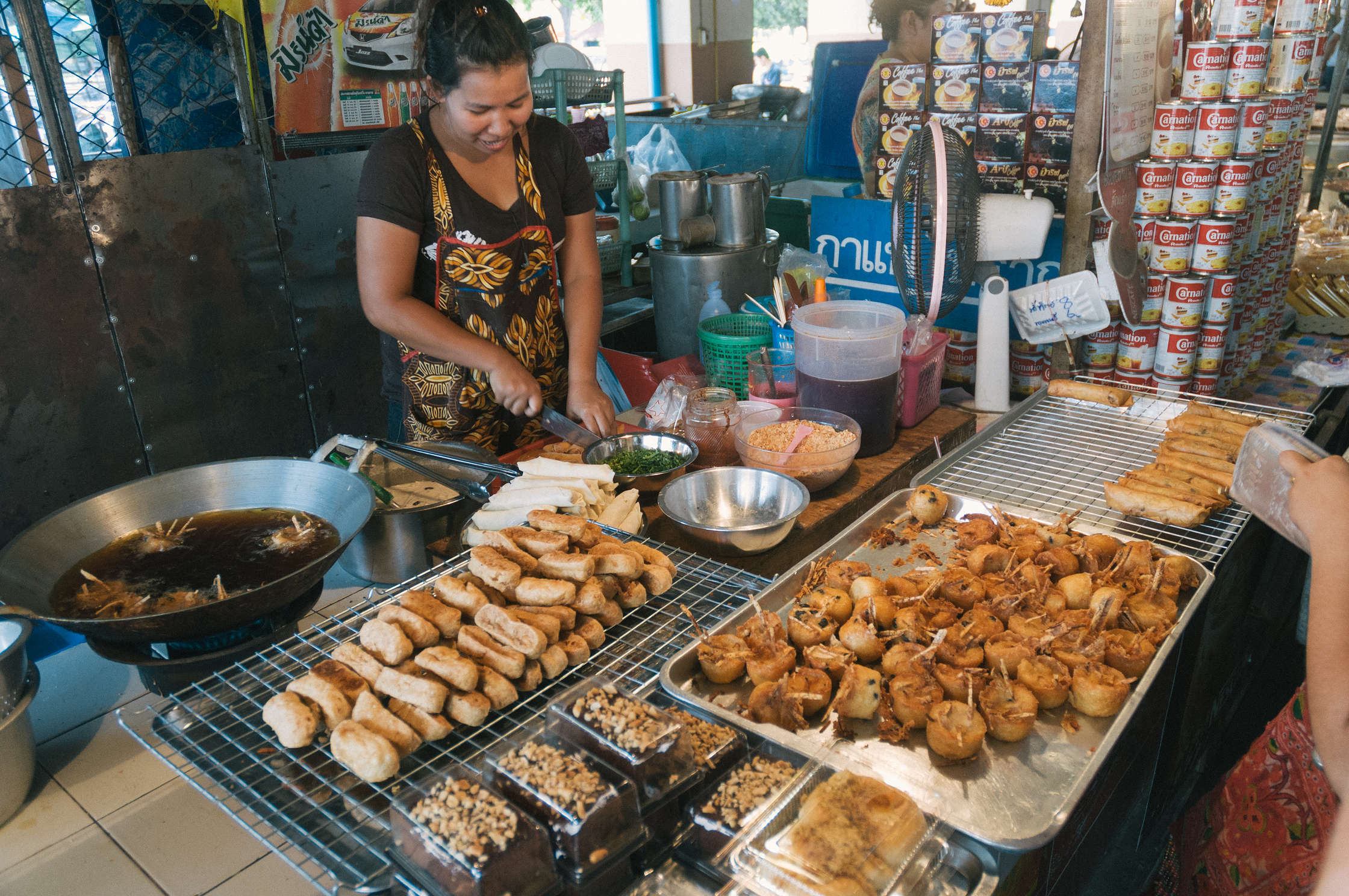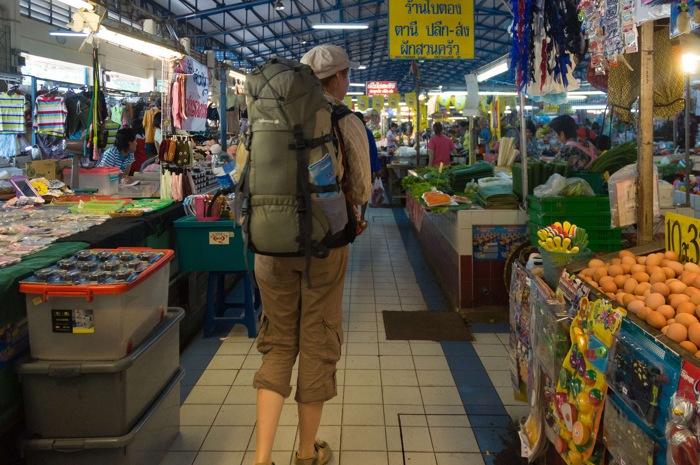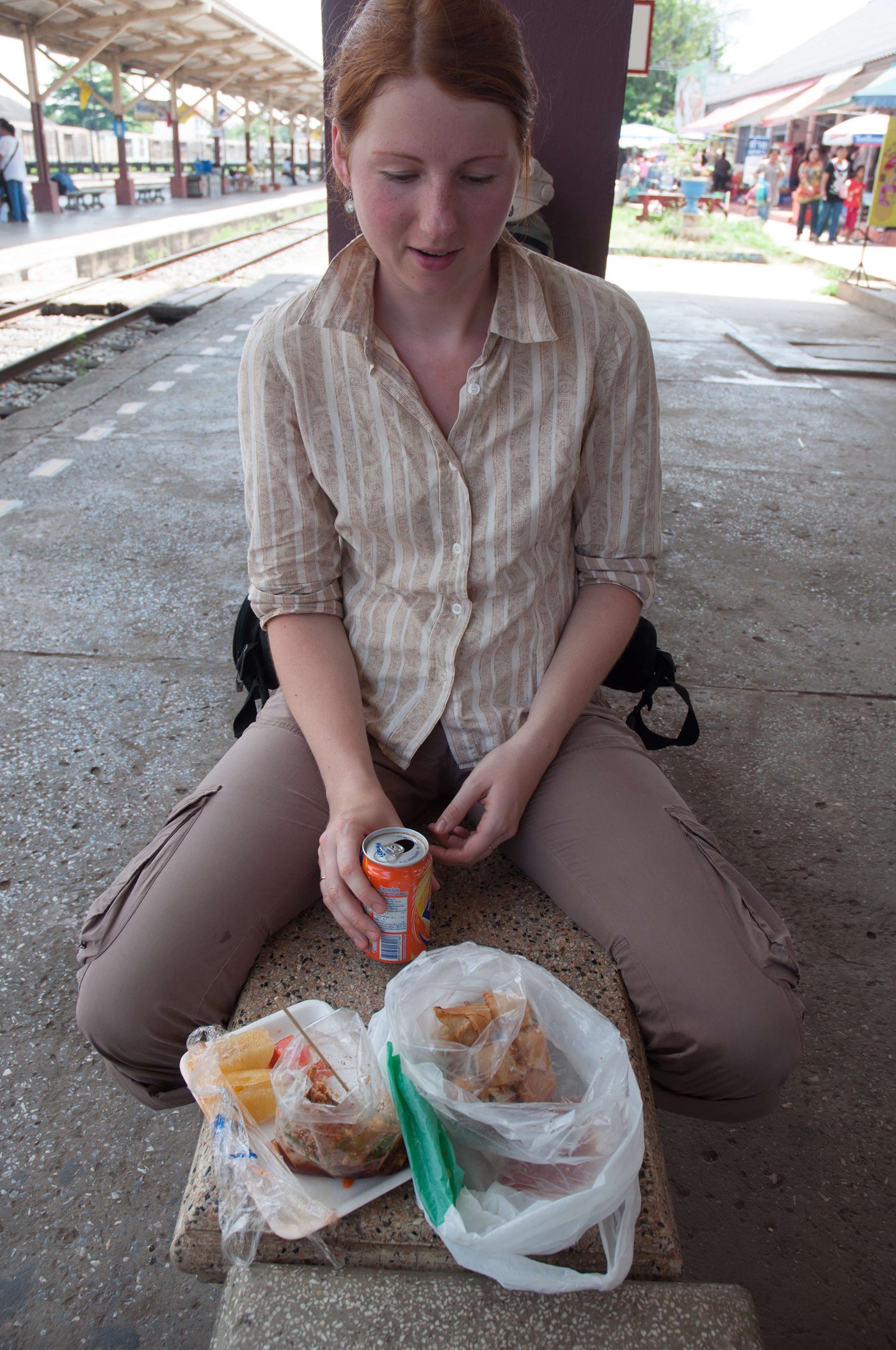 Nākamajā dienā pastaigājām pa pilsētu, bijām tādā kā supermārketā, un tad jau vēlāk devāmies uz staciju paēst - pie tās ir lielisks augļu un dārzeņu tirdziņš, kur mēs jau bijām uzsākuši lielo augļu diētu šajā ceļojumā. Vēl tur bija forša vieta kur cepa interesantus gardumus eļļā - izņemot Spring Rolls es nekam nosaukumu nezinu, tapēc nemaz necentīšos aprakstīt, ja nu vienīgi to ka tur bija gan saldas gan sāļas lietas, viss bija lēts un garšīgs, un visu dod celofāna maisiņos (pat aso mērci, un kolu).