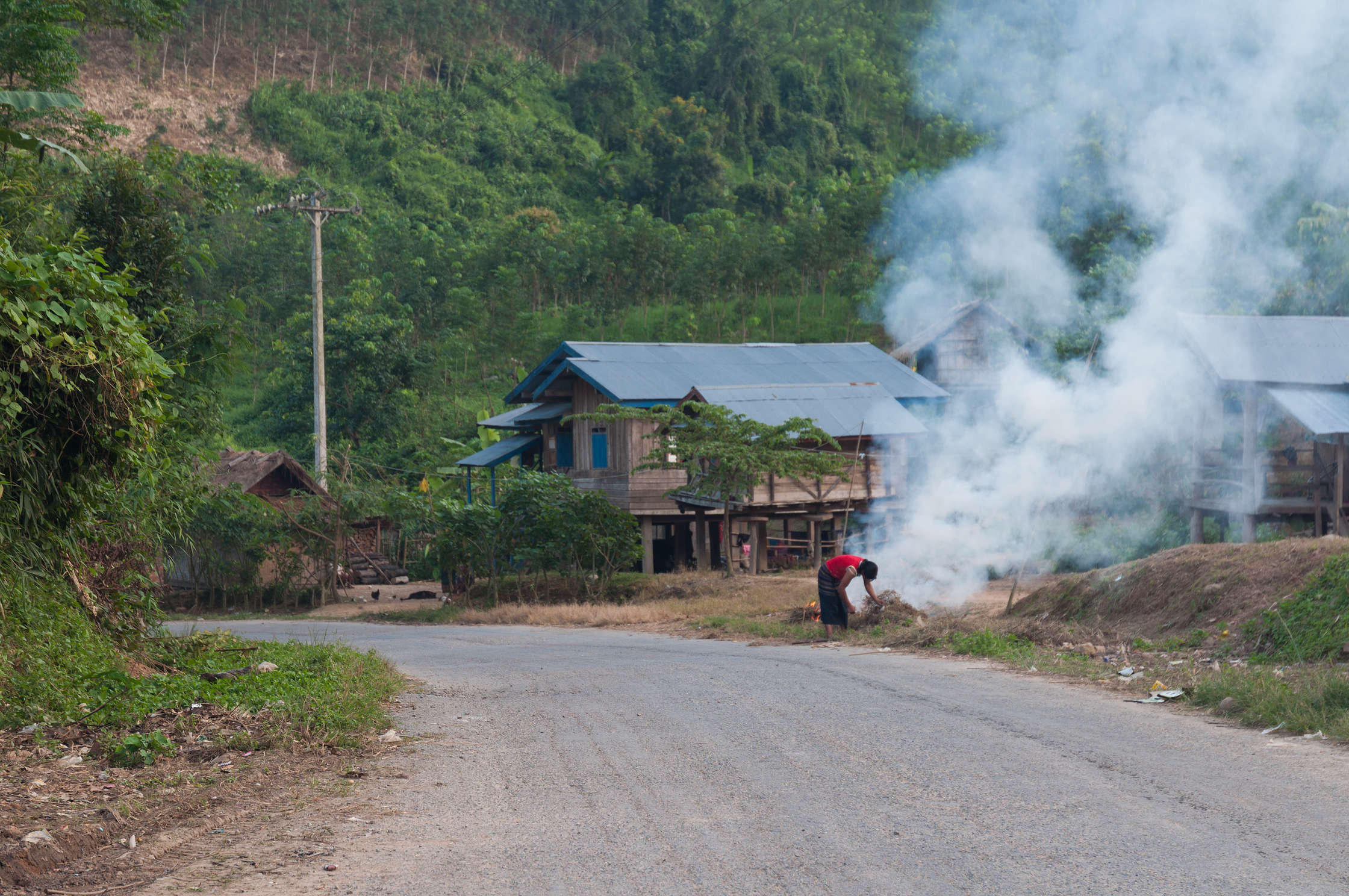 Brauciens bija pasakaini skaists, jo ceļš vijās līkločiem augšup kalnos, ar fantastiskiem skatiem uz bezgalīgajiem mežiem un upēm, nekādas civilizācijas kur skatiens sniedzas. Ilgi gan braucām, jo brīžiem citādi labo asfaltu bija sabojājuši nogruvumi, turklāt stāvums brīžiem bija ļoti liels, taču kautkā nonācām gala mērķī, kur bija plānots palikt pa nakti. Izkāpjot gan Luang Namtha nedaudz lika vilties, jo izskatījās pēc plakanas garlaicīgas middle-of-nowhere pilsētiņas ne lielākas par Rubu vai Auci (izmērs gan totāli nebija noteicošais), tapēc momentā pārkāpām maziņā Tuktukā, un kopā ar kautkādu ģimenīti kas veda preces uz pārtikas veikalu, braucām uz daudz tālāku miestu - Muang Sing.