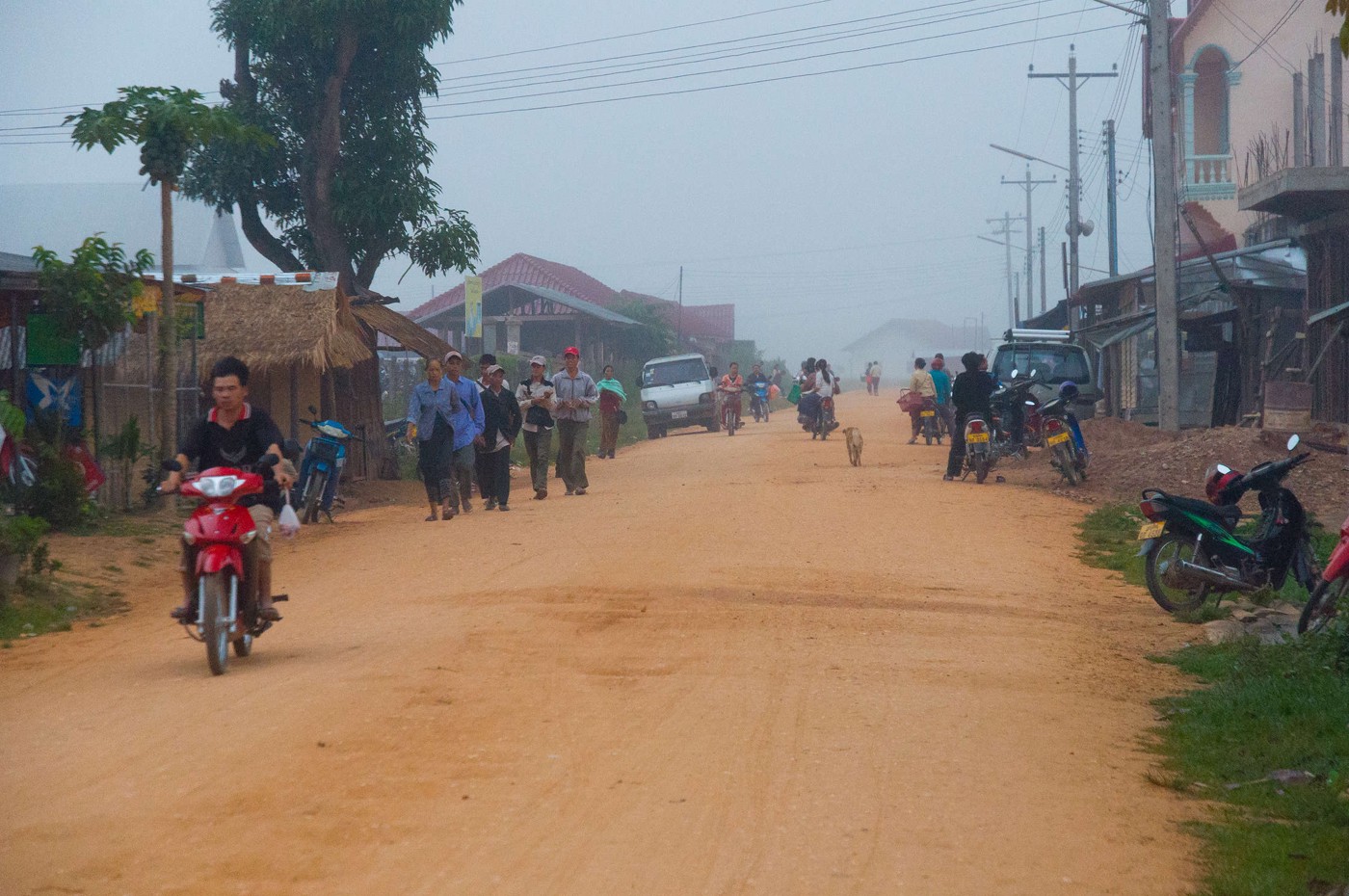 Īstenībā, kā mēs pēc tam secinājām, šādi ciemati ir visā Laosā, patiesībā tāda arī ir lielākā daļa Laosas. Protams to neredz tie kas brauc ar laivu pa taisno uz “lielo” pilsētu (tādu Ogres izmēra pilsētu ir kādas 4-5), un seko tūristu takai - tur viss ir ļoti attīstīts, bet šeit - laukos - lai kur mēs nebrauktu, gar ceļiem bija tikai šādi ciemati. Dažos bija pa ģeneratoram, dažos - pat valsts atbalsta saules baterijas (dažas uz ciemu, jauda 40W). Īstenībā dažreiz pat kādam no ciema ir mobilais telefons, un reizi pāris mēnešos šie cilvēki uzģērbj džinsas, un pārvēršas par parastiem cilvēkiem, iekāpj autobusā un brauc uz tusiņu kādā lielākā pilsētā. Nemaz nepateiksi, ka tikko iekāpusī meitene vēl nesen visai skrandaina sēdēja vienistabas bambusa mājiņā, un pina paklājus blakus cūkām un mālainam pagalmam.