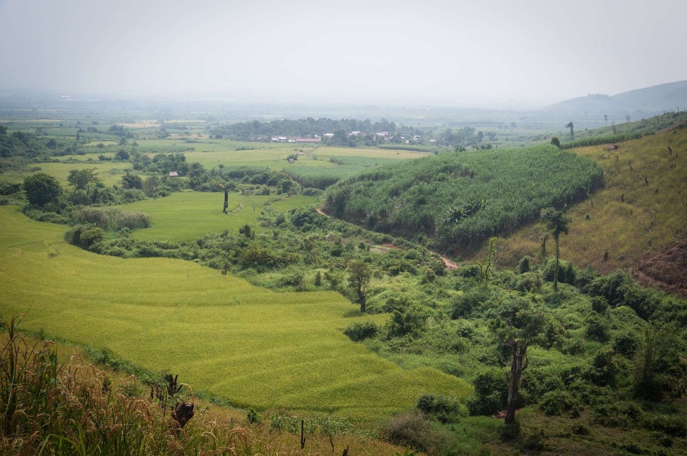 Noskatījāmies kā vietējie kalna sānā, pašā saules pannas centrā, vāc rīsus, noskurinājāmies, un devāmies augšup kalnā.