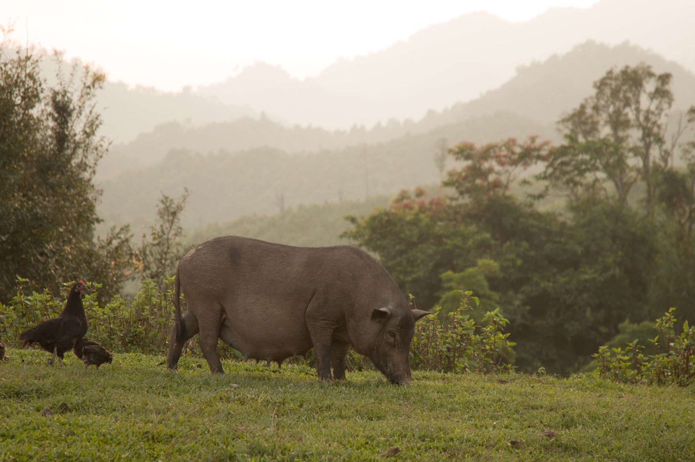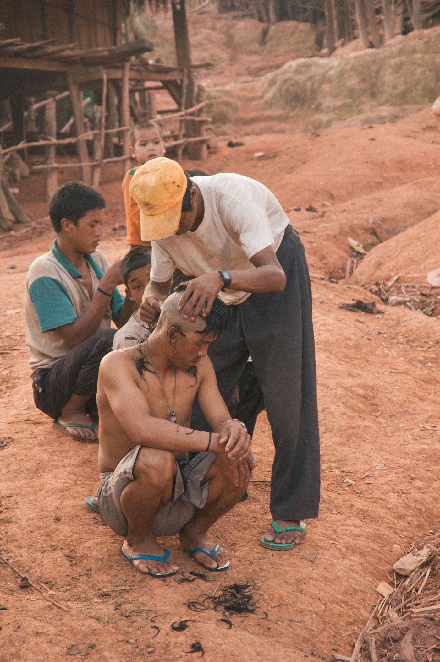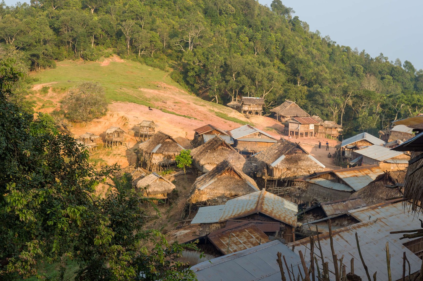 Ciemats bija fascinējošs. Bambusa un palmu lapu mājiņas, katrā pa vienai istabai, pavards turpat pa vidu zemē, nekāda skursteņa, ne logu. Cilvēki patiešām, un pavisam reāli dzīvo kā pirms gadsimtiem. Šeit nebija nekādas komercializācijas, par kādu dzirdēts Taizemes pārgājienu aprakstos, neviens naudu neprasīja, nestaigāja mākslīgi saģērbts krāsainajos tautastērpos. Būtībā mums uzmanību gandrīz nepievērsa. Cilvēki iemācijušies ka eksistē “baltais amerikānis”, kurš te reizēm tiek atvests, un ienes naudu, un nekādus vairāk jautājumus neuzdod. Nebija tā ka mūs ignorēja negatīvi, nē - paskatījās, pasmaidīja. Atļāva nofotografēt. Draudzīgi, gandrīz neitrāli. Ciemā lielākais pārsteigums bija dzīvnieku daudzveidība, un tas ka viņi visi savā vaļā iet kur grib, nekādas sētas vai aploku, visi kopā un viens uz otra. Vistas, cūkas, govis, kazas - visi blakus viens otram, tie bija visur.