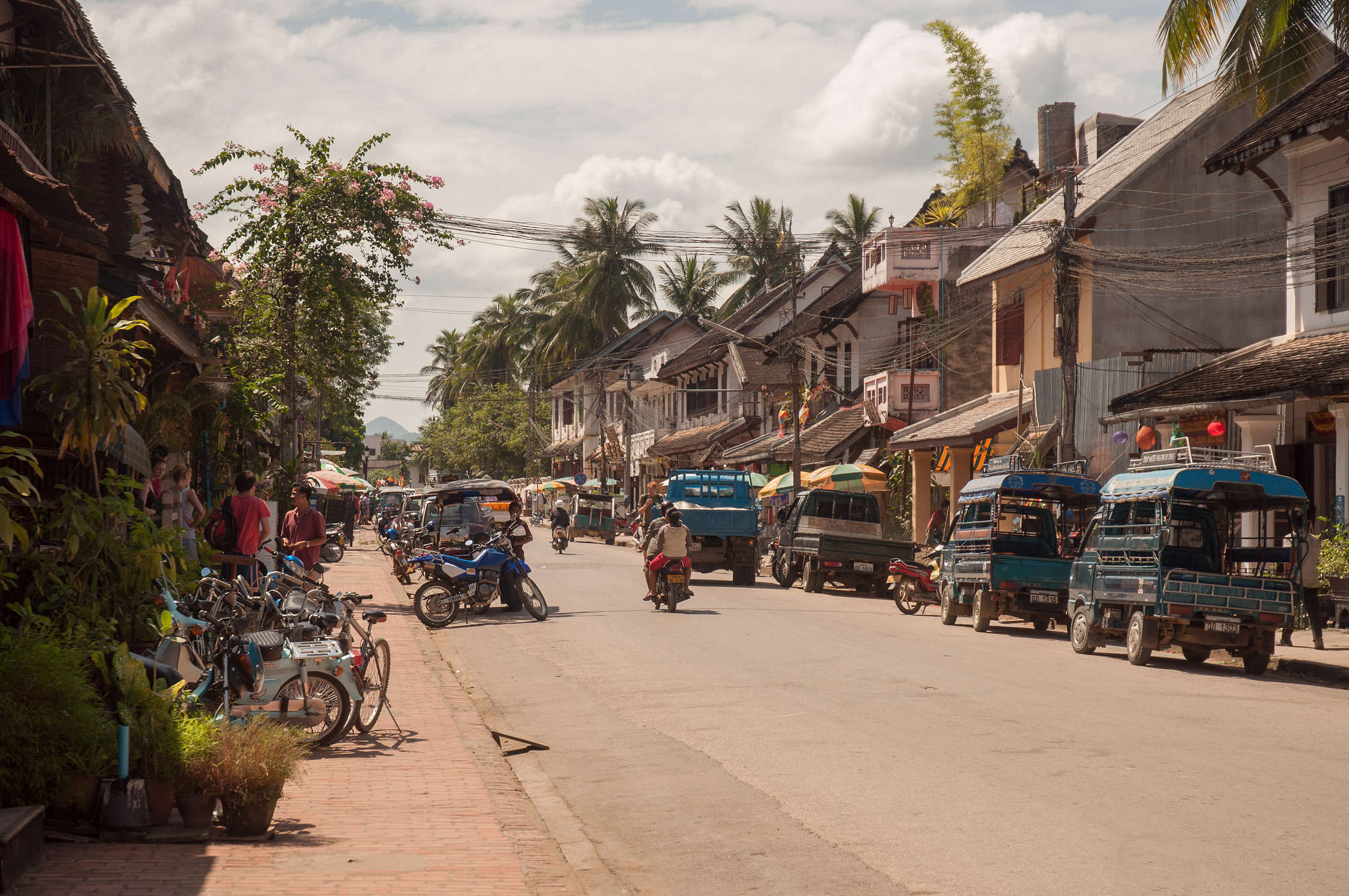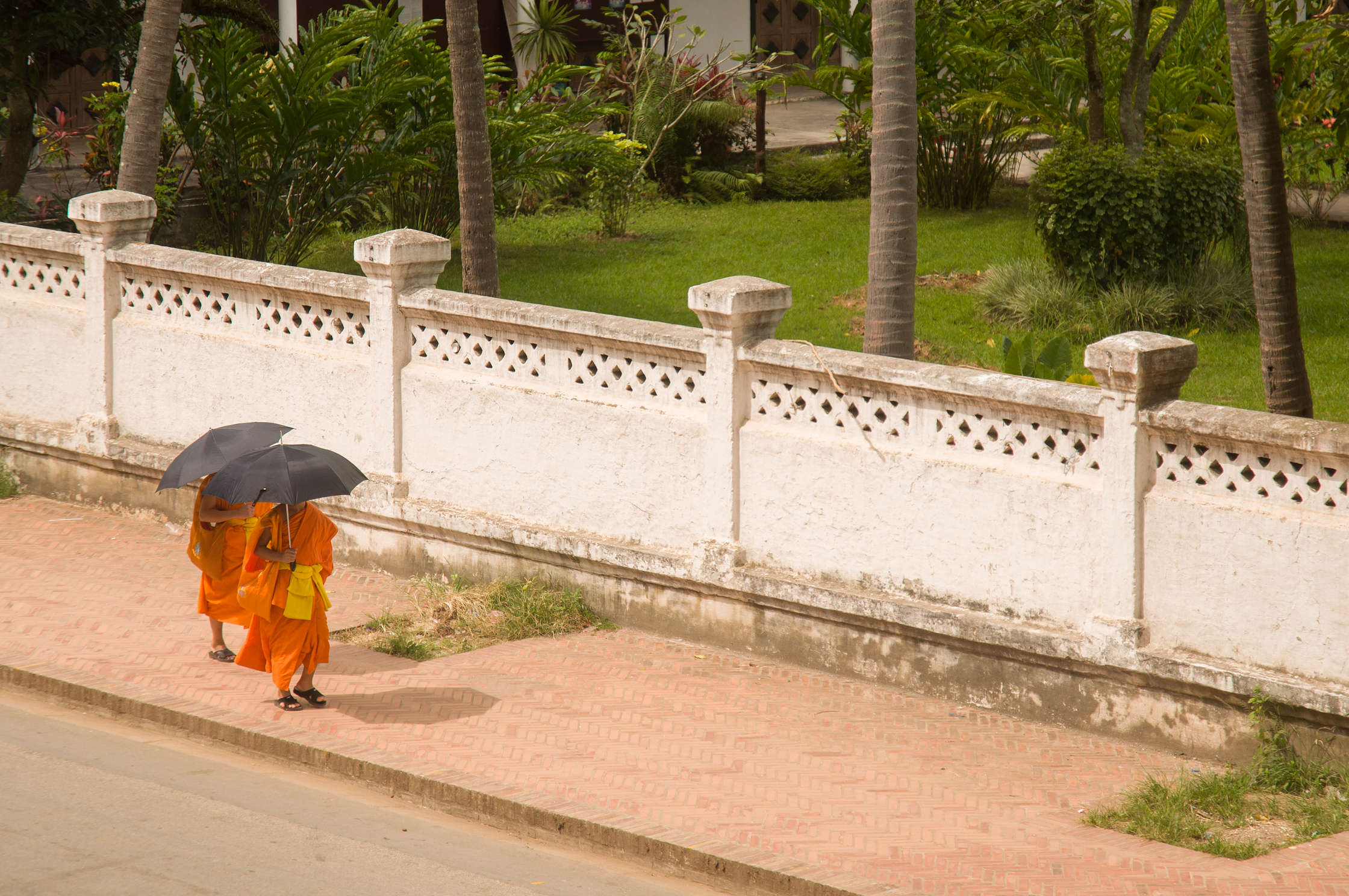 Rīts pēc svētkiem bija saulains, karsts un pilnīgi tukšs. Ielas bija kā izmirušas, un visi saldi gulēja pēc vakardienas svētkiem. Pirmā lieta ko gribējām izdarīt - paēst. Izrādijās ka visas daudz maz sēžamās iestādes Luang Prabang ir dārgas, patiesībā lielākā daļa ēstuvju šeit ir optimizētas pensionētiem eiropiešiem, kuri ēd kruasānu par 2ls, un lasa Financial Times. Mums tur nebija ko meklēt. Izstaigājām visu krustu šķērsu, līz beigās sākām iet pretējā virzienā, un atradām visai jauku kafejnīcu mūsu hoteļa rajonā, ar skatu uz Mekongu, un brokastīm par jau pieņemamāku cenu. Brokastis sastāvāja no omletes, milzīgas svaigi ceptas bagetes, un supersaldi-rūgtās Lao kafijas.