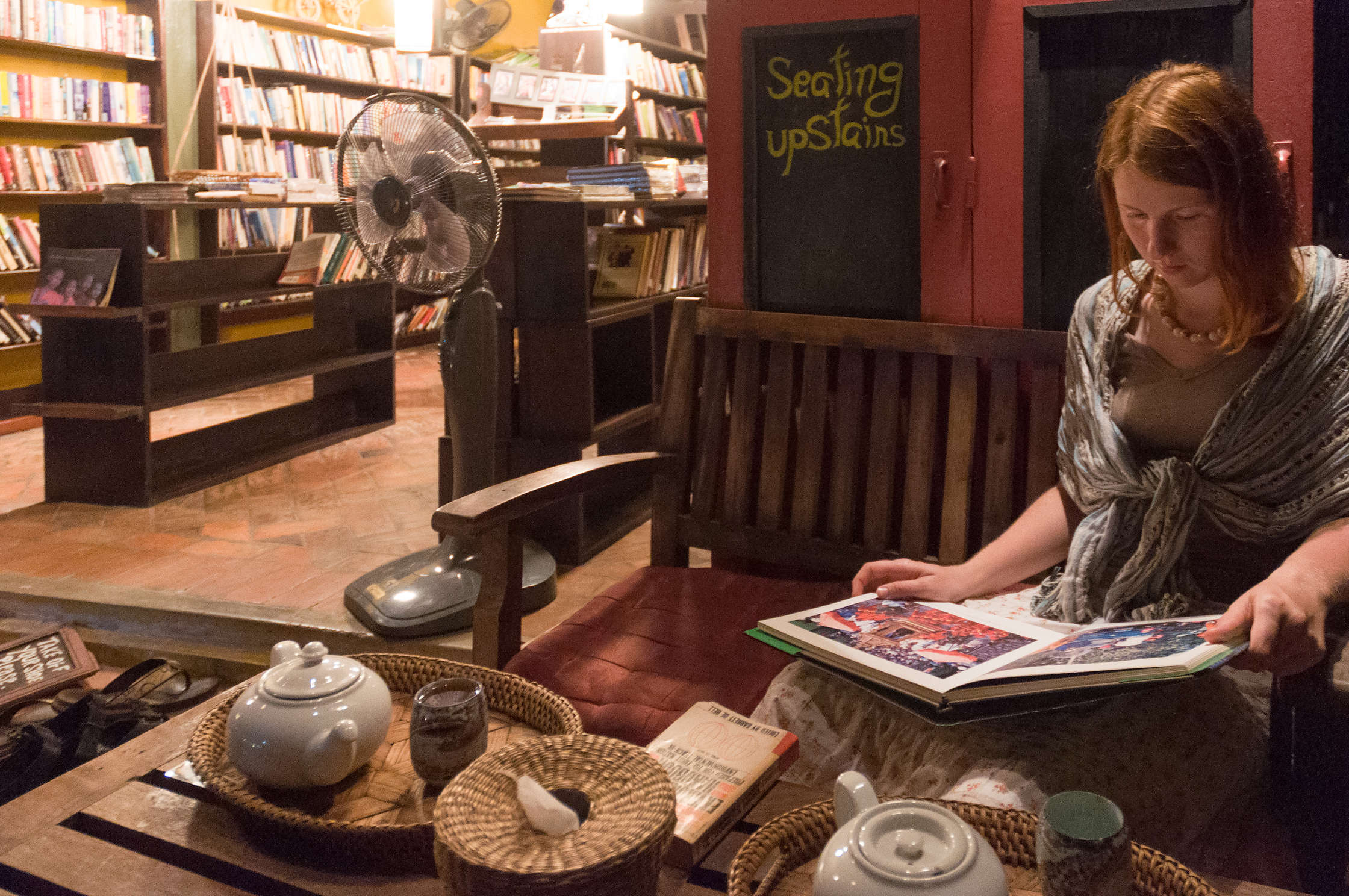 Aizstaigājam līdz tirgum, kur gandrīz 100% mantu sastāvēja no viltotiem mobilajiem telefoniem, un tad gājām uz tādu interestantu vietu kā tējnīca-bibliotēka. Fantastiska vieta, noteikti vēlētos tādu atvērt Latvijā, ja kāds to neizdarīs ātrāk. Klusa, mājīga vieta, pārpildīta ar grāmatām - pasūti tēju, izvēlies grāmatu. Fantastika. Palasīju interesantu 1970g. grāmatu par ekoloģisko krīzi (100% tās pašas problēmas kas tagad), ar ļoti interesantiem nākotnes pareģojumiem, un tad “Facing Death in Cambodia” kas man ļoti ieintriģēja, bet pēcāk nekur to vairs neatradu, un Amazon grib astronomisku summu.