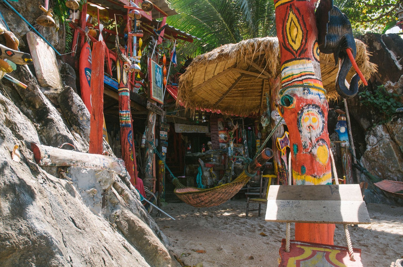 Independent Bo’s ir atsevišķa stāsta vērts. Lonely Planet stāsta, ka šīs vietas īpašnieks bungalos iebūvējis klintīs no dēļiem ko izskalojusi jūra. Un tā arī izskatās. Papildus tam, kopš Lonely Planet apraksta, visas būves ir arī apkrāsotas un izgleznotas, jo kāds traks vācu mākslinieks te bija dzīvojis septiņus mēnešus, to vien darīdams. Independent Bo nav hotelis, bungalo vai atpūtas vieta klasiskajā izpratnē. Tā ir vieta uz kuru aizbēgt, un kur palikt lai nekad neatgrieztos. Šeit apstājas laiks un pulksteni var iemest jūrā. Īpašnieks Bo ar savu skotu draudzeni Fionu ir kā ģimenes locekļi viesiem kas te paliek, jo pirmais ko viņi izdara pirms iečeko tevi istabā - uzzin kā visus sauc, un ar ko visi nodarbojas, un tad visus sauc tikai vārdā. Arī vakariņas šeit ir kā tādās mājās, jo visi sanāk kopā pie apaļā galda, taisa pašu ķertās zivis (mums gan nenāca tas gods visu nakti zvejas laivā mocīties lai dabūtu vienu nožēlojama izmēra zivteli, kā sanāca mūsu draugiem), un pavada vakarus filozofējot un rādot kāršu trikus. Visu laiku bija sajūta ka mēs te esam daži draugi kuri mūžīgi paliks kopā uz neapdzīvotas salas, nedomādami par rītdienu, tikai lasīs grāmatas un peldēsies perfekti zilajā jūrā. Ar ko mēs arī šeit tad nodarbojāmies tuvāko nedēļu. Gulšņājām šūpuļtīklos, lasījām grāmatas, meklējām gliemežvākus, iepazināmies ar mazo krabīšu dzīves ciklu, sauļojāmies, peldējām, mētājām lidojošo šķīvīti, un būtībā vienkārši relaksējāmies. Ir grūti izteikt vārdos atmosfēru kas šeit valdīja, bet es varu pateikt droši, ka ja kādreiz es “aizbēgšu” no mājām lai vairākus mēnešus klejotu pa āzijas mazajām valstiņām, ciematiem un džungļiem, es noteikti iegriezīšos arī te, un palikšu iesprūdis laikā lai izlasītu klēpi ar grāmatām un aizmirstu par visu ko nav vērts atcerēties.