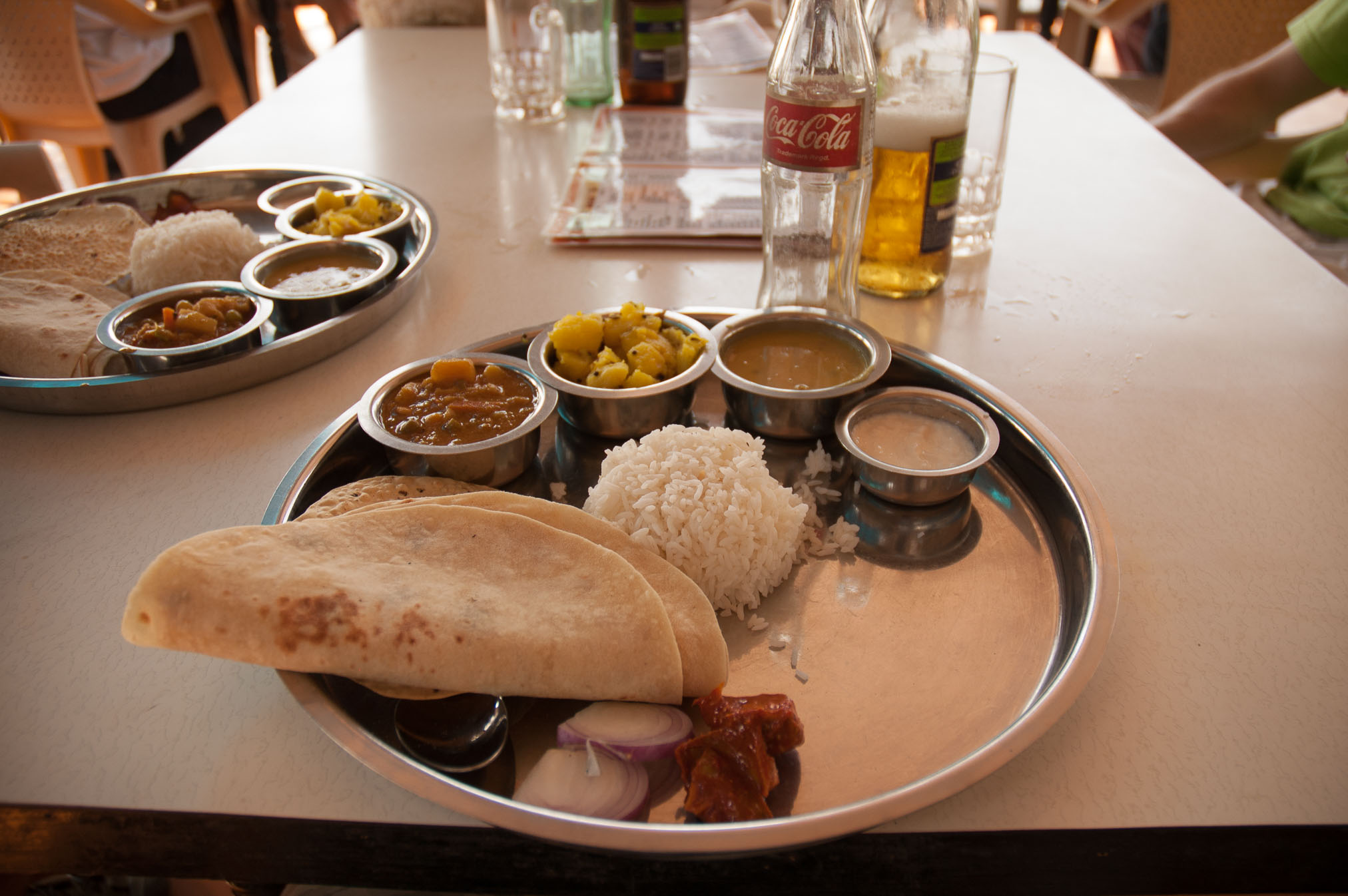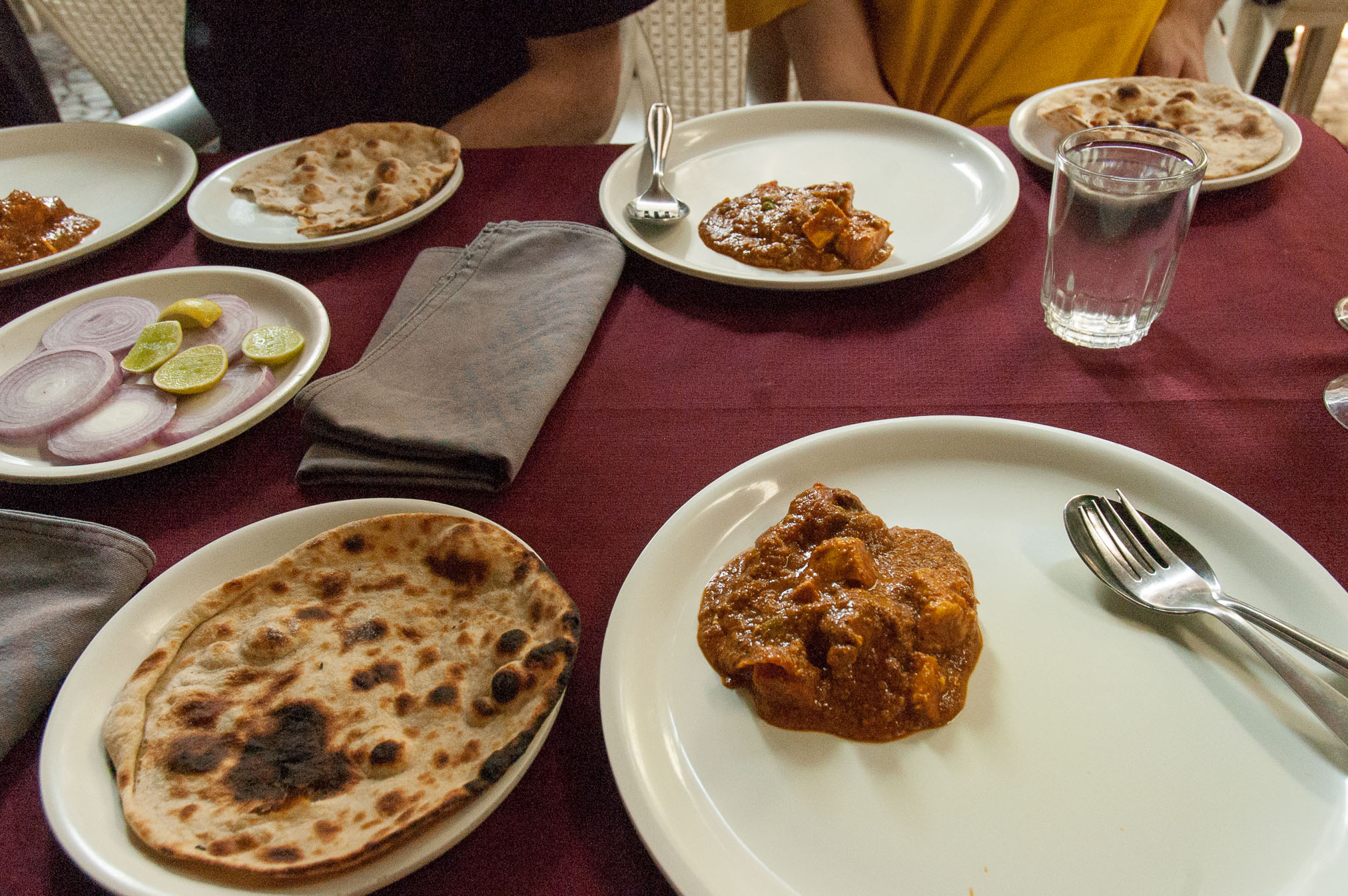 Vai zināji, ka kafiju iespējams pagatavot vienkārši karstā pienā ieberot pulverīti? Tāpat arī tēju. Ēdieni te ir joprojām neatšifrējami, tikai dažus nosaukumu paveidus esmu sācis apgūt. Viss te ir veģetārs un bieži ēdienā iekšā ir tāds Paneer, kas ir tāds kā krustojums starp Tofu un Mozarella – apcepts siers kubikos iekšā mērcē. Ēdienu ēd ar labo roku, kreiso lietot nedrīkst. Ar labo ņem tādu kā pankūku – maizi Naan, un paņem mērci. Principā te viss ēdiens balstās uz šādu principu. Otrs variants ir Pulao – kautkas līdzīgs plovam tikai, loģiski, ka bez gaļas. Mums te pusdienās ir dažādi ēdieni un tikai vienam klāt ir obligātais “Non veg!” uzraksts kas nozīmē, ka tur ir vista. Vēl mēdz būt jērs, bet citas gaļas te ir reti.