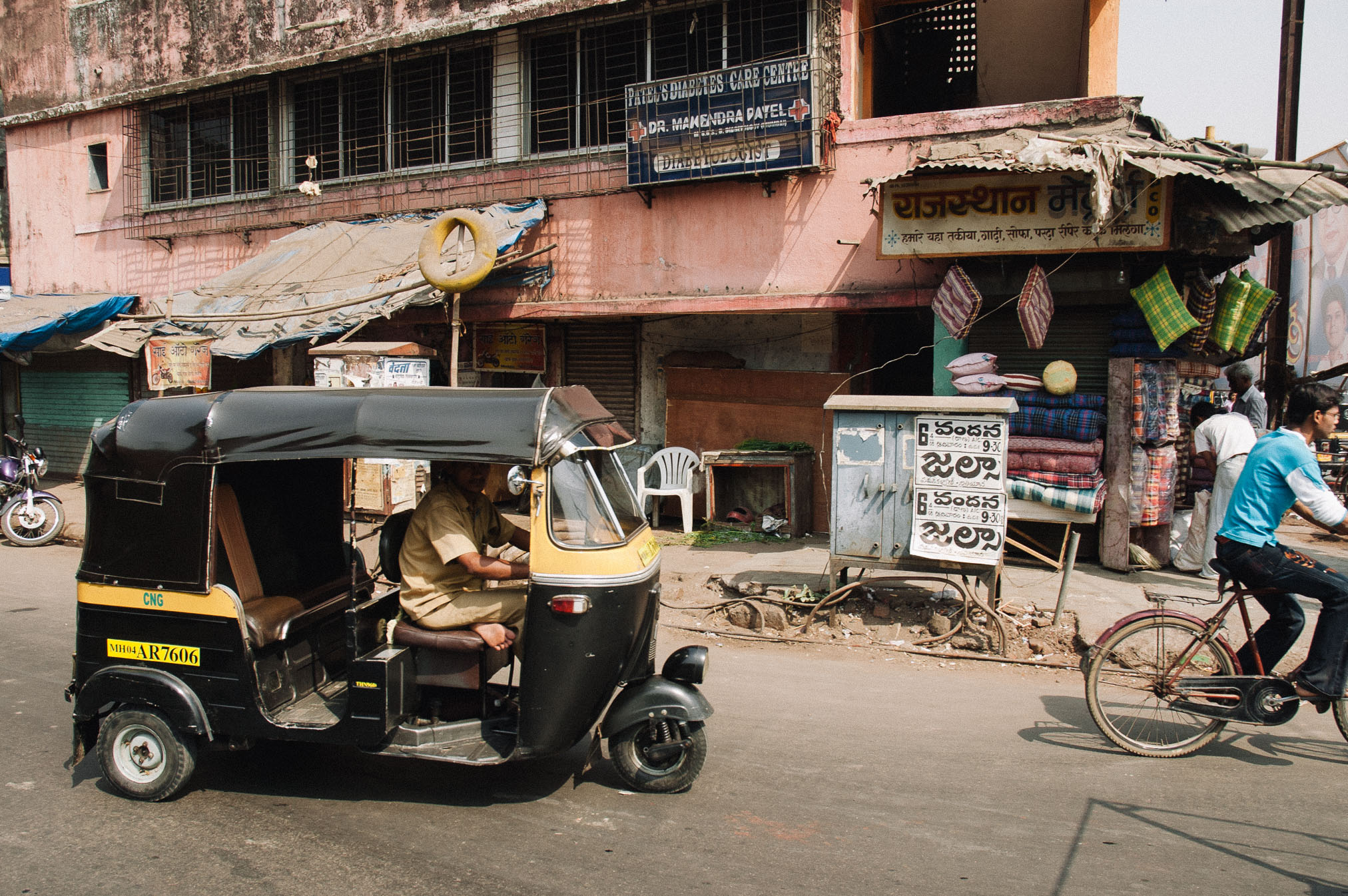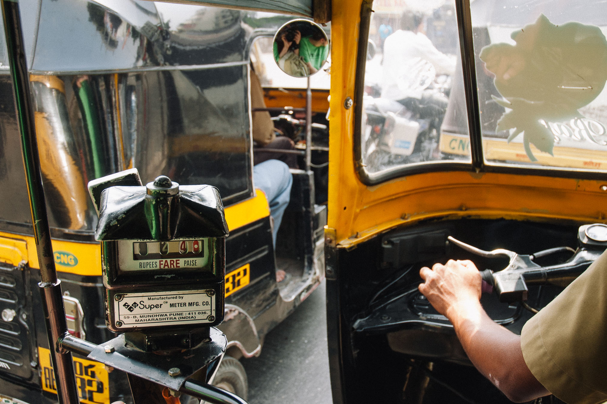 Pirmais iespaids izejot no lidostas – karstums un haoss uz ielām. Jau pirmos metrus no izejas durvīm mani gandrīz sabrauca divi taurējoši takši. Viņiem te ir skaļas taures un labas bremzes. Sagaidīja mūs draugi Hirens un Raješs, kuri mūs ari veda uz hoteli. Te ir īstā vieta, kur, Fear Factor stilā, pārvarēt bailes no auto braukšanas. Visi te brauc ātri, bez man redzamiem noteikumiem un pa sliktiem ceļiem, neievērojot ne luksoforus – kuri te pat reizēm ir – ne ielu virzienus, ne jelkādas braukšanas joslas. Ēģiptē ir traki, Nigērijā ir traki, bet te, manuprāt, ir trakāk. Te, papildus visam, vēl ir tūkstošiem moto-rikšu, tādu kā trīsriteņu motociklu ar jumtu.