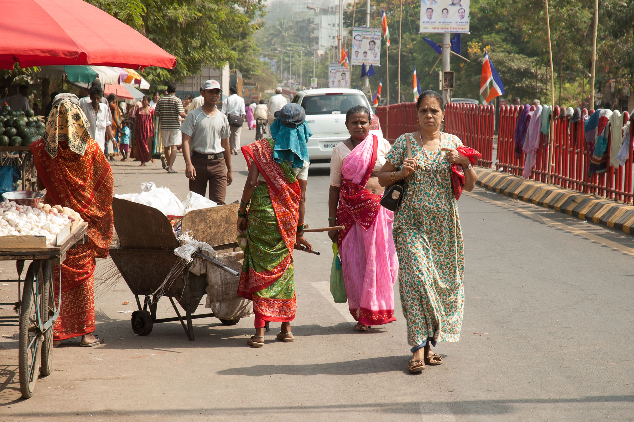 Uz katra metra ir bars dīvainu cilvēku, katrs kautko mazgā, remontē, pārdod, guļ vai viekārši sēž. Te ir daudz jocīgu tievu vārnu, visas kuras staigā plati vaļā mutēm. Ir jocīgi, tievi, izkāmējuši suņi un redzēju jau arī bariņu govju.