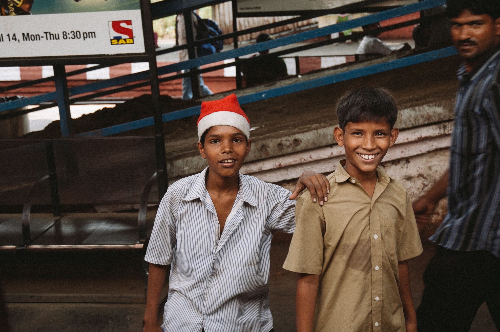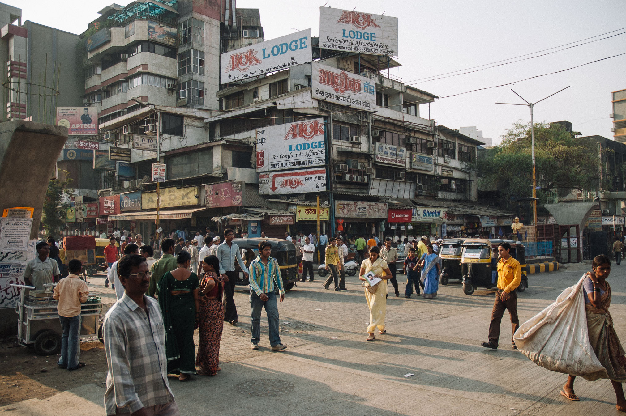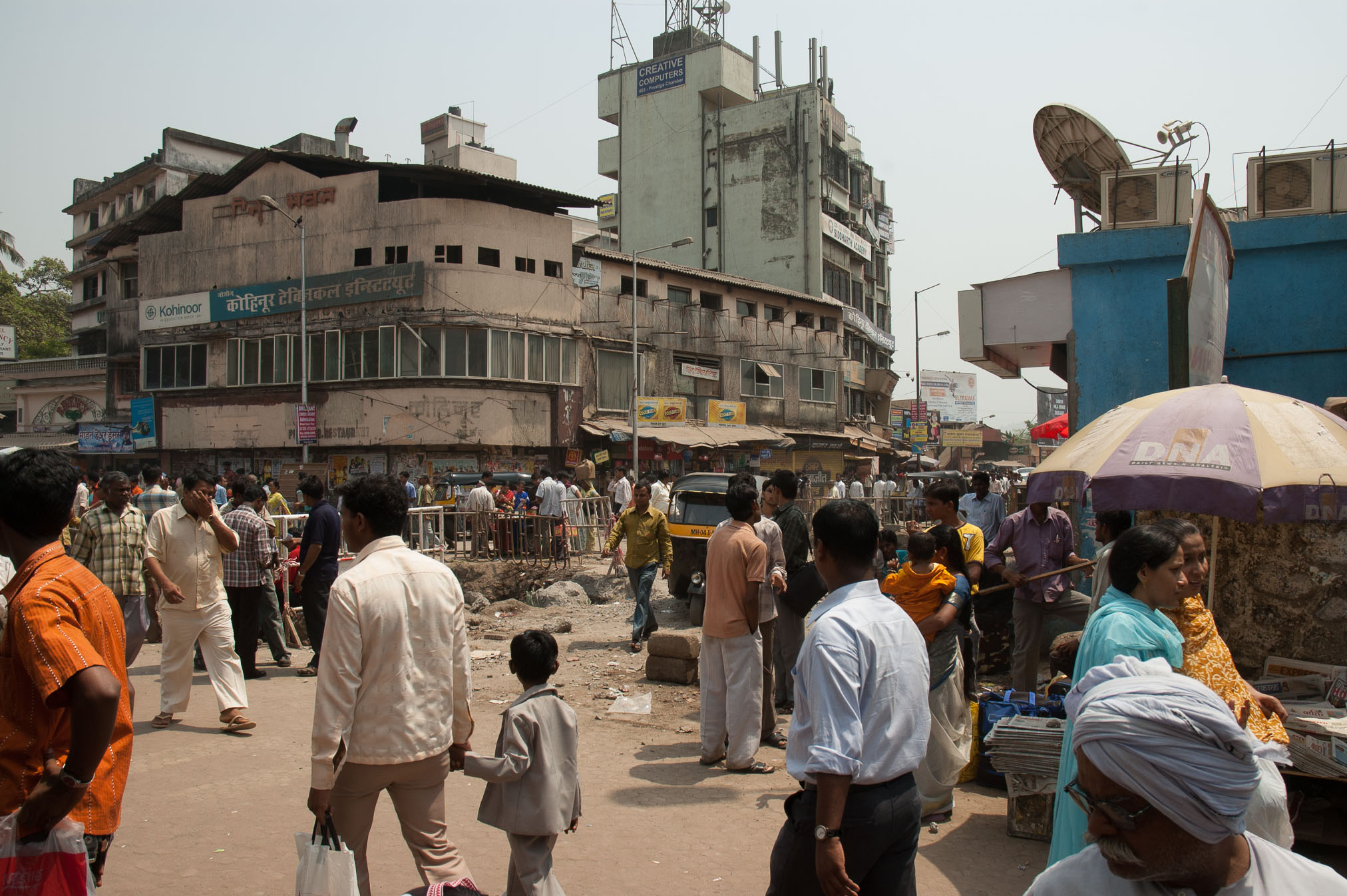 Brauciens uz Bombejas centru (dīvaini, bet vietējie Mumbaju tāpat sauc par Bombeju ar visu to ka nosaukumu mainīja jau 1995.g) bija maigi izsakoties ekstrēms. Vispirms nācās stāvēt divdesmit minūšu rindā, turklāt veltīgi, jo pretēji policista “any counter!” kase mums atteicās pārdot pirmās klases biļetes. Tā pirmā klase varbūt te izklausās pārāk labi, tāpēec es sākumā gribēju braukt pie “tautas”, bet patiesībā arī pirmā klase ir kaut kas krimināls. Cilvēki karājas ārā pa vilciena durvīm, ir karsts un netīrs, un vienīgā priekšrocība ir tā, ka var pakustēties un reizēm pat apsēsties. Vilciens pieturā apstājas uz ~10 sekundēm (skaitijām), turpceļā, Arnim iekšā kāpjot, vilciens sāka braukt. Kamēr ielēca Sergejs, tas jau kustējās labā skrienamajā ātrumā. Taču, kamēr es pieķēros durvju stangai, man jau bija jāskrien pamatīgā ātrumā un es pat īsti nesapratu kā es tur iekļuvu, jo burtiski ievēlos iekšā.
