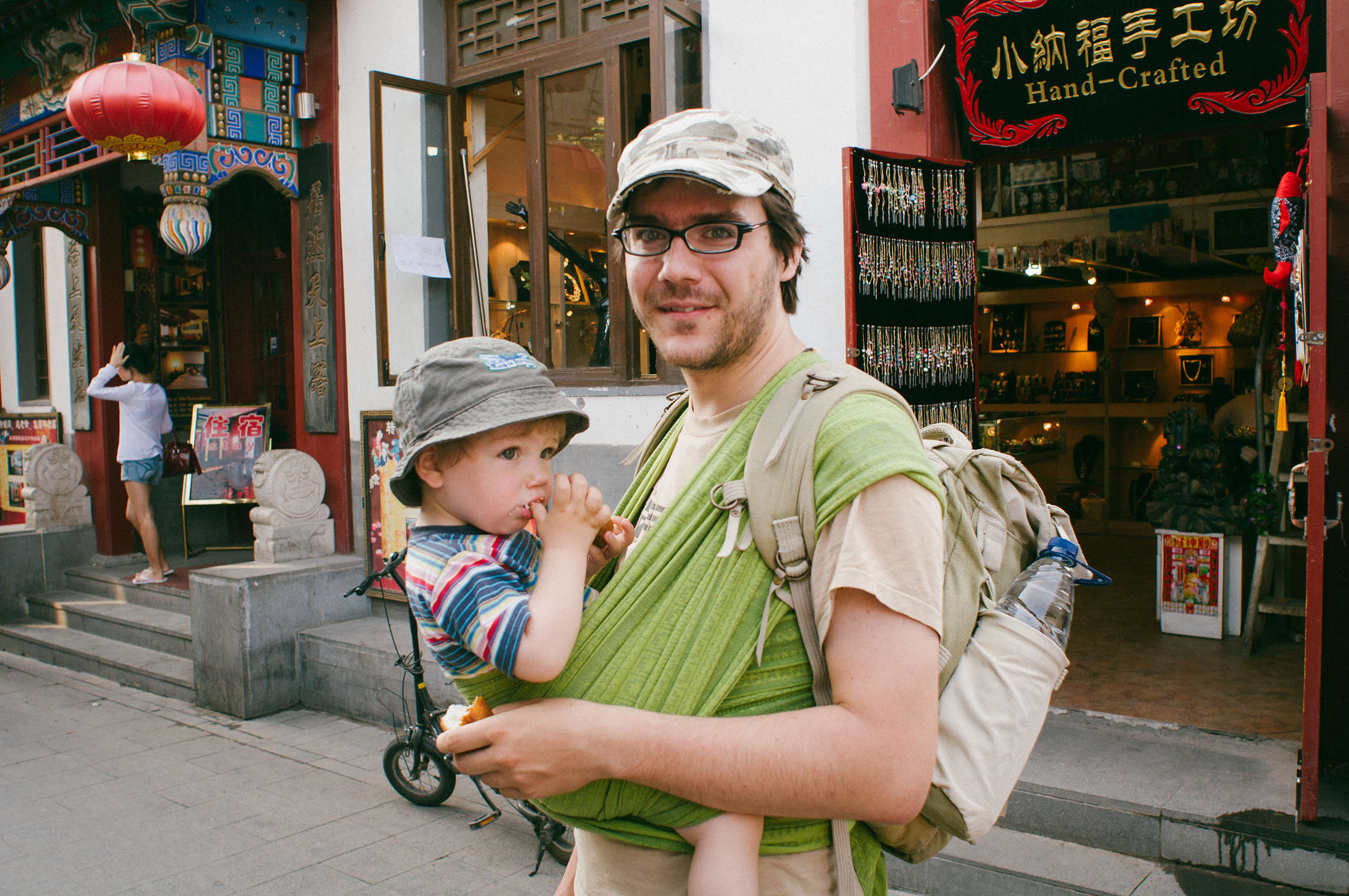 Tā kā gribējām braukt ar mazo Oliveru (pusotrs gads), tad sākām nedaudz uztraukties par “kā nu būs” un, negribot izbojāt draugiem braucienu, nolēmām pirmo garo ārzemju ceļojumu tomēr veikt tikai trijatā. Protams, organizējot braucienu caur tūrisma aģentūru un atvēlot milzu līdzekļus izdevumiem, ir iespējams uz jebkuru pasaules valsti aizbraukt komforta burbulī, bet manuprāt tad īsti šo valsti nevar novērtēt. Mums ar Noru vairāk kārojas ceļot pašiem, bez stingra maršruta, bez gida, bez citiem tūristiem tuvumā. Tāpēc šāds pasākums kopā ar Oliveru vēl tobrīd likās riskants. Uzreiz varu pateikt – Olivers mūsu braucienā bija lielākais ieguvums. Ķīnā ļoti mīl bērnus, it īpaši rietumnieku, tāpēc mēs vienmēr bijām tuvā kontaktā ar vietējiem, vienmēr bija jautri un godīgi sakot, mēs bez Olivera nekur vairāk tāpat nebūtu aizbraukuši. Dienā nostaigājām ap desmit kilometriem, izbraukājāmies ar dažādu klašu vilcieniem, visu redzējām un izbaudījām, tāpēc turpmākiem ceļojumiem nu jau ir skaidrs – ar bērnu braukt var un tas ir forši.