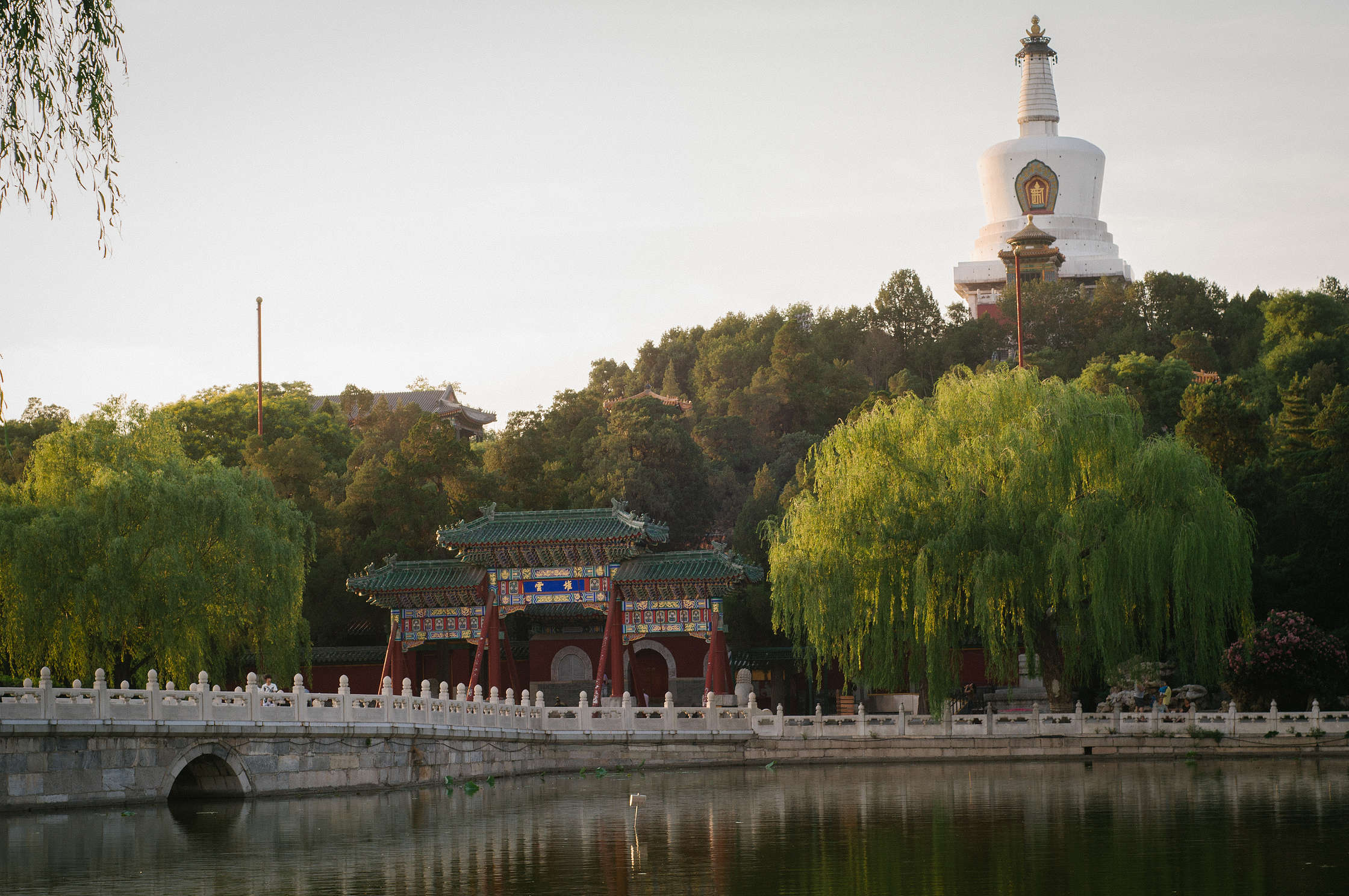 Pēc ierašanās viesnīcā mums bija viens uzdevums - nopirkt biļetes vilcienam uz Siaņas (Xi’An) pilsētu pēc trim dienām, jo vilcienu biļetes mēdz ātri izpirkt. Tāpēc jau drīz sapakojām mazās mugursomas un devāmies pastaigā pa rajonu. Netālu esošais Behai parks bija ideāla vieta atpūtai pēc garā lidojuma un Ķīnas pirmajam iespaidam. Tur ir maz cilvēku, tas ir lēts (30 santīmu ieeja) un tajā ir gana interesanti apskates objekti. Gan templis, gan interesantas lapenes, gan smuki tiltiņi. Pirmo reizi sākām saskarties ar parādību , kas mums sekoja visu ceļojumu - Olivers ir topā. Ķīnieši ļoti mīl bērnus, tāpēc visi pretimnākošie taisīja milzīgos smaidus, lūdza atļauju fotografēt, vai pat paņemt viņu rokās. Iespējams izklausās uzmācīgi, taču tas bija tik jautri un sirsnīgi! Visur kur mēs gājām, mūs pavadīja smaidi un pozitīvas emocijas. Parkā sagaidījām saulrietu, novērojām milzīgus barus profesionālu fotogrāfu kas ar savu dārgo tehniku ķēra saulrieta aplaistītās ‘Bai Ta’ pagodas skatus. Veci onkuļi praktizējās kaligrāfijā ar lielām otām zīmējot ar ūdeni uz flīzēm. Bērni laida pūķus. Nebija ne smoga, ne cilvēku baru, ne tūristu, ne arī tāda karstuma kā vajadzēja būt.