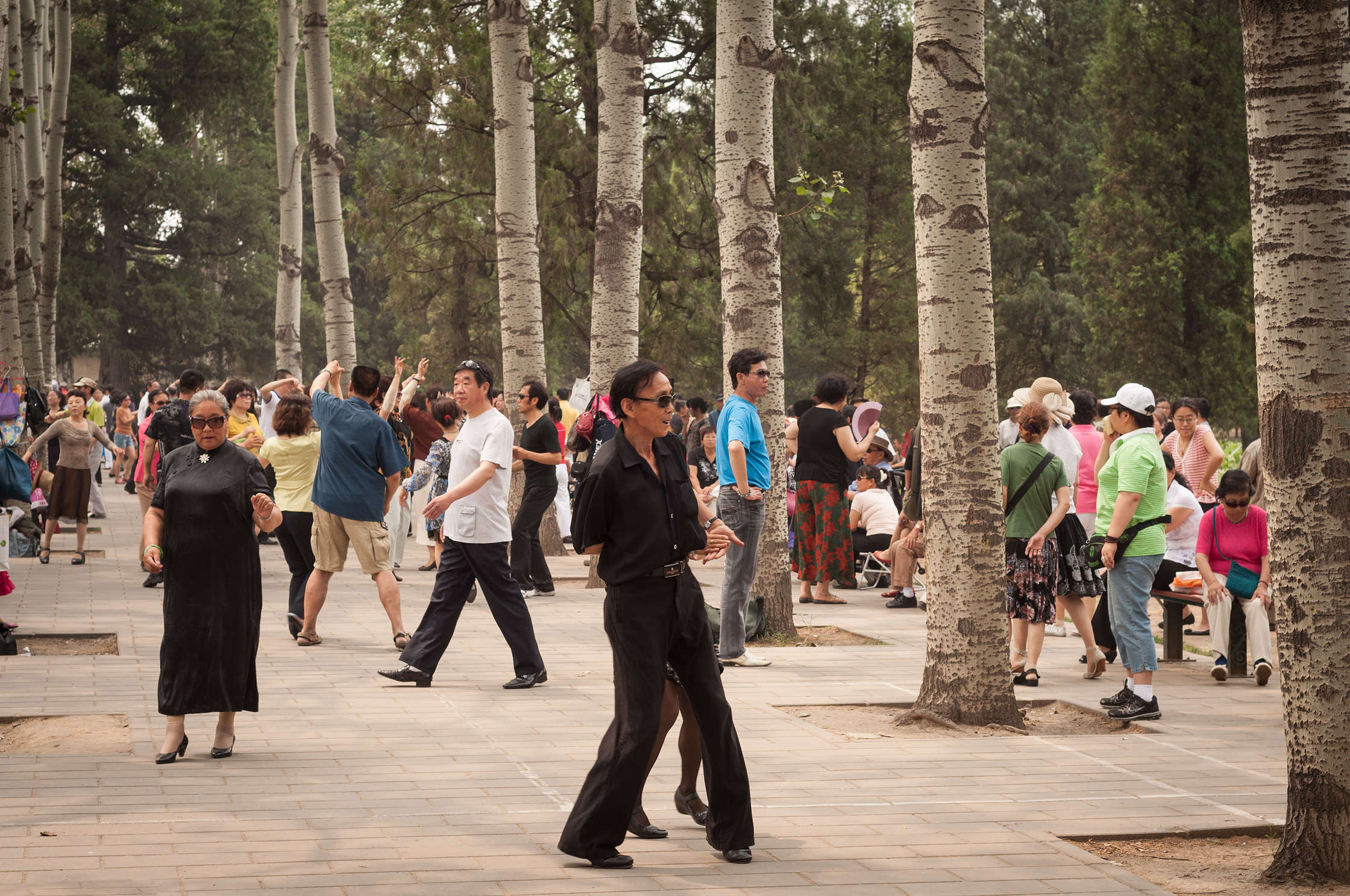 Beidzot ieraudzījām ilgi gaidīto - milzīgus daudzumus dejojošu cilvēku! Pilnā troksnī skan visāda mūzika, un sveši cilvēki vienkārši viens otru aicina, un dejo gan lēnās, gan modernās dejas. Video ir daudz iespaidīgāks, jo to skatu jau īsti nav iespējams nofotografēt. Tas ir tik fantastiski, ka Ķīnā ļaudis iet izklaidēties parkos, dejo, spēlē spēles, laiž pūķus, bet mūsējie atnāk no darba, un pielīp pie seriāliem.
