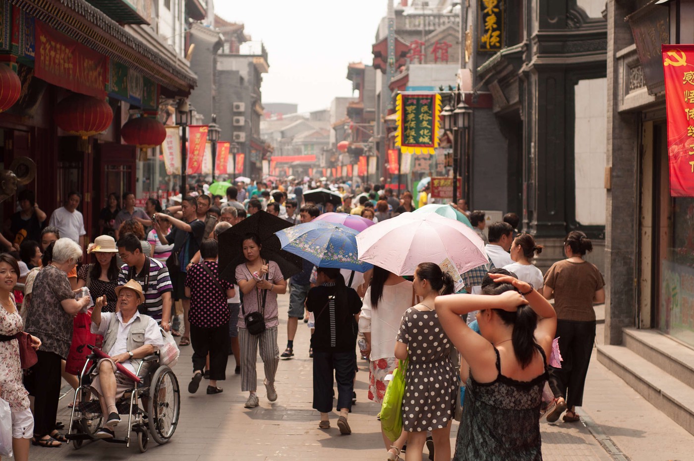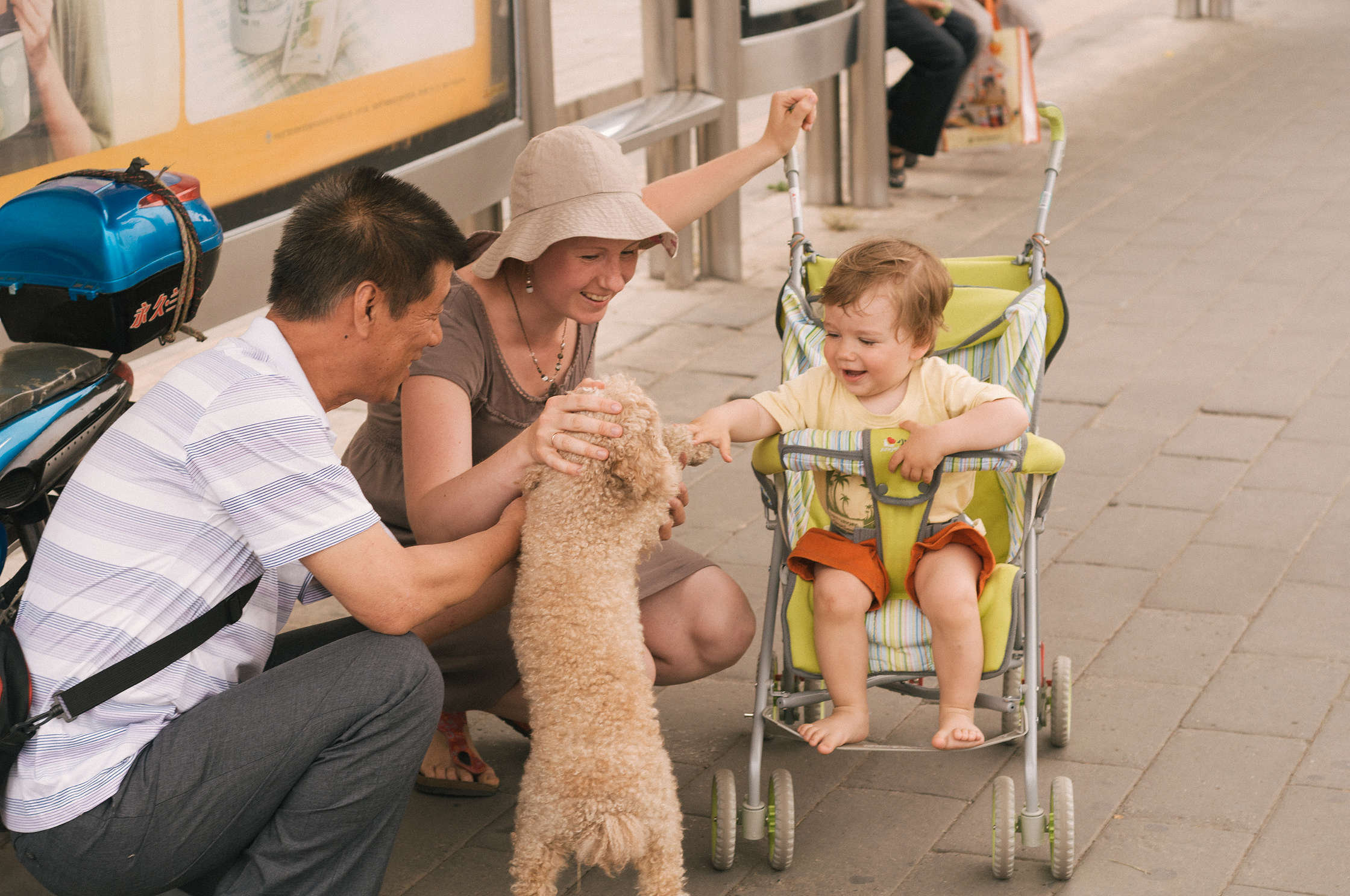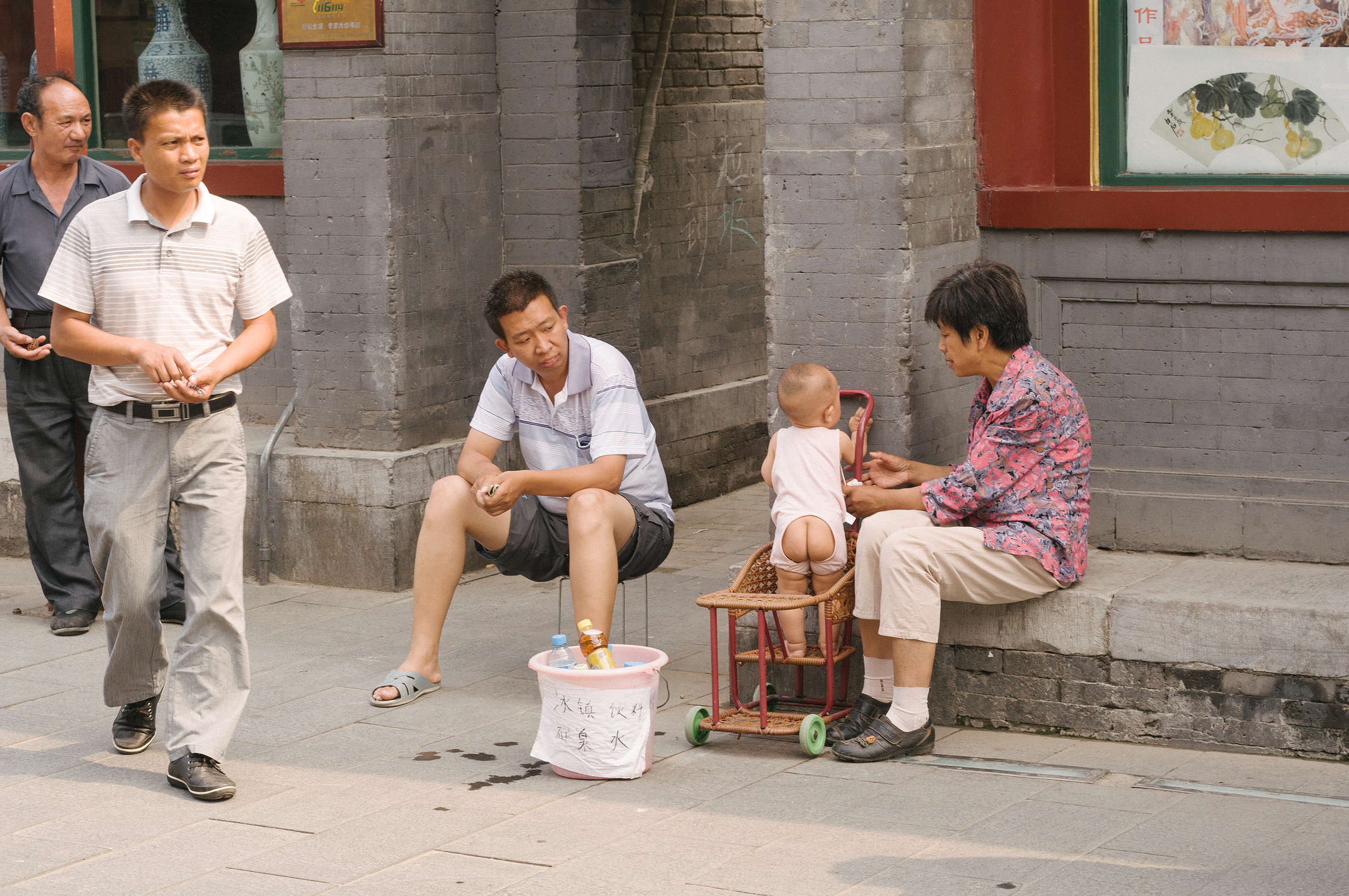Pirms brauciena bijām lasījuši, ka Ķīnas ielas ir nepiemērotas bērnu ratiem, un tās ir bedrainas un sarežģīti izbraucamas. Cilvēks, kas to rakstīja, pavisam noteikti nav bijis Rīgā, jo Pekinas ielas bija perfekti piemērotas ratiem, tajās nekur nebija bedru, un visām trotuāru apmalēm bija ratiņu uzbraucamās vietas. Salīdzinot, mēs vakar ar Ķīnā nopirktajiem ratiem bijām aizgājuši kilometru garā pastaigā, un visu laiku uzdūrāmies neizbraucamām bedrēm (mūsu Rīgas rati ir ar lieliem gumijas riteņiem, ķīnas rati ir ar mazajiem cietajiem ritentiņiem). Ķīnas trotuāri ir no palielām flīzēm, tāpēc remontiem tās vienkārši izņem, un pēc tam ieliek atpakaļ. Bedru nekur nav un vienīgās vietas, kur ar bērnu ratiem izbraukt ir grūtāk, ir tur, kur novietots milzīgs daudzums velosipēdu.