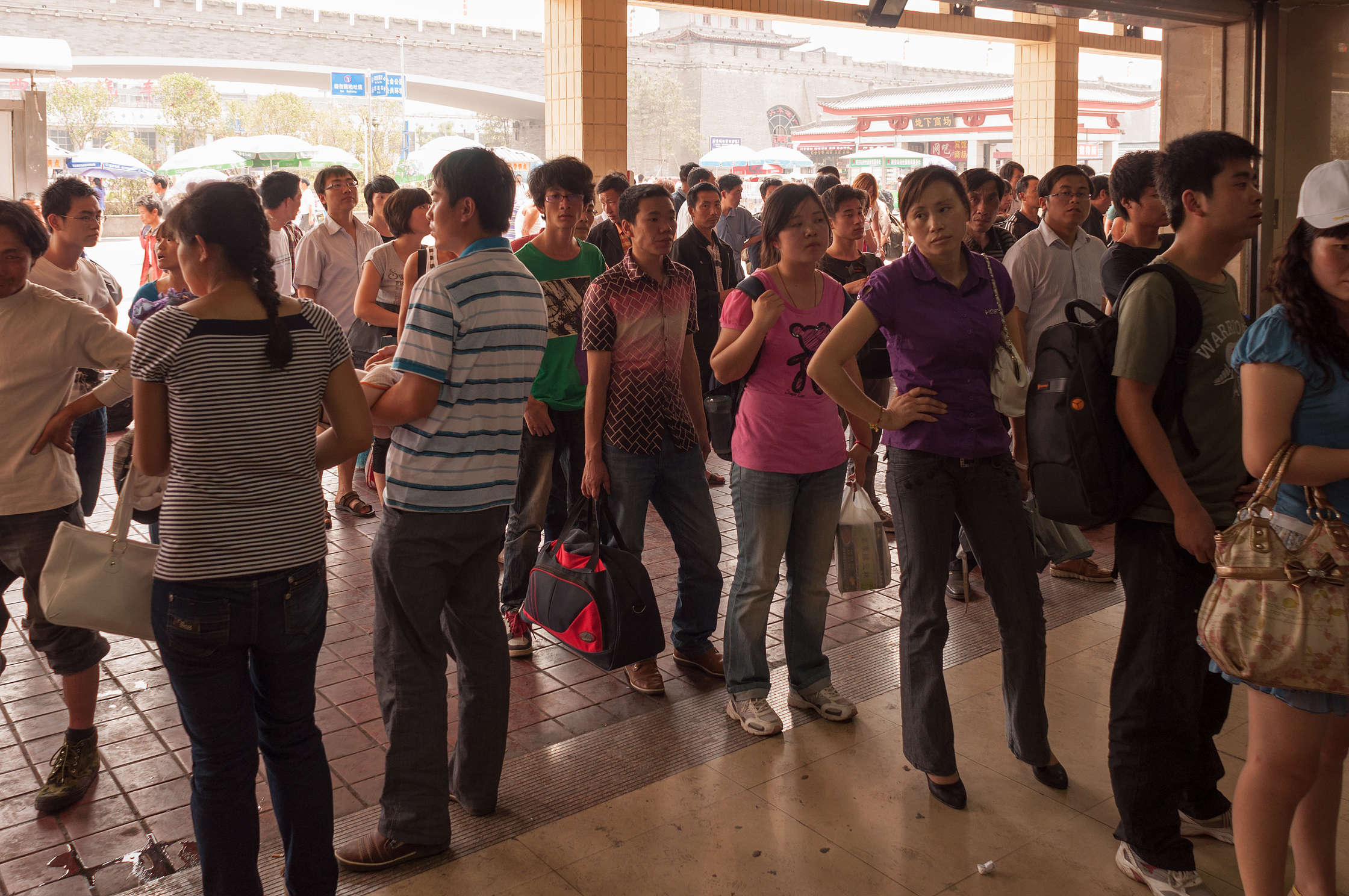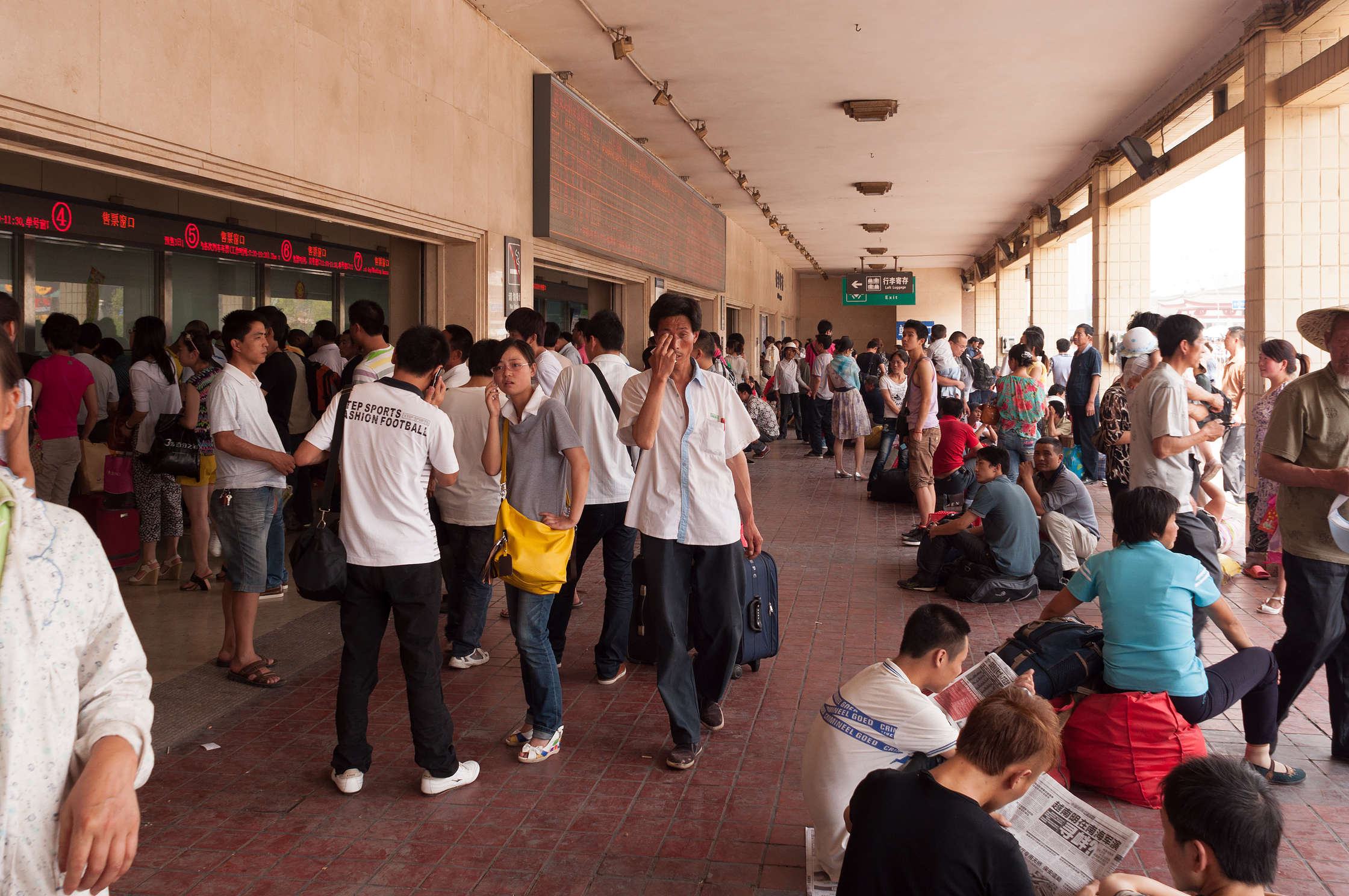 Siaņa (Xi’An) nav nekāda Pekina, šeit stacija bija daudz mazāka, vecāka un visai haotiska, bez jebkādām pazīmēm, ka te kāds runātu vai rakstītu angļu valodā, cilvēku rindas bija visai lēnas un garas, stāvēt arī negribējās. Uzreiz sameklēju garlaikojošos apsarga paskata veci pie bezrindas lodziņa, piegāju klāt un sāku jau kaut ko jautāt, kad viņš man uzreiz ar pirkstiem parādija septiņi un norādija uz labo pusi. Sapratu, ka septītajā lodziņā iespējams kāds saprot tūristu valodā. Viņam bija taisnība un vismaz galamērķus un sēdvietu klases sieviete tiešām no manis spēja saprast, tāpēc nopirkām biļetes uz K84 vilcienu, sēdvietas, vilciens ies gandrīz sešas stundas.