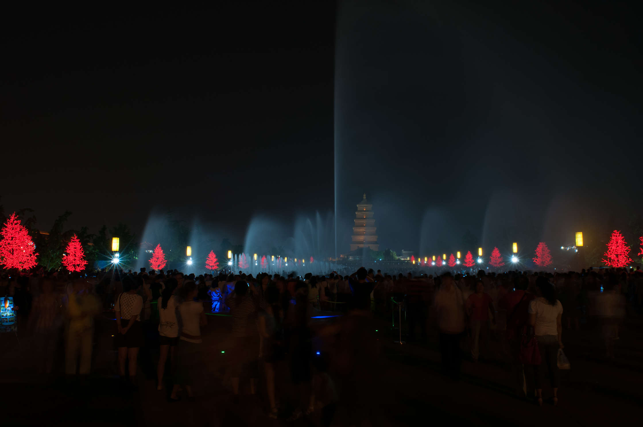 Sāka jau krēslot, pagodas apmeklējums bija tikai līdz sešiem, iekšā netikām, taču tur apkārt ir pamatīga izmēra parks un vienkārši gigantiska strūklaku sistēma, kas kā izrādijās - vakarā tiek iedarbināta šova režīmā. Katru vakaru te notiek pusstundu garš gaismu un mūzikas šovs ar tik daudz un dažādām strūklakām, ka Oliveram un Norai šī vieta bija viens no spilgtākajiem iespaidiem.