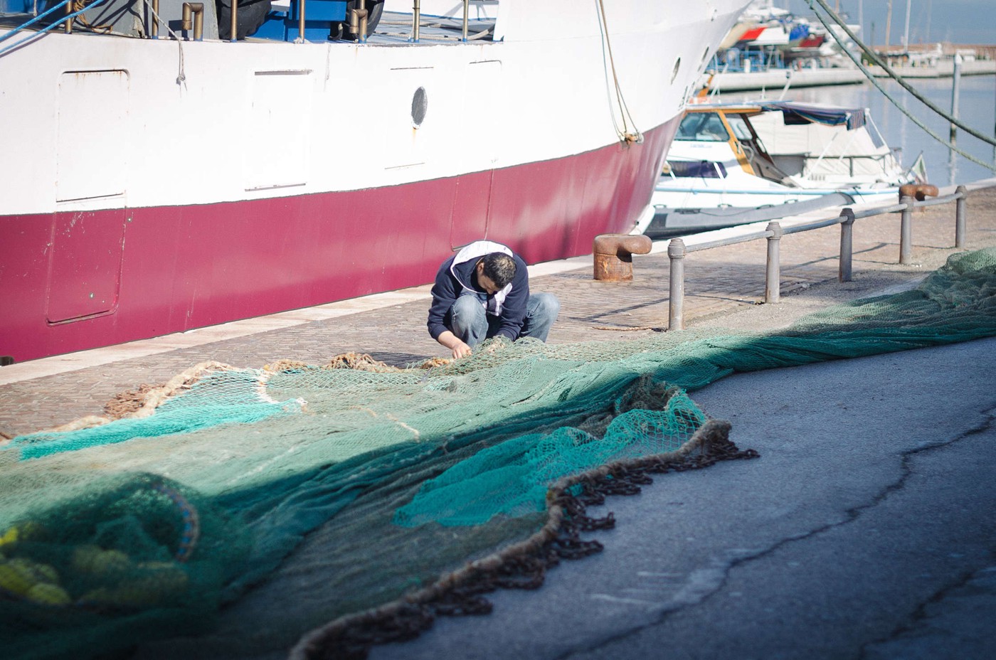 Dodamies tālāk, līdz pēdējam tornim, tajā atrodam slēpni, un pēkšņi notiek jauns pavērsiens laika apstākļos — no debesīm sāk kapāt krusa, lieliem zirņa izmēra graudiem, spēcīgi pātago pa mūsu mugurām, īsā brīdī nosedzot visu apkārtni sniegam līdzīgā krusas graudu segā. Sargājot ekipējumu no krusas un slapjā sniega putras, izdodas nedaudz pafotografēt, tad jau skrienam vien tālāk, kad pēkšņi atskan pamatīgs belziens – tepat blakus iesper zibens. Pēc brīža vēl viens — šķiet tajā zibens novedējā, pie kuras pirms brīža turējos. Šššt-babammmm. Ir visai bailīgi, tāpēc raitā solītī turpinam uz centra pusi. Paglābjamies pastkartīšu veikaliņā, kur papļāpājam ar meitenēm, uzrakstam kartītes ģimenēm, un tad jau dodamies uz glābiņu — fantastisku kafejnīcu, kurā izdzeram cappucino un apēdam kruasānus.