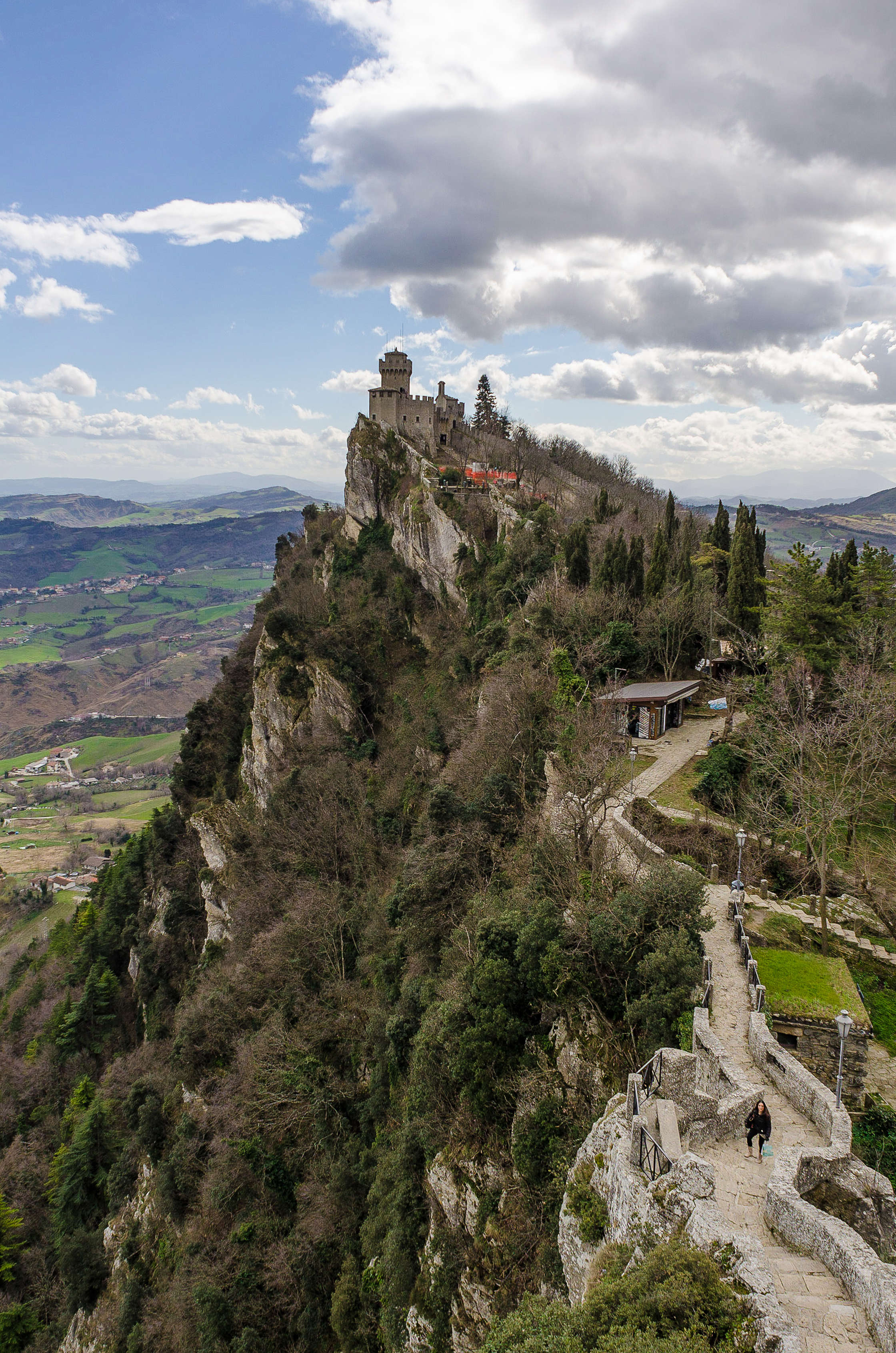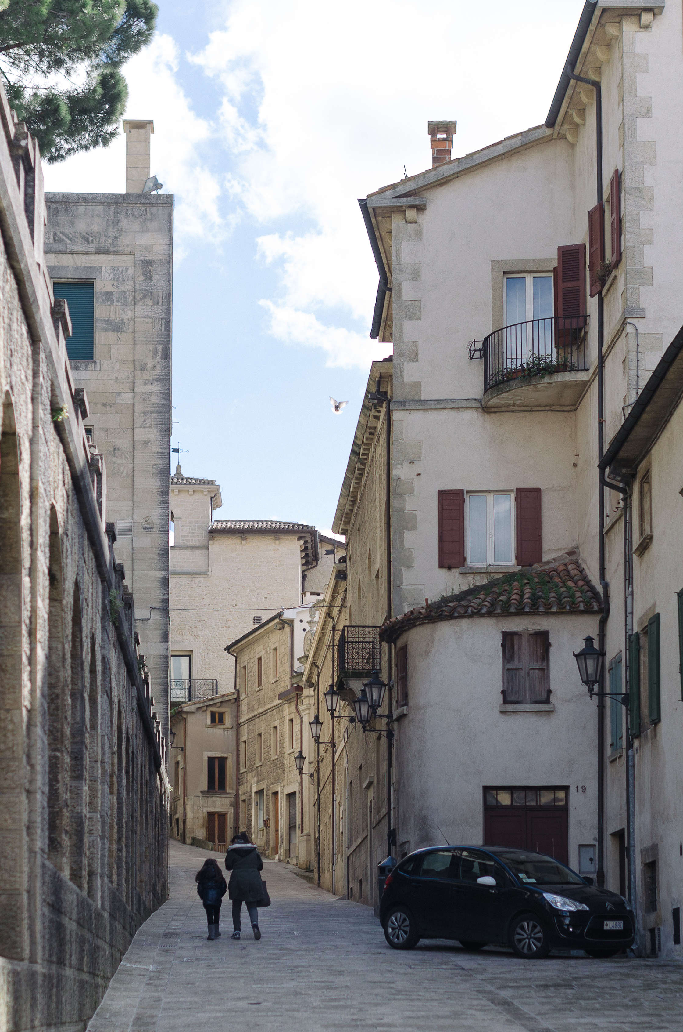 San Marino jau pašā pirmajā brīdī atstāj ļoti pozitīvu iespaidu. Tauta ātri izklīst un jau pēc pirmā pagrieziena šaurajās akmens ieliņās, esam palikuši vieni. Laika apstākļi ir teju vai ideāli, debesis ir zilas, tajās ir tikai daži balti mākoņi, ir silts un patīkams laiks. Gaisā virmo pavasaris, un dienu izbaudām. Galvenais šīs mikrovalsts apskates objekts — San Marino pilsēta — atrodas kalnā, vai varētu pat teikt, visai vertikālā klintī, kas to nedaudz liek salīdzināt ar Gibraltāru. Šaurās ieliņas līkločo augšup, un sekojot tām, atrodam dažus ģeoslēpņus, izbaudām fantastiski plašos skatus uz visām pusēm, un metam līkumus daudz kur esošajiem Krievijas tūristiem. Interesanti, ka katrā veikala logā ir izkārtne lauzītā krievu valodā, par pārdevēja prasmēm runāt krieviski. Kādā no veikaliem pajautājam, kāpēc tieši krievu tūristu šeit ir tik daudz, uz ko pārdevēja nedaudz samulst, un izsaka teoriju, ka Dolce un Gabbana šeit ir īpaši lēta, jo nav nodokļu.