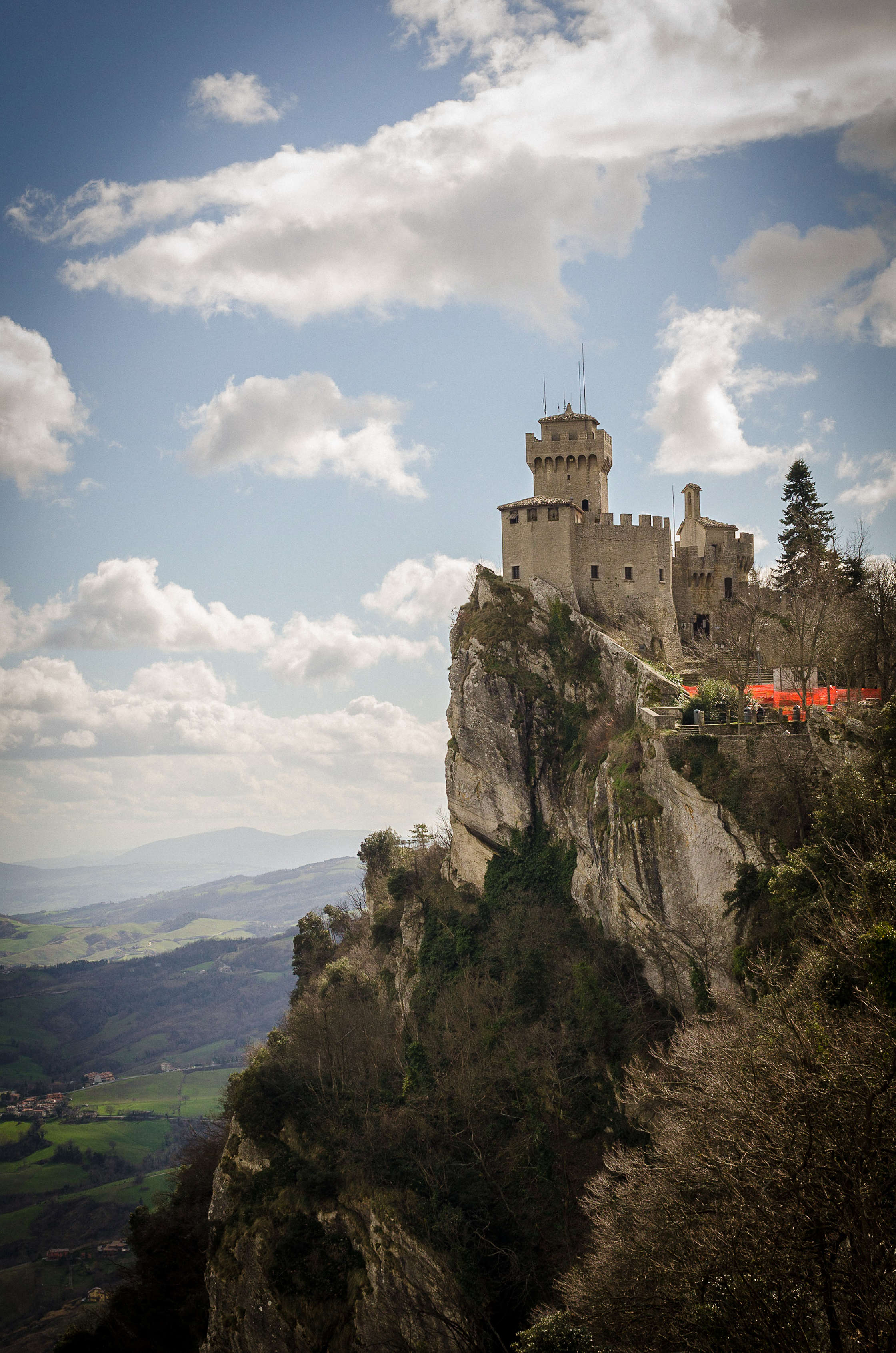Šeit centrālajā daļā ir trīs torņi, kuri ir ļoti skaisti un apskates vērti, un tos arī nav diži vienkārši palaist garām. Pie viena no torņiem prasa četrus eiro par ieeju, kas nav gluži daudz, taču Sergejs jau meklē kasti torņa ārpusē, un izrādās, ka te ir akmenī kaltas trepes, kas pa ārpusi ļauj nokļūt uz ne mazāk iespaidīga mūra, atklājot skatu uz nākamo torni. Šī mūra specifika ir tāda, ka tas ir bez barjerām, un sniedzas līdz pat vertikālās klints pašai malai. Sergejs pamana, ka mums tuvojas gigantiska melnu mākoņu grupa, un vēlas to nofotografēt, tāpēc pietuvojas mūra sienas pašam galam, kas nozīmē, ka viņam zem kājām ir 750 metru kritums gar vertikālu klinti. “Ja tev ir bail no augstuma, labāk klāt nenāc”, viņš man nosaka, pats manāmi pārņemts ar iespaidīgu plašumu zem kājām. Tas gan izklausās pēc izaicinājuma, tāpēc arī, muļķīgā kārtā turēdamies pie zibens novedēja, tuvojos pa korei līdzīgo malu līdz bezdibenim. Sajūtas ir reibinošas, un ilgi izturēt šādā pozīcijā neesmu gatavs, tāpēc uzmanīgi turēdamies fiziski un morāli, sāku ceļu atpakaļ.