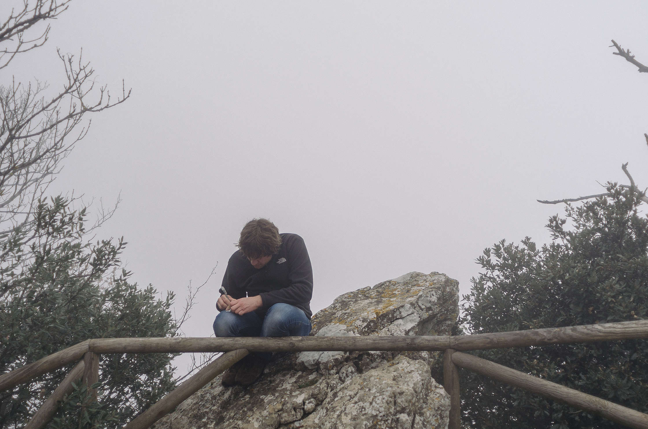 Tikmēr mākoņi ir sasnieguši kalnā celto pilsētu, un no visām pusēm sāk mūs ieskaut. Skati ir fantastiski, mākoņi sākumā nāk no apakšas, beigās pārņem visu biezā miglas mākonī, apēdot pirms brīža vēl redzamo Cesta torni, un sāk arī maigi smidzināt lietus.