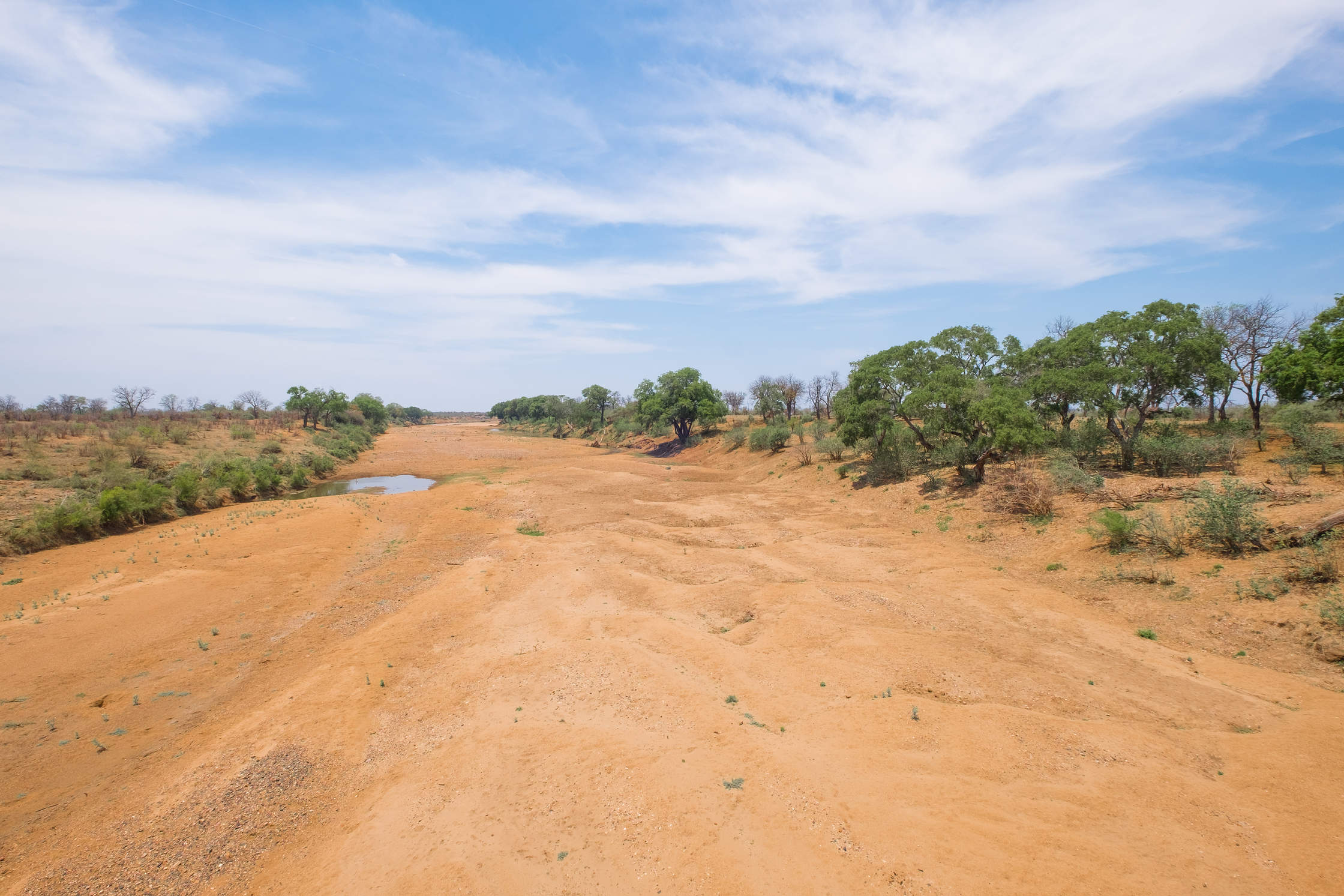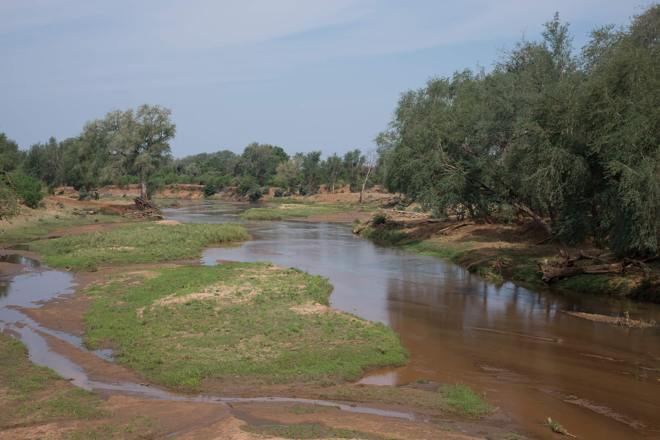Pati upe gan šajā sezonā ir visai izžuvusi un to var redzēt kā šauru tērcīti milzīgās sausās grunts vidū.