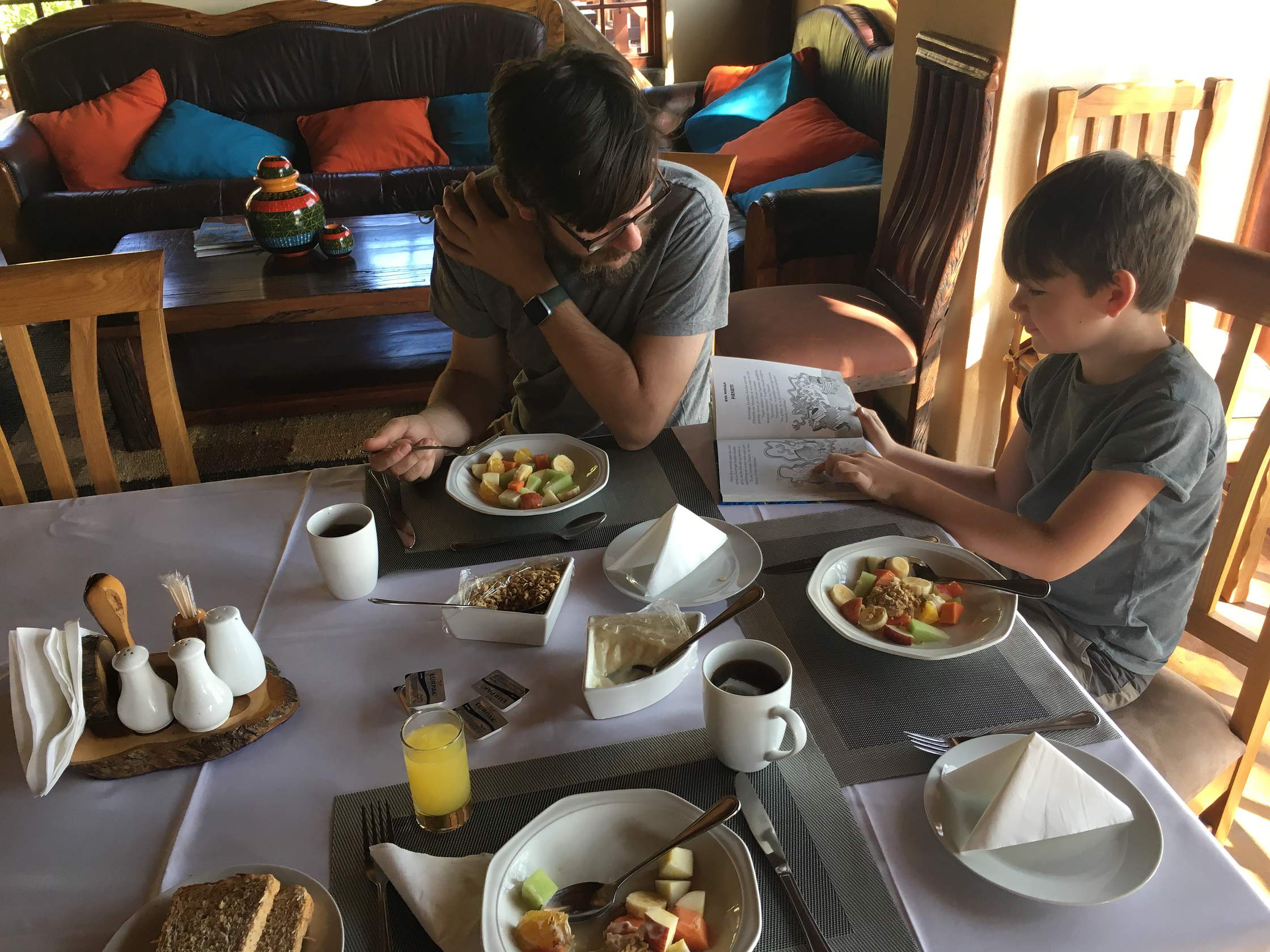 Uzzinājām, ka tumšos vakaros ārā varot dzirdēt lauvas rūcam, kas tajā brīdī vēl likās kas pavisam baiss un eksotisks, taču paši tā arī lauvas nedzirdējām un aizgājām gulēt.