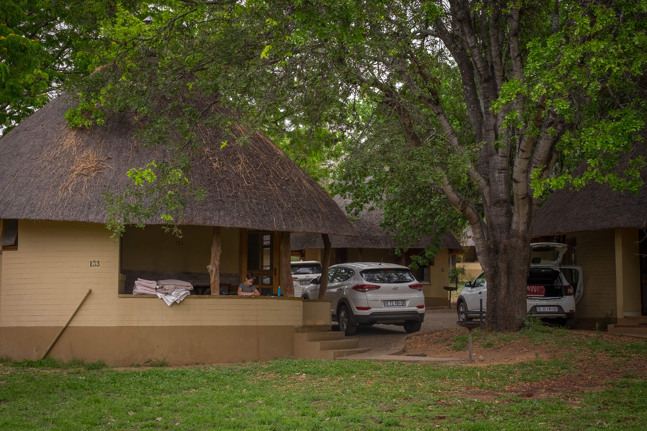 Ja naktsmītni esat rezervējuši kādā no parkā esošajiem kempingiem (ko es silti iesaku darīt, lai nenāktos jau pulkstens četros braukt uz izeju, kā arī tāpēc, ka šeit kempingi ir forši), tad ne ātrāk kā pulkstens divos variet braukt uz kempingu un saņemt tur sava namiņa atslēgas. Namiņi ir forši un tajos ir arī virtuve un āra grils, tāpēc droši pirms iebraukšanas parkā var sapirkt pārtiku kādā lielveikalā un ēdienu gatavot paši. Parkos esošās ēstuves nav diez ko labas (vienīgā normālā ir Mugg and Bean, kas ir tikai divos kempingos), turklāt tajās ļoti ilgi jāgaida).