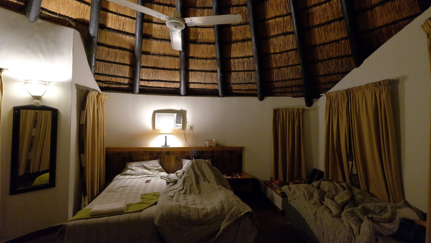 Pats namiņš gan bija vienkārši pasakains un ierindojās kaut kur manu pasaulē foršāko naktsmītņu augšgalā. Ne tikai tas, ka kempingā bijām gandrīz vienīgie. Kempings pats atradās absolūti nost no jebkādas civilizācijas, šeit nebija telefona zonas, veikalu, nebija pat darbinieku. Apkārt tikai desmitiem kilometru dabas un miera. Pats namiņš bija ļoti tīrs, kārtīgs un gaumīgi iekārtots, ar pasakaini skaistu skatu uz klintīm un baobabiem. Un tumsai iestājoties, ap namiņu staigāja ziloņi.