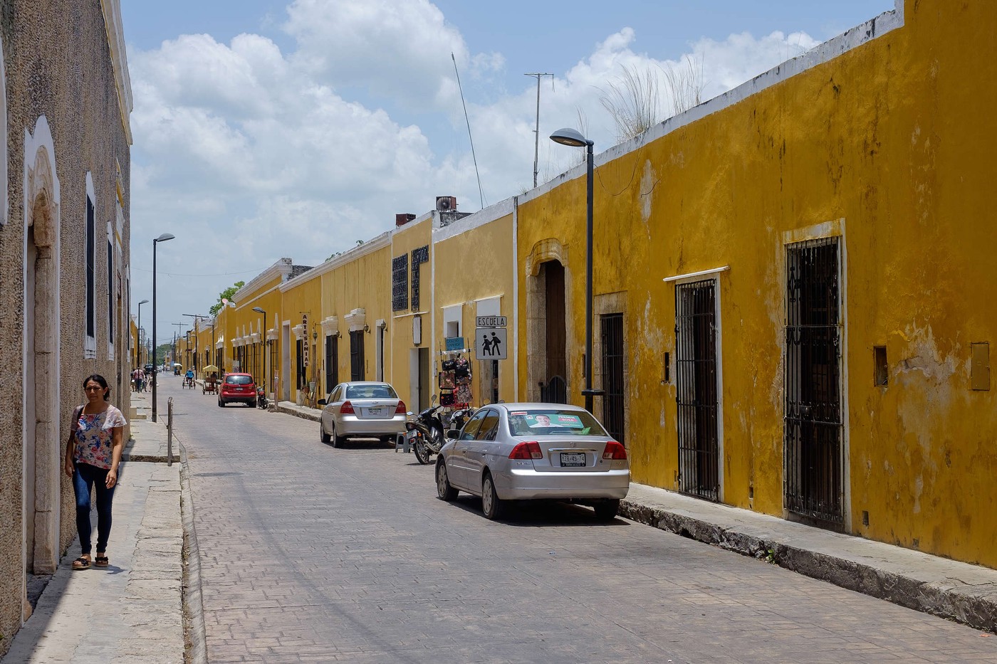 Pēc saldējuma un pusdienu apēšanas, devāmies tālāk uz kādu mazāku ciemu, Izamal. Tāpat kā Valladolid, šo vietu biju atradis pēc Meksikas valdības projekta ar nosaukumu “Pueblos Magicos”, jeb “Maģiskie ciemati”, kuru sarakstā nonāk nelielas apdzīvotas vietas ar īpašu kultūras mantojumu. Arī Izamal bija patiešām maģiska vieta, kur lielākā daļa ēku ir krāsotas dzeltenā krāsā. Izkāpjot no automašīnas, kuru novietoju centrālajā laukumā, pie mums pienāca kāds večuks un piedāvāja nomazgāt auto. Teicu, ka neesmu ieinteresēts, uz ko viņš sāka lūgties, lai vismaz iedod kādu monētu. Iedevu viņam relatīvi daudz, taču mašīnu nenomazgāja, tikai kādu brīdi priecīgs mums māja pakaļ. Pastaigājām pa svelmīgi karsto pilsētiņu, pabildējām dzeltenās mājas. Pirms devāmies projām, iedzērām aukstus dzērienus un apēdām guacamole ar čipsiem. Tad arī devāmies uz nākamo naktsmītni Merida pilsētā.