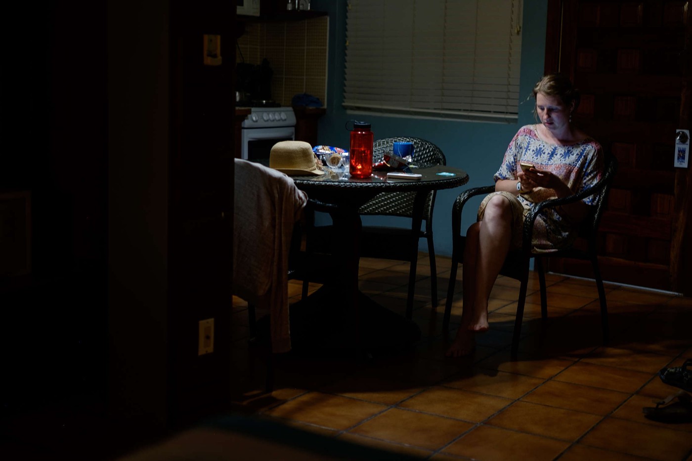 Atmosfēra bija ārkārtīgi relaksēta, bezvējš, karsta saule, zils ūdens visapkārt. Daži cilvēki sēdēja pie galdiņiem, kaut ko ēda. Pie sienām bija plakāti ar informāciju par Rio Lagartos biosfēras rezervātu un šeit pieejamajiem izbraucieniem. Pajautājām informatīvo bukletu, tad noskaidrojām, ka ja vēlamies kaut kur braukt, kāda pusstunda būs jāgaida. Pasūtījām ēdienu un apsēdāmies pie galdiņa. Un te pēkšņi, ievērojām, ka apkārt sāk zumzināt mazi putniņi - kolibri! Tie zibinājās apkārt un meklēja dzeramo, jo šeit bija izvietoti īpaši dzeramie trauciņi tieši viņiem. Šis skats sagādāja milzu sajūsmu, jo šos putniņus reti gadās sastapt. Pats tos biju redzējis tikai Kostarikā. Centāmies kādu nobildēt, bet protams, tam viņi ir pārāk ātri, tāpēc izbbaudījām viņu klātbūtni ar acīm.