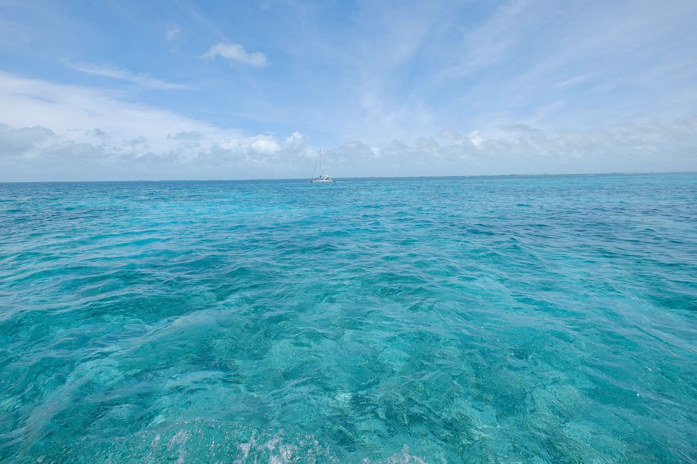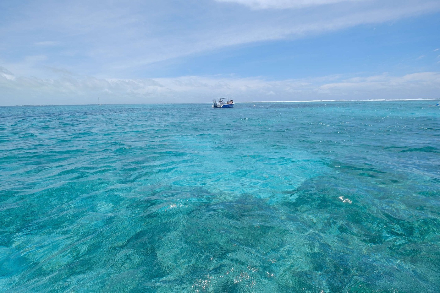 Ūdens šeit ir fantastiski zils un dzidrs, tik skaists, kādu vien varētu iztēloties. Braucām visai tālu jūrā, līdz viļņi norima un nonācām pie tāda interesanta veidojuma, tāda kā mierīgā ūdens lauka, kur nedaudz uz priekšu varēja novērot gluži vai barjeru, uz kuras bangoja lielie viļņi. Tur atrodas koraļļu rifa robeža un sākas dziļais ūdens. Mūsu laivā bija divi vadītāji, katrai ģimenei tika norīkots savs. Laiva tika noenkurota kopā ar vēl dažām citām, kur ūdenī jau bija manāmas vairākas citu snorkelētāju grupas.