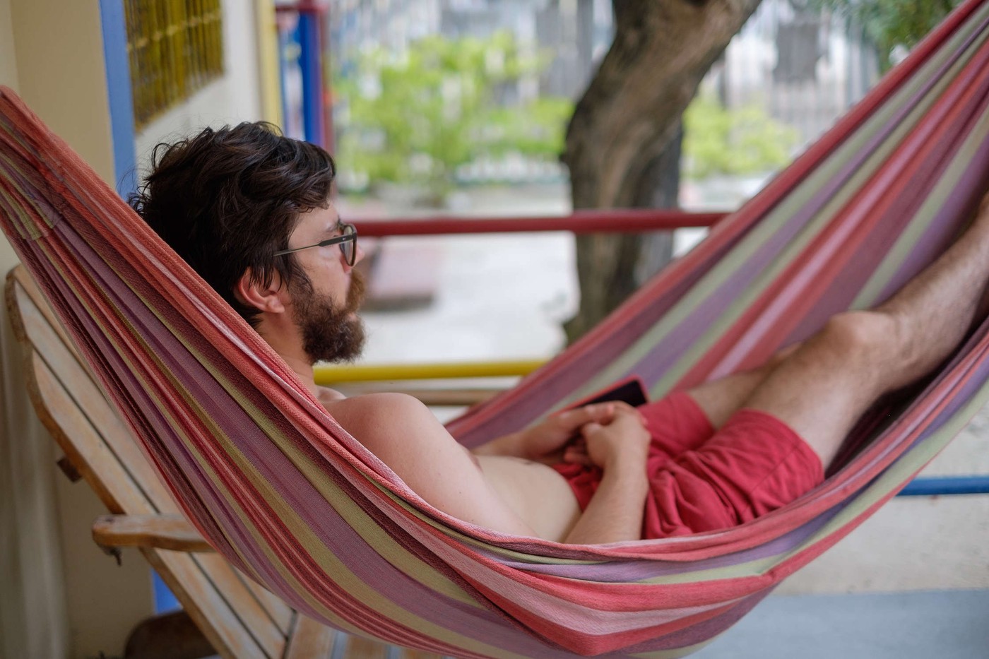 Skatāmies filmas meksikāņu valodā, ēdam graužus, guļam, skatāmies vēl filmas.