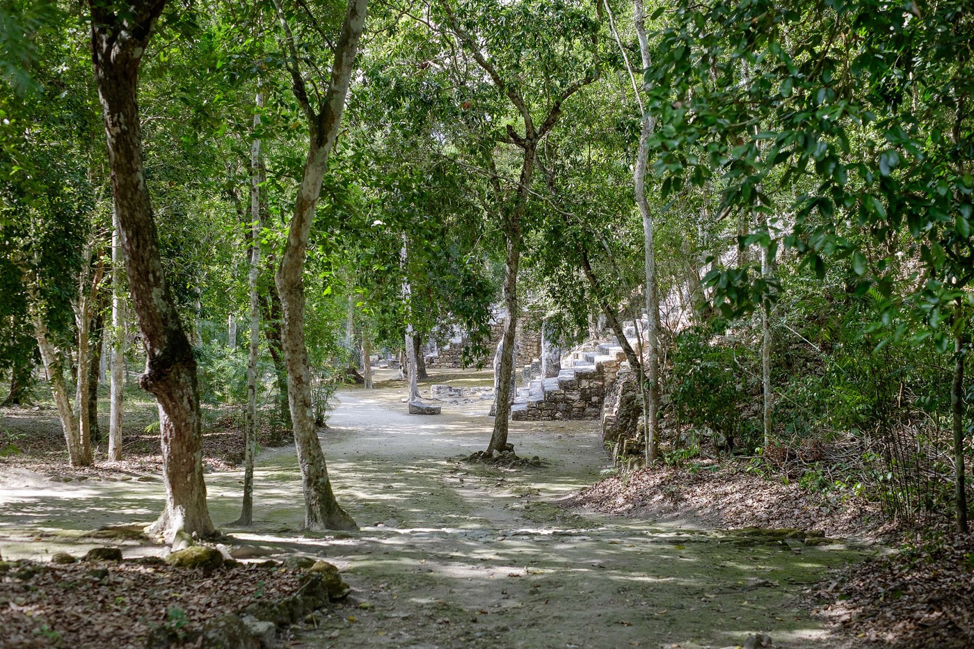 Tā kā bijām izbraukuši no rīta, visai laicīgi bijām klāt. Šeit nu tik tiešām nebija cilvēku. Satikām vien dažus. Interesanti, ka džungļu klātbūtni tā īpaši just nevarēja, ja nu vienīgi no mitruma un smaržām gaisā. Protams, ka valsts šo objektu ir nedaudz labiekārtojusi, lai nenobradā visu. Ir ierīkoti celiņi, stendi un tamlīdzīgi, taču šeit nav nekā no citiem piramīdu kompleksiem. Nav kiosku, restorānu, suvenīru veikalu vai tūristu autobusu stāvvietu. Godīgi sakot, 60 kilometru piebraucamo ceļu nemaz nav iespējams nobraukt ar autobusu, jebkāda izmēra. Tā nu pastaigājāmies, novērojām dažādus dzīvniekus, kokos guļošus pērtiķus, putnus. Uzkāpām fantastiski augstajā piramīdā, šoreiz visi. Augšā satikām tikai vienu cilvēku, kurš palūdza, lai viņu nobildējam. Tad nobildēja arī mūs.