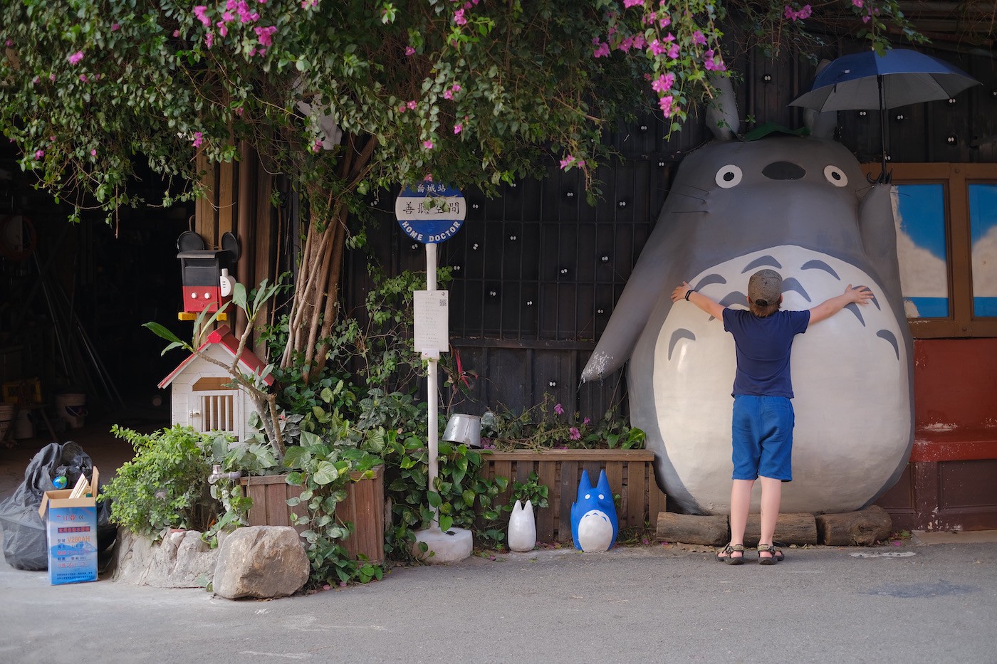 Autobuss visus izlaida pie kārtējā 7-11 veikala, kur varēja nopirkt dzeramo un kaut kādu pārtiku vēlākam. Saņēmāmies, uzkrāvām smagās somas un devāmies uz ciema informācijas centru. Te jau bija jūtams, ka vieta ir daudz tūristiskāka, jo bija vairākas lielo autobusu stāvvietas, pamatīga izmēra galvenais laukums ar lielu tūristu info centru. Tur arī nolikām somas (tā kā bijām izčekojušies no Fenchihu viesnīcas, bet nākamā nakts bija paredzēta citur, bijām ar smagajām somām). Interesanti, ka somas te vienkārši var nolikt plauktos, nav nekādu slēdzamo kodu vai taloniņu. Te ir droši un neviens par potenciāliem zagļiem vispār nestreso.