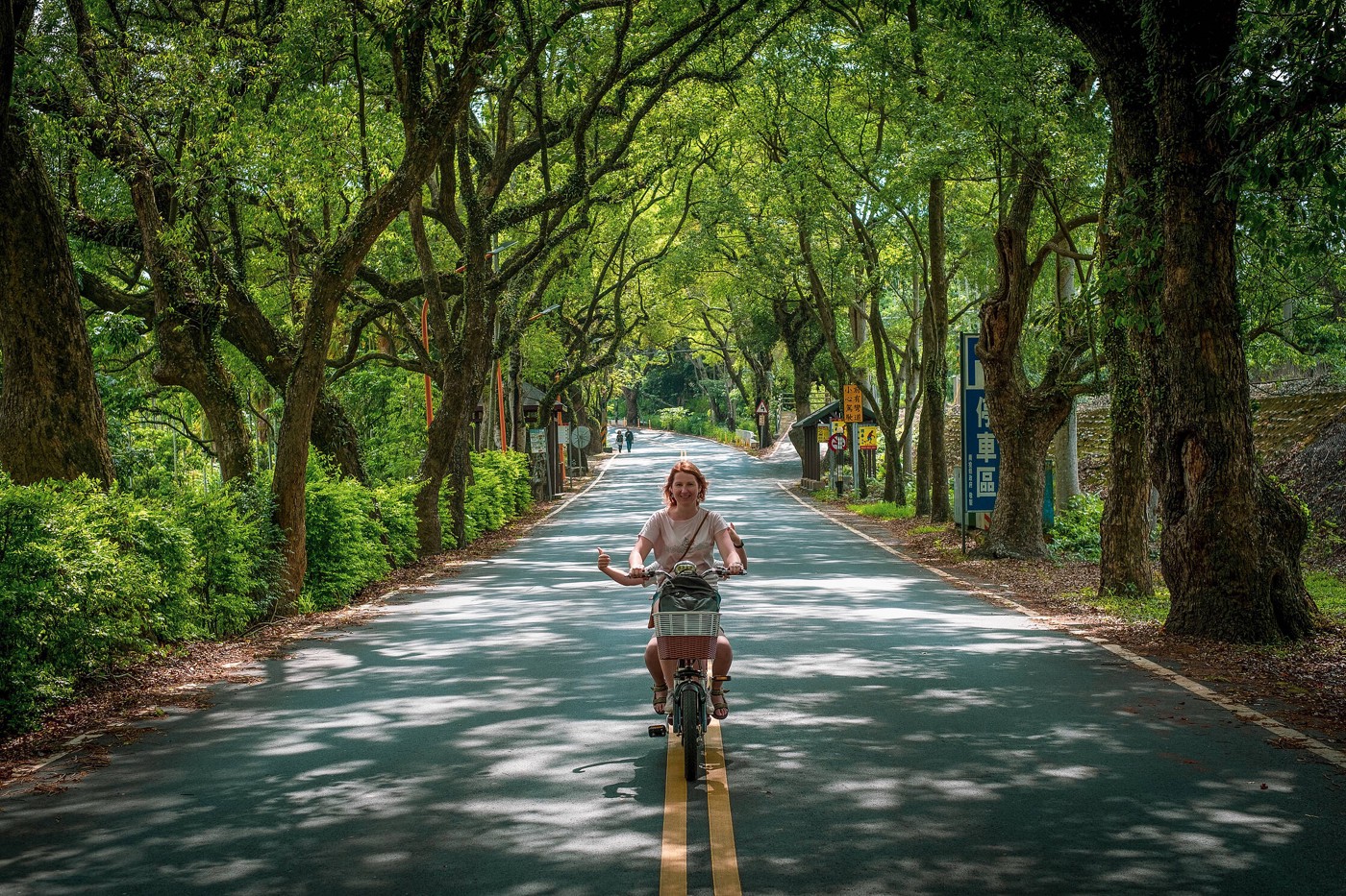 Tālāk ar saviem braucamajiem dodamies apskatīt “Ershui green tunnel”, kas, izrādās, ir vienkārši auto ceļš, kura abās pusēs ir skaisti saauguši kampara koki, veidojot tādu kā zaļa tuneļa iespaidu. Brauciens bija tik tiešām izbaudāms, un skūterīši ir jautrs pasākums, tiešām iesaku izmēģināt un cena nebija nekāda lielā (ap pieci eiro par vienu, ja nekļūdos).