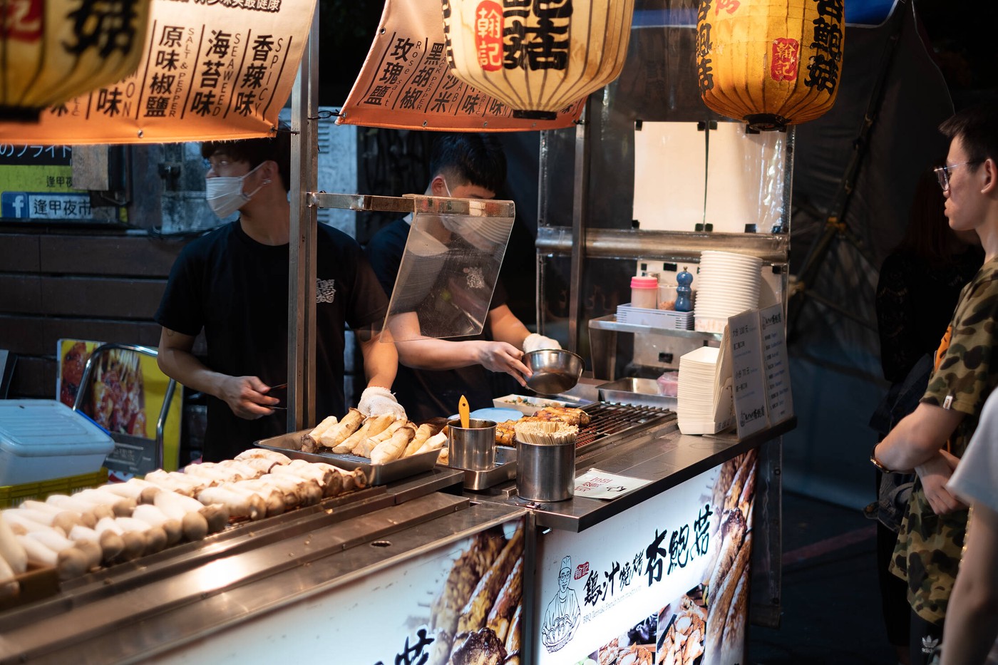Vakarpusē velosipēdus atstājām kādā no velosipēdu nomu punktiem, tālāk ar kājām devāmies apskatīt nakts tirgu. Nakts tirgus ir tieši “street food” ielu ēdiena tirgus, kur cilvēki dodas paēst nelielas porcijas, taču vairākās vietās. Tirgošanās kā tādas šajos tirdziņos parasti nav. Šajā ceļojumā nakts tirgus apmeklējām praktiski visās pilsētās, kurās bijām, jo tie ir Taivānas kultūras neatņemama sastāvdaļa. Konkrētais tirdziņš bija izvietojies aktīvas ielas malā, tāpēc nebija ļoti patīkami staigāt, bet nu ēdieni bija lieliski, kā jau parasti. Ēdām dažādas interesantas lietas, kā eļļā vārītas kartupeļu bumbiņas, zaļumu pankūkas, panētas garneles.