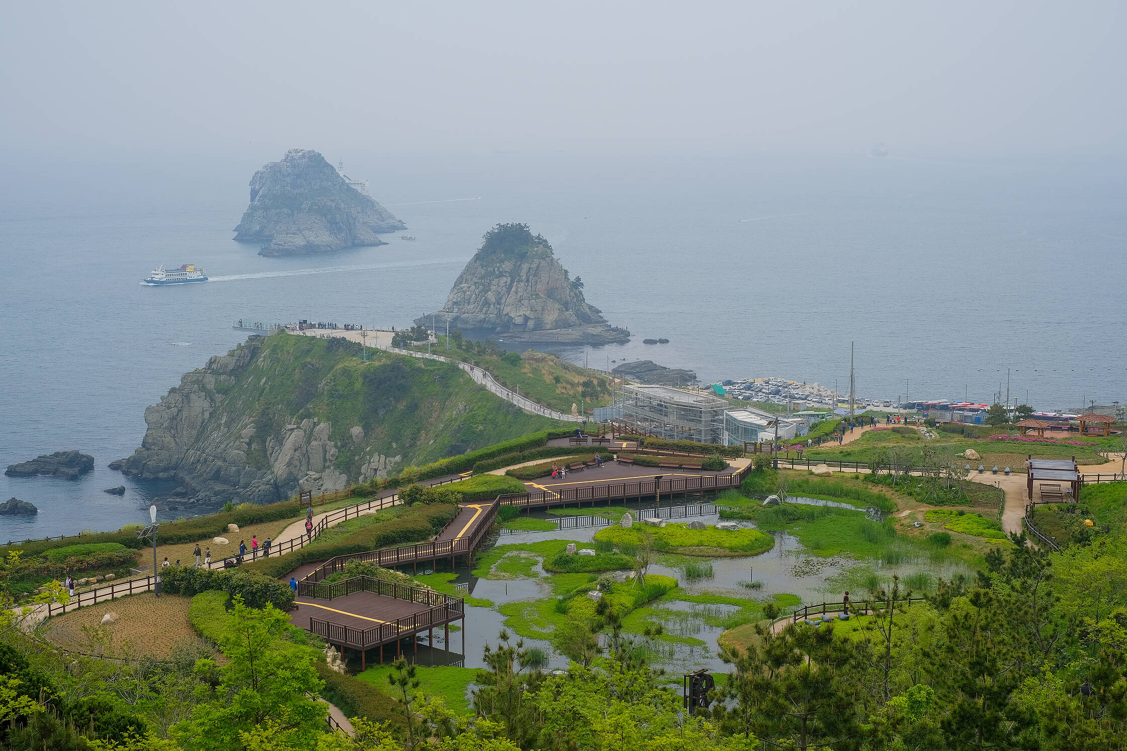 Objekts uz kuru atbraucām atrodas uz klints. Tas ir stikla tiltiņš, kas ļauj nelielu aplīti izstaigāt pāri klints malai. Interesanti, ka šis ir ļoti organizēts un labiekārtots izklaides pasākums, laipns apsargs izsniedz mīkstas samta čības, lai nebojātu stiklu. Taču neskatoties uz to visu, apmeklējums ir bezmaksas. Skats ir skaists, taču, līdzīgi kā Japānā, arī Korejas piekraste ir tāda vairāk skarba un drūma. Grūti pateikt kāpēc tā šķiet, bet tāda sajūta rodas.