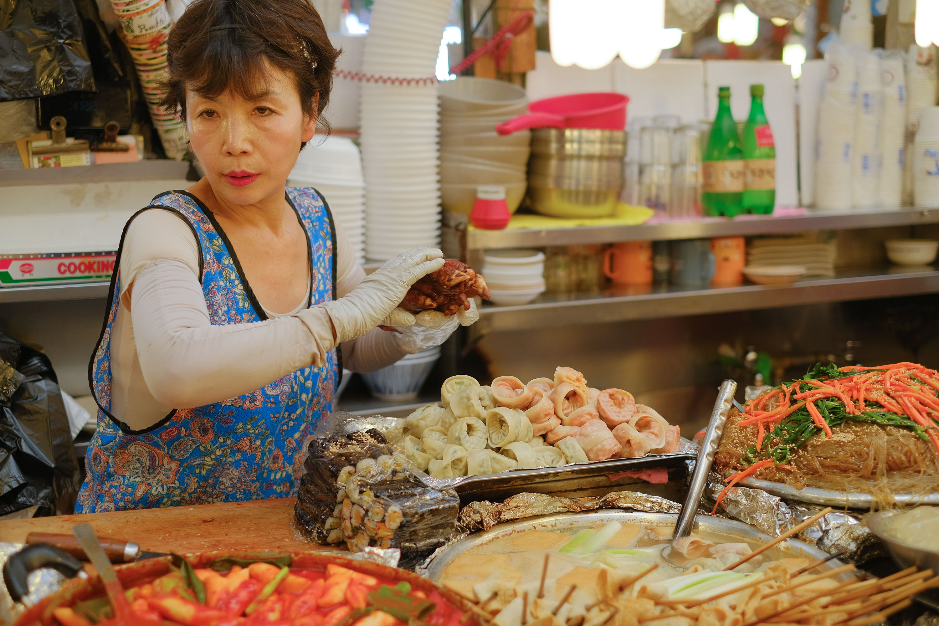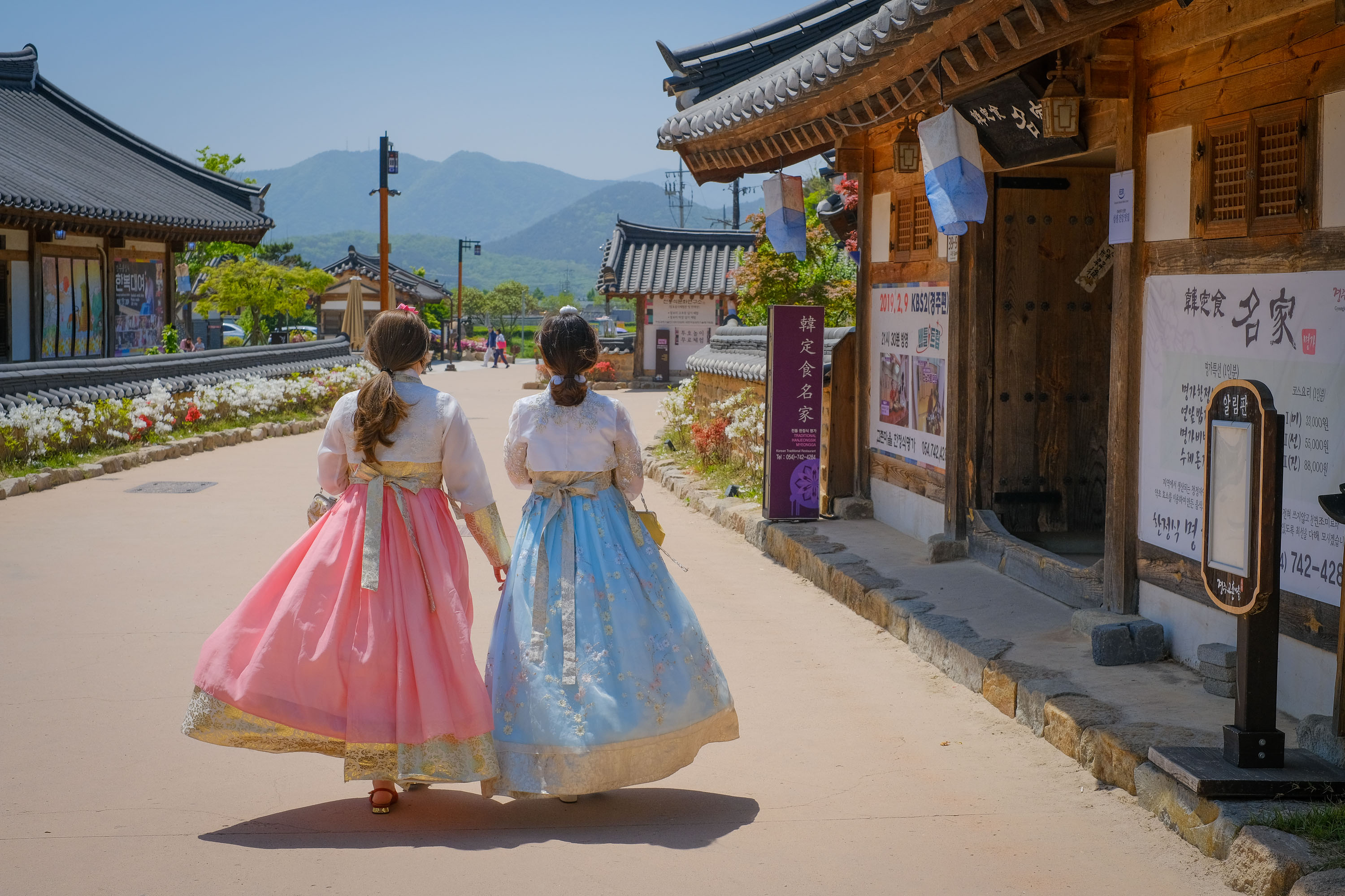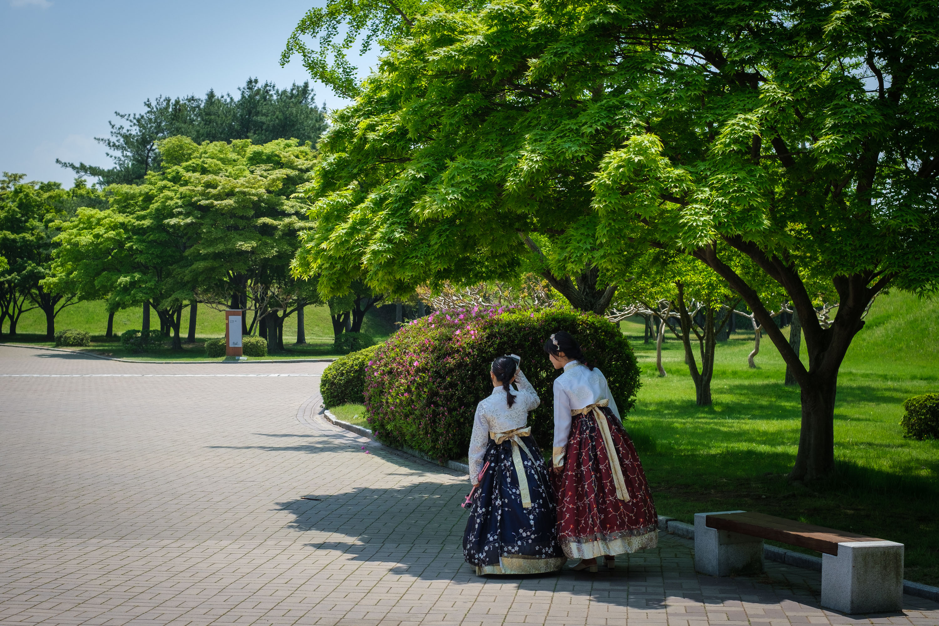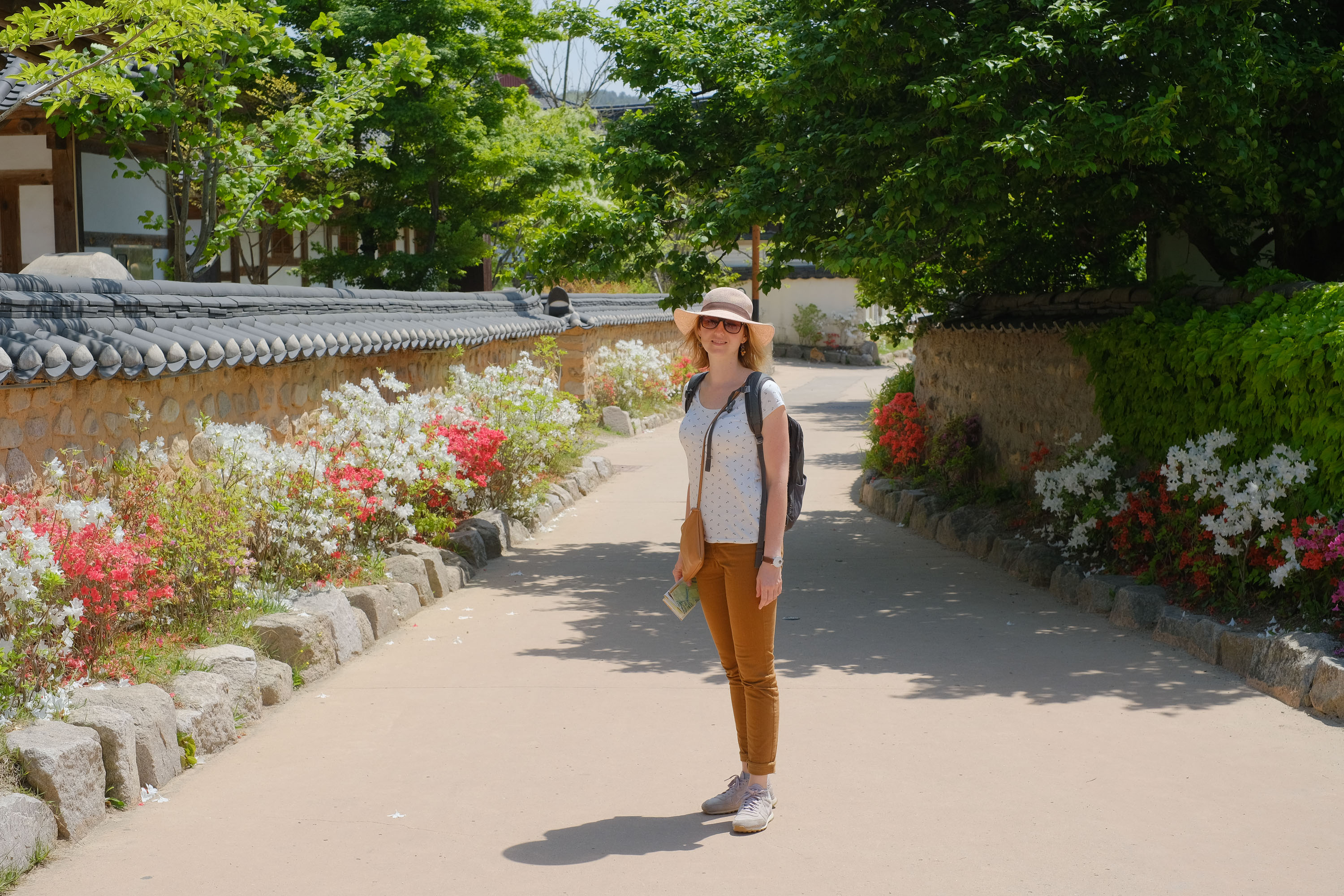 Kronis visam bija tas, ka kaimiņu istabiņas iemītnieki bija visi saģērbušies tradicionālajos koreješu tautas tērpos un varējām sajusties kā 100% pasaku multeņu Korejā. Tā nu mēs izstaigājām Hanoku rajonu krustu šķērsu, paēdām pelmenīšus, padzērām kafiju. Starp citu, viena no atmiņām šajā miestā ir tāda, ka bija pagrūti atrast kur paēst. Tas tāpēc, ka paši neēdam gaļu, bet korejieši ir visai izteikti gaļas ēdāji. Pāris vietās nācās iet projām, jo menu nebija nekā piemērota.