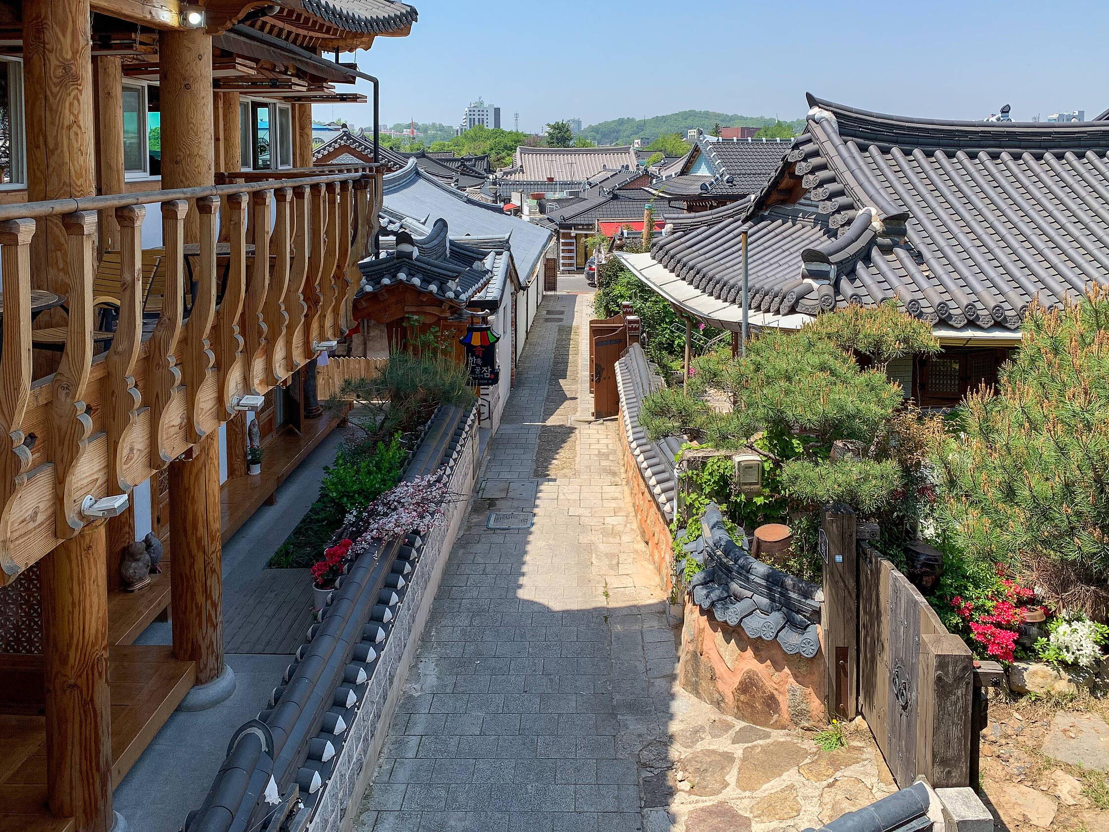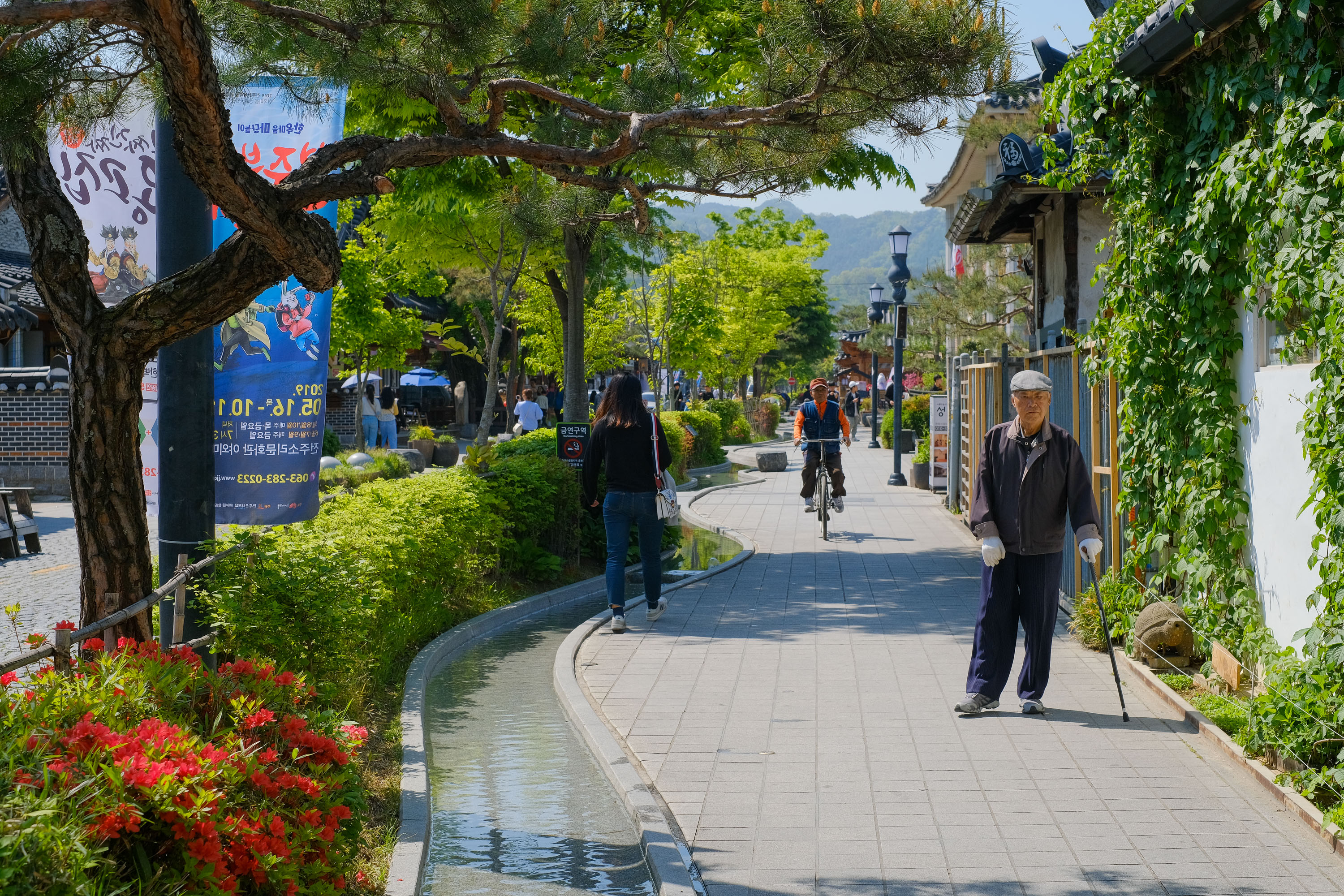 Kopā tas Jeonju Hanok Village rajons ir tāds jauks, vienstāvas apbūves rajons, kurā ir skaista centrālā ieliņa ar daudz kafejnīcām un smuku upīti.