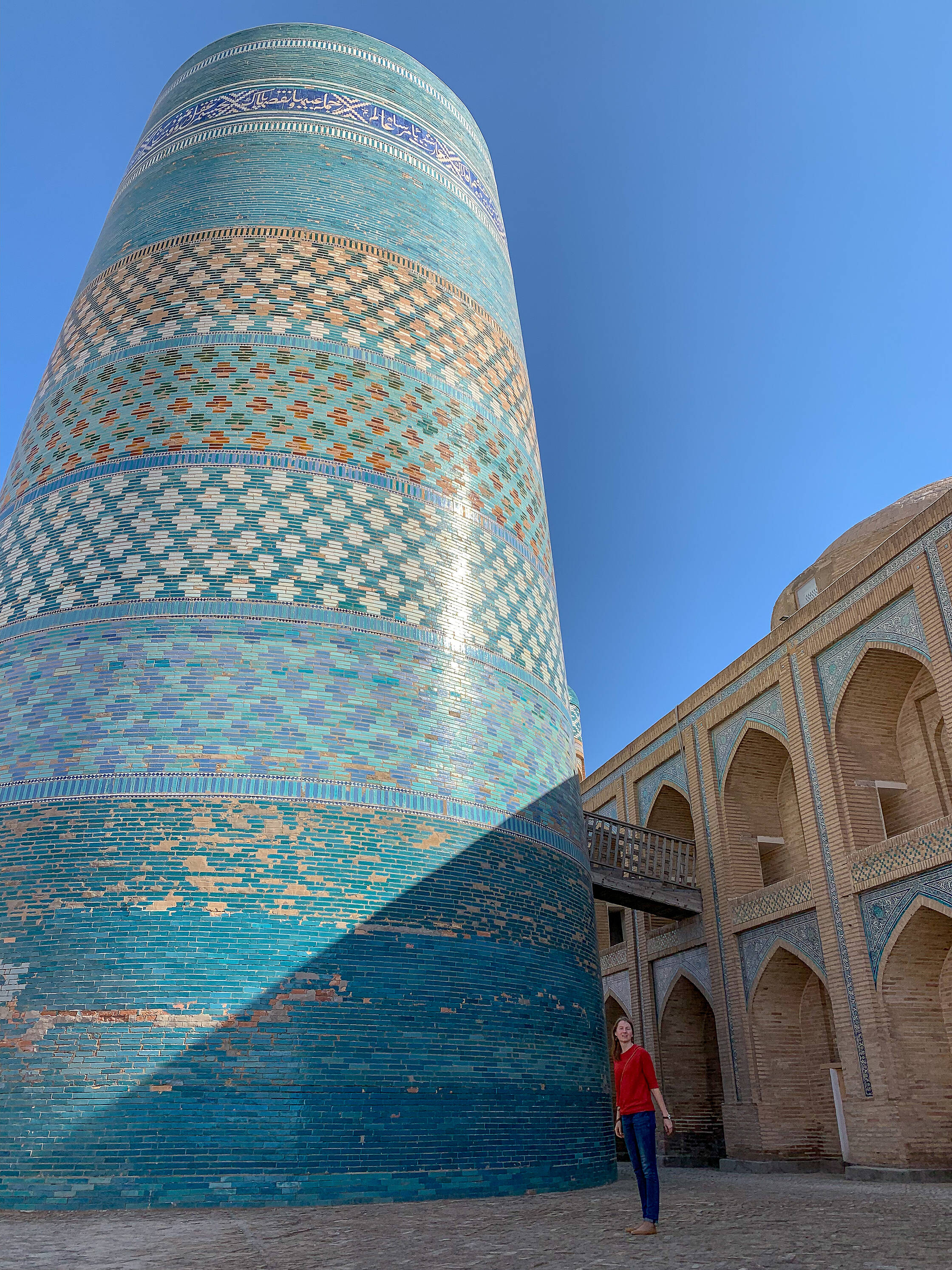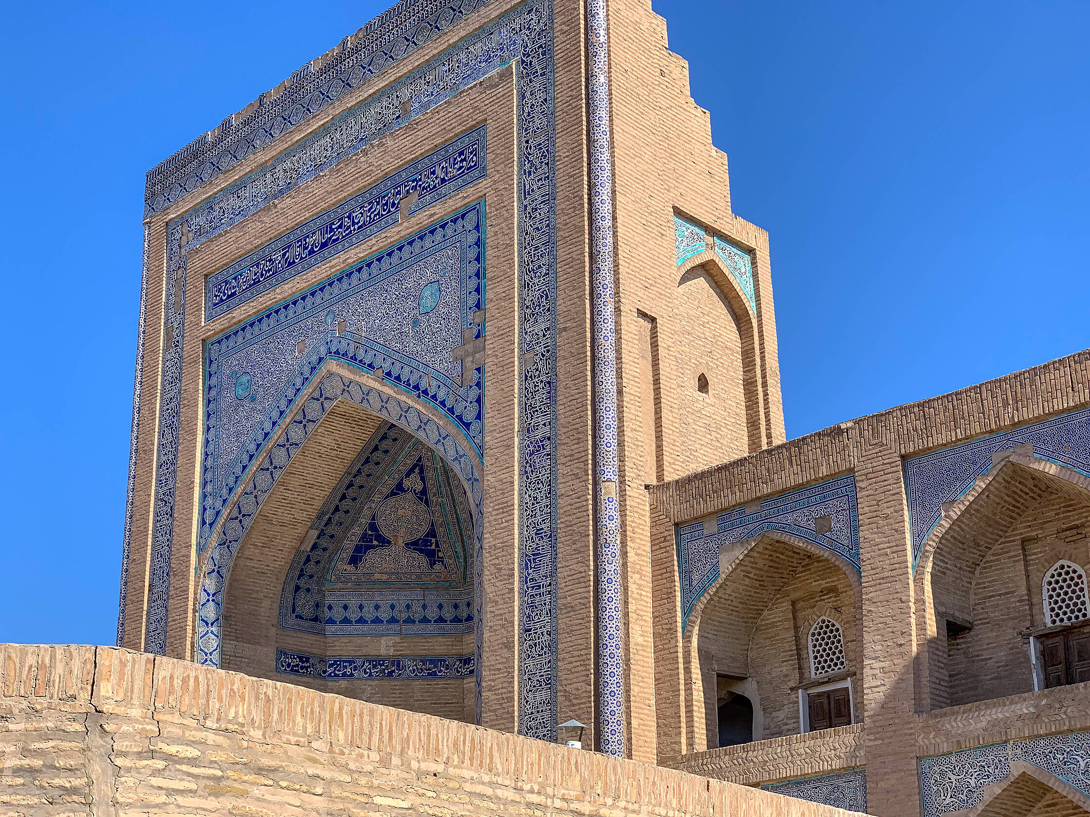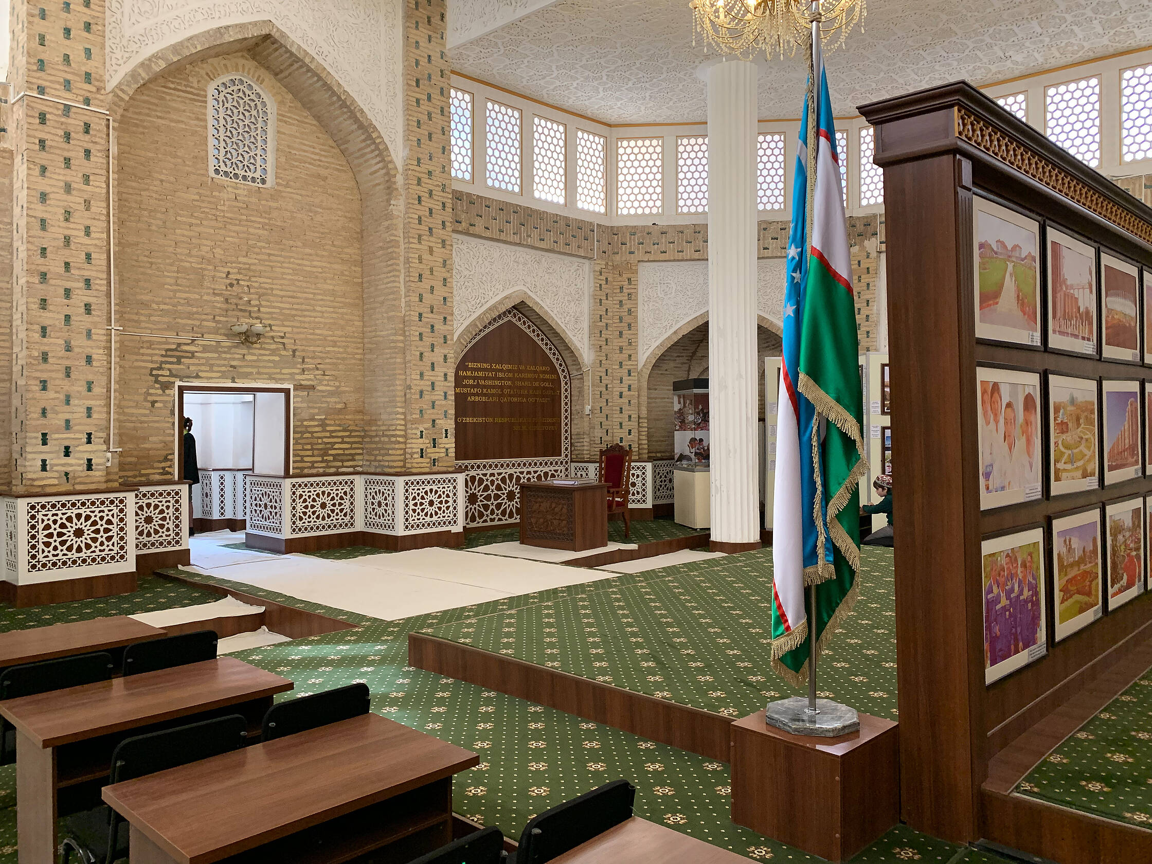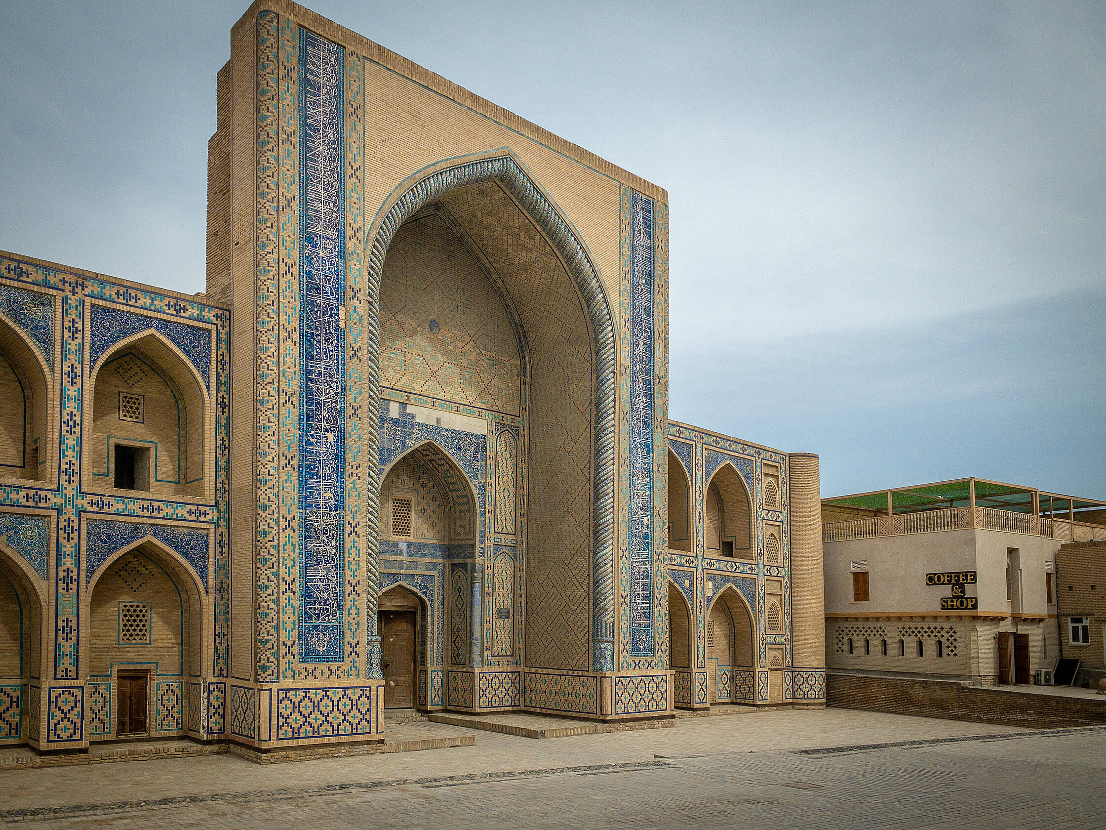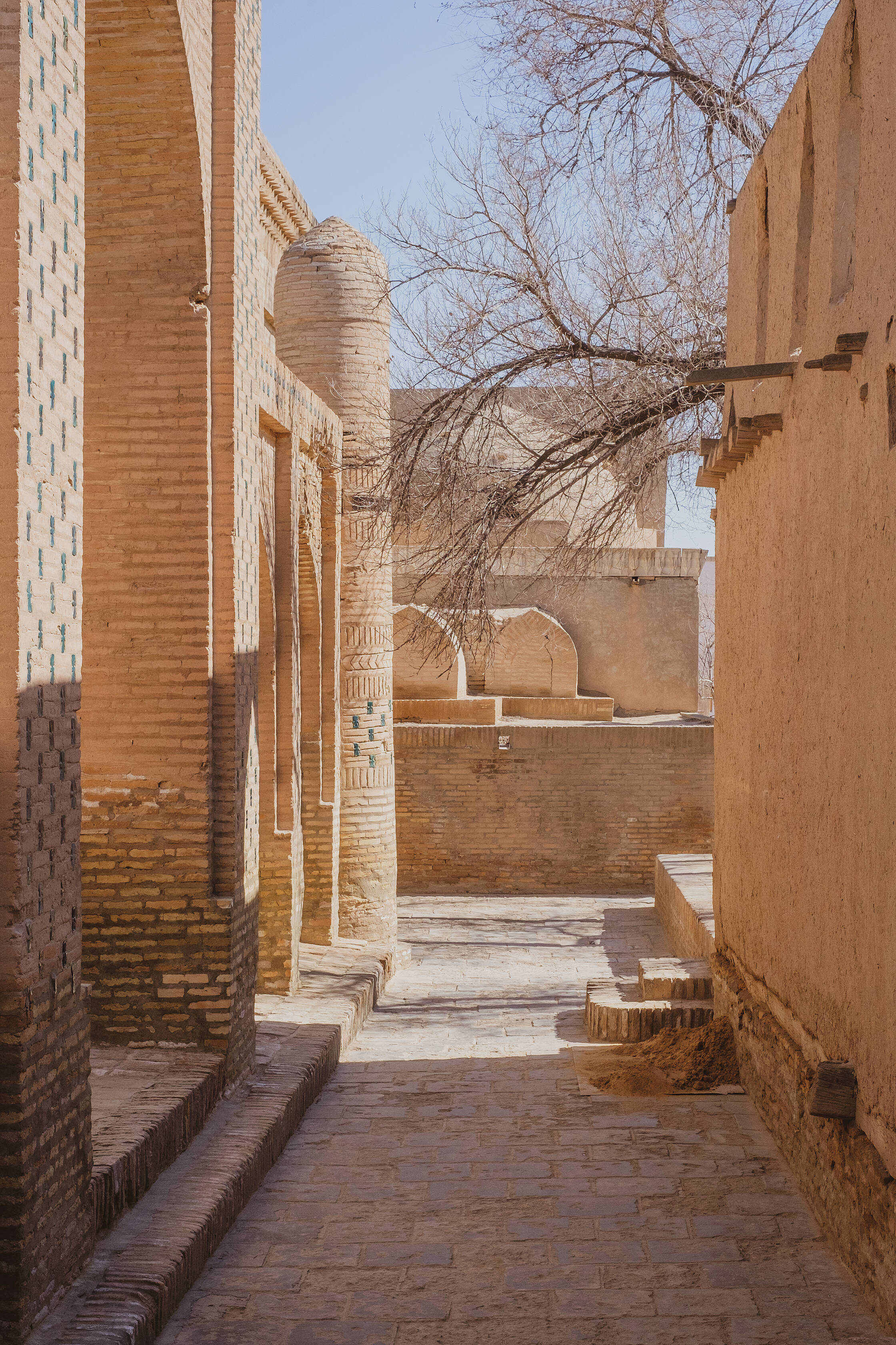 Netālu no tirgus ir interesanta medrese (medrese ir tāda savdabīga izskata ēka, kura islāma pasaulē ir garīgā skola, nereti atrodas tuvumā mošejām), pirmā skaistā ēka, kuru Uzbekistānā apskatījām. Nu jā, starp citu, Uzbekistāna ir musulmaņu valsts, taču te ir tāds kā pasīvais islāms. Tagad lūdzu piedodiet, ja sapinos terminoloģijā, es nevienu negribu aizvainot, vienkārši neesmu lietpratējs. Lielākā daļa uzbeku nepieder konkrētai islāma skolai, kā arī nav tādi izteikti musulmaņi, drīzāk “uz papīra musulmaņi”. Padomju laikos te vispār nenotika nekāda reliģijas praktizēšana, taču deviņdesmitajos, kad valsts atguva neatkarību, jaunais prezidents arī nebija īsti ar pilnu rubli, tāpēc tur nevarēja īsti saprast. Oficiāli nebija nekas aizliegts, taču minareti pareizajās stundās klusēja līdz pat pagājušajam gadam, kad pirmais un vienīgais prezidents nomira un pie varas nāca jauns, progresīvs un uz rietumiem orientēts prezidents. Pavisam nesen no dažiem minaretiem esot pirmo reizi atkanējuši muezīna aicinājumi uz lūgšanām. Kaut kādā mērā, man braucienā pietrūka šo maģisko saucienu, jo minaretu šajā valstī ir daudz, taču tie klusē.