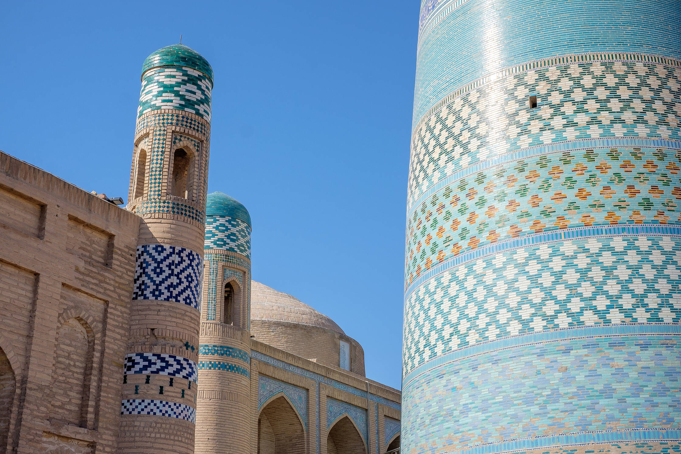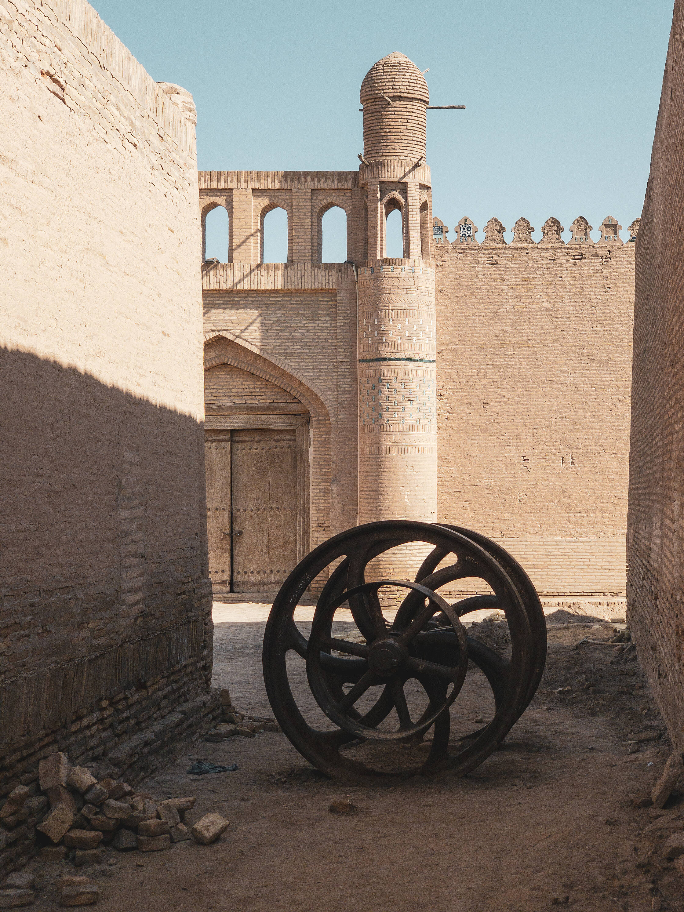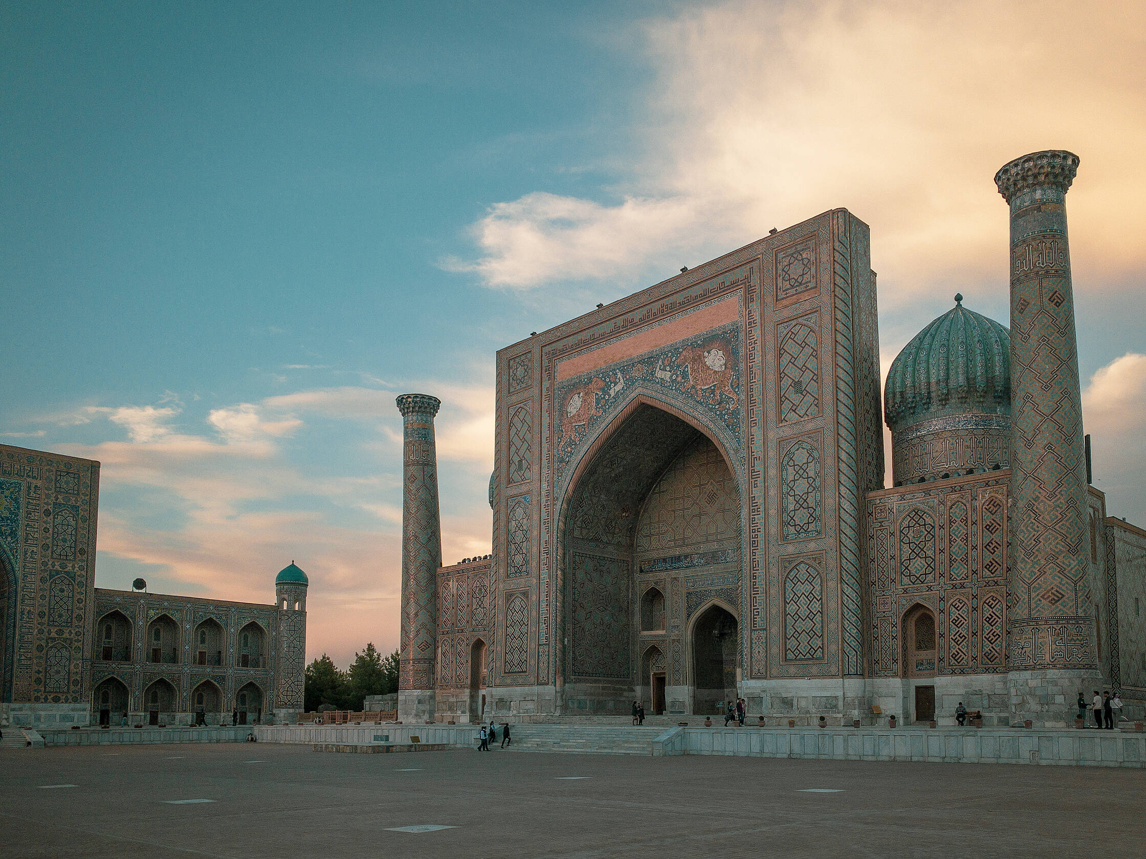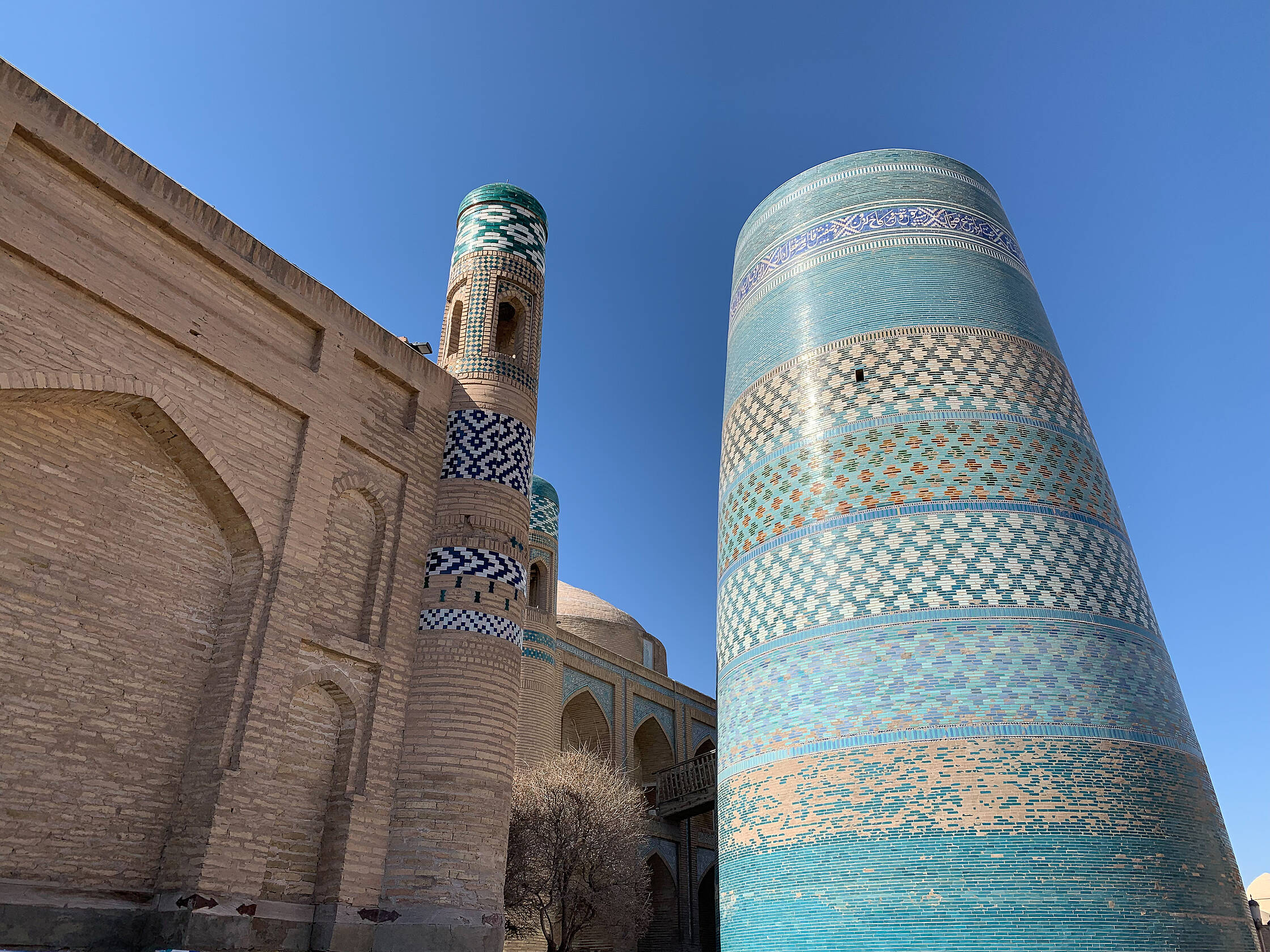 Netālu no tirgus ir interesanta medrese (medrese ir tāda savdabīga izskata ēka, kura islāma pasaulē ir garīgā skola, nereti atrodas tuvumā mošejām), pirmā skaistā ēka, kuru Uzbekistānā apskatījām. Nu jā, starp citu, Uzbekistāna ir musulmaņu valsts, taču te ir tāds kā pasīvais islāms. Tagad lūdzu piedodiet, ja sapinos terminoloģijā, es nevienu negribu aizvainot, vienkārši neesmu lietpratējs. Lielākā daļa uzbeku nepieder konkrētai islāma skolai, kā arī nav tādi izteikti musulmaņi, drīzāk “uz papīra musulmaņi”. Padomju laikos te vispār nenotika nekāda reliģijas praktizēšana, taču deviņdesmitajos, kad valsts atguva neatkarību, jaunais prezidents arī nebija īsti ar pilnu rubli, tāpēc tur nevarēja īsti saprast. Oficiāli nebija nekas aizliegts, taču minareti pareizajās stundās klusēja līdz pat pagājušajam gadam, kad pirmais un vienīgais prezidents nomira un pie varas nāca jauns, progresīvs un uz rietumiem orientēts prezidents. Pavisam nesen no dažiem minaretiem esot pirmo reizi atkanējuši muezīna aicinājumi uz lūgšanām. Kaut kādā mērā, man braucienā pietrūka šo maģisko saucienu, jo minaretu šajā valstī ir daudz, taču tie klusē.