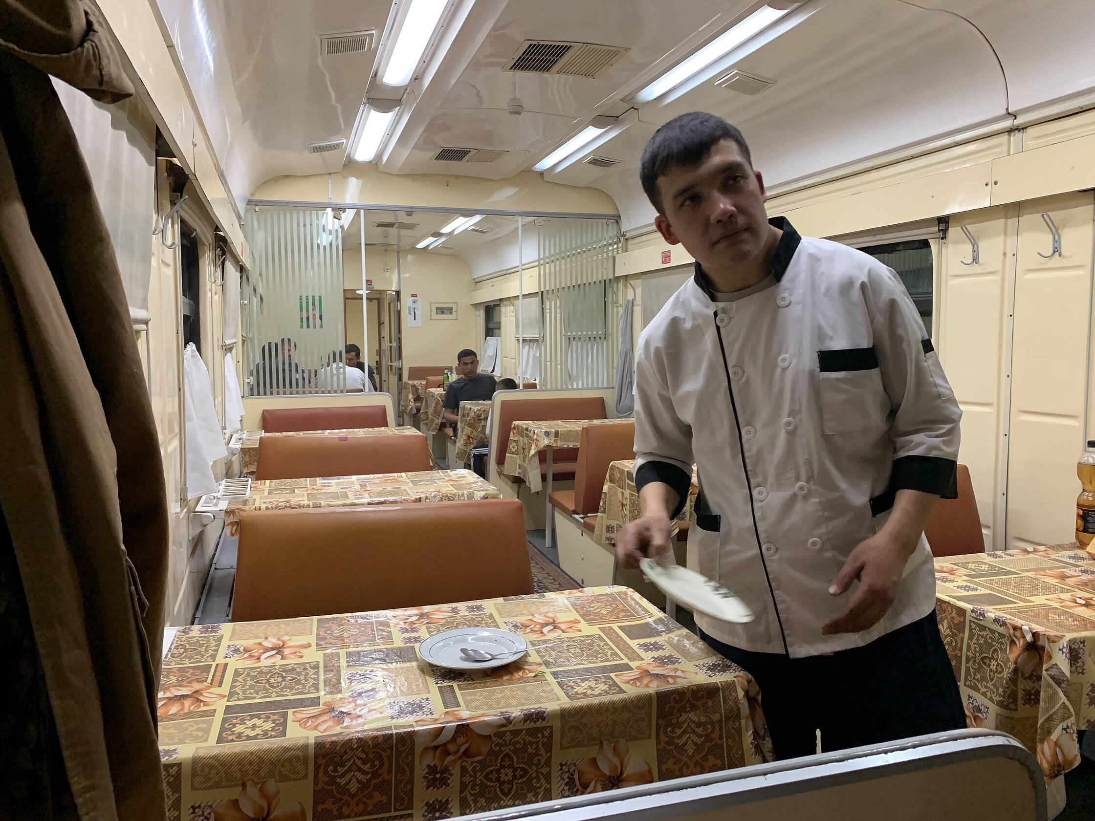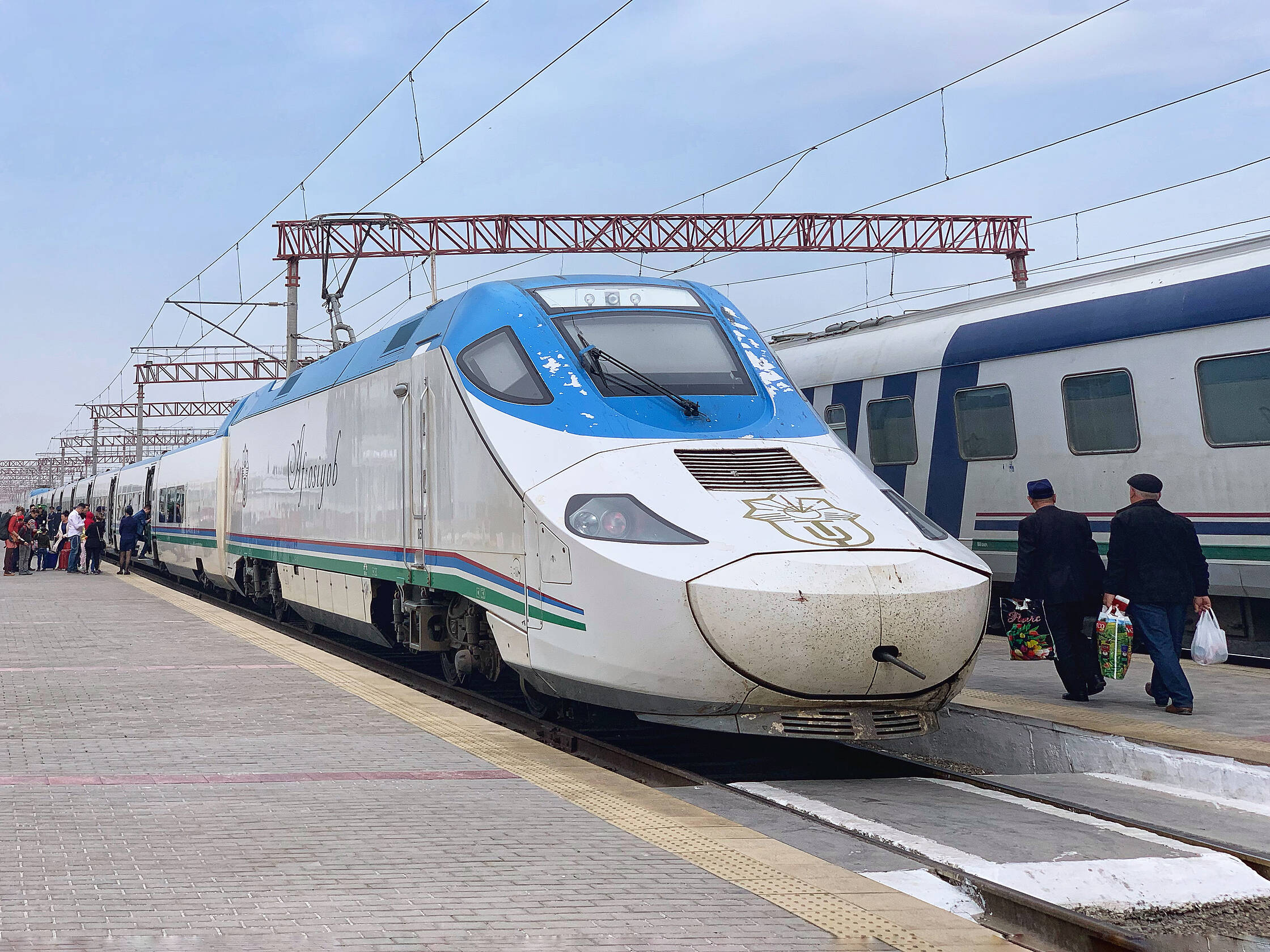 Nākamie divi vilcieni bija paredzēti ātrvilcieni. Biju pārsteigts uzzināt, ka Uzbekistāna ir viena no 18 valstīm, kurās ir strādājošas dzelzceļa līnijas, ar reālo pārvietošanās ātrumu virs 250km/h. Uzbeku vilciens ir Spānijas Talgo, tīri labs un komfortabls vilciens. Varbūt vietām, kur sliedes nebija uzliktas tik precīzi, vilciena interjers nedaudz grabēja, taču šā vai tā - līmenijs bija stipri virs piedzīvotajiem guļvagoniem.