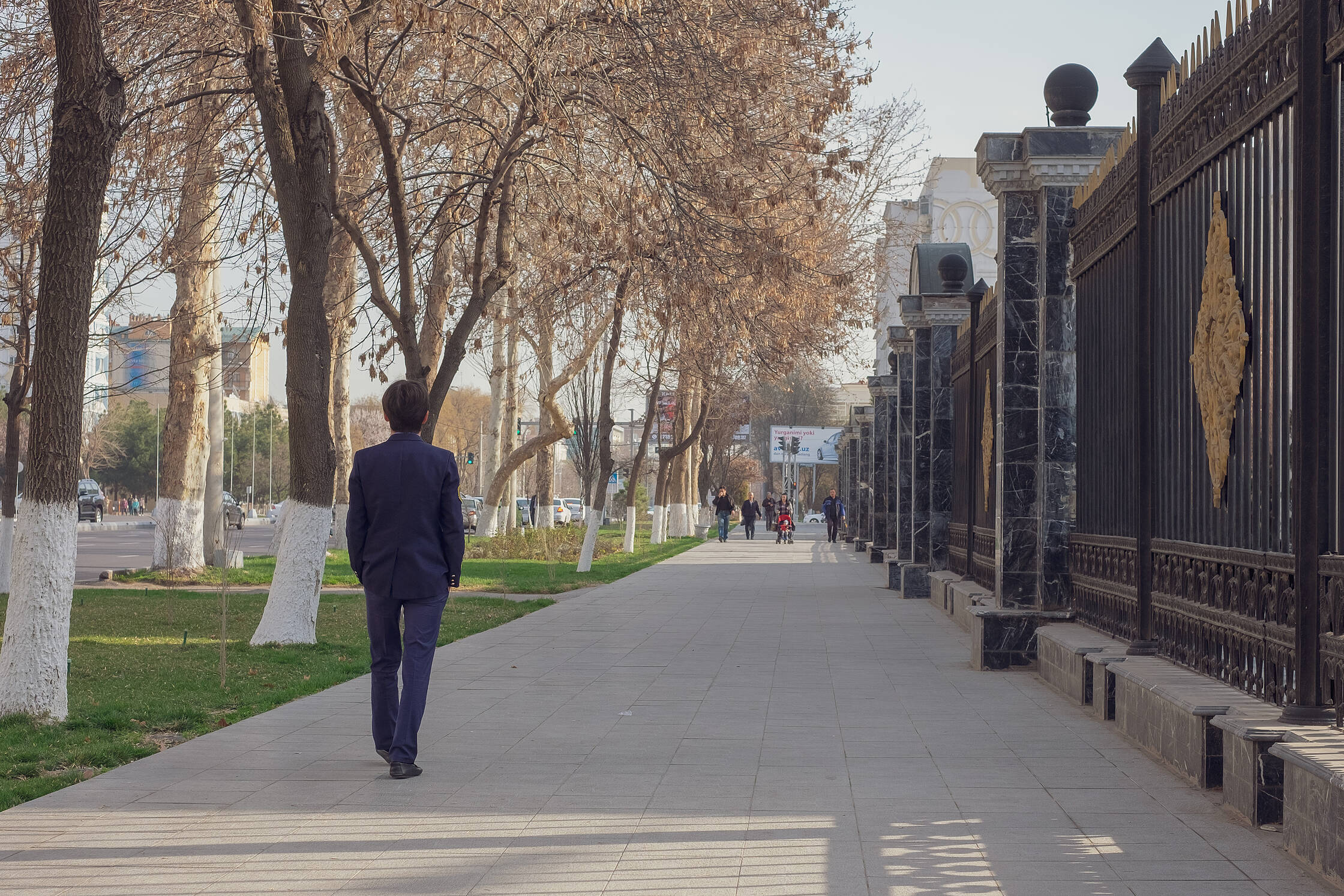 Samainījuši kasē biļetes, devāmies izpētīt Taškentu. Pilsēta nemaz nav tik slikta, bija jauks un silts laiks, vairāk kā divdesmit grādi. Visur ziedēja ķirši, bija saulains laiks. Pilsētas centrs ir ļoti sakopts un tīrs, ir daudz relatīvi modernu kafejnīcu, daži jauki parki. Izbraucām ar metro, kas ir ļoti līdzīgs Minskas metro (un kaut kādā mērā, protams, arī Maskavas metro). Dažas stacijas ir ļoti krāšņi dekorētas, taču nedaudz jau padzīvojušas. Ja tās pamatīgi sakoptu, būtu ļoti skaisti. Brauciens maksā aptuveni necik.