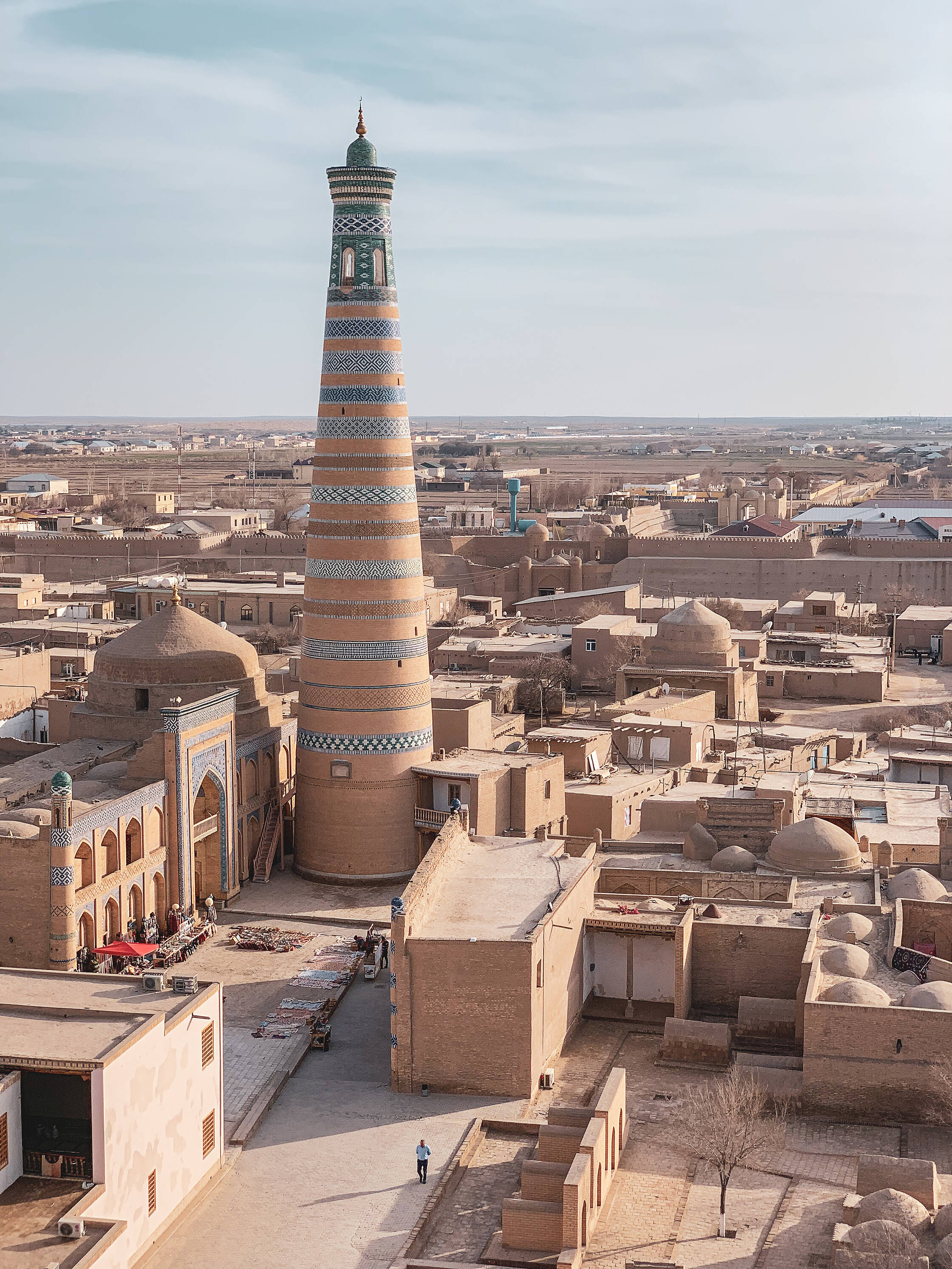 Izejot cauri jaunierīkotajai gājēju ielai, šķērsojot bijušo tirgus laukumu (cik var spriest, arī šeit kaut ko plānots būvēt), nonākam pašā vecpilsētā, sauktā par Itchan Kala. Vecpilsēta ir ļoti kompakta un viegli apstaigājama kājām.