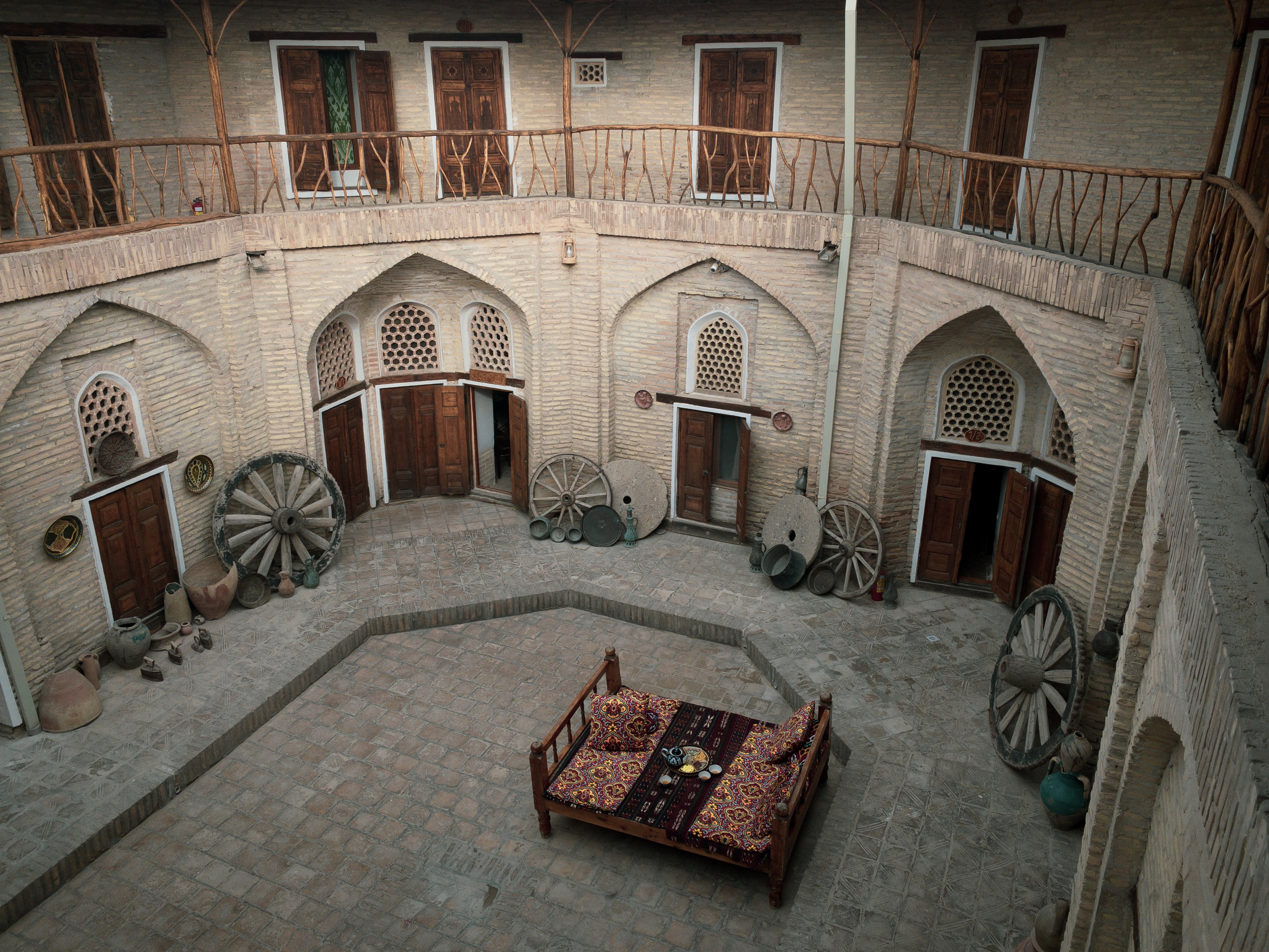 Mūsu viesnīca atradās kādus simts metrus no paša centra un bija ļoti skaista, iebūvēta senā ēkā, ar atklātā tipa pagalmu. Istabiņu durvis labi ja metru piecdesmit augstas, istabas skaisti un tradicionāli dekorētas. Tā kā ieradāmies visai vēlu, šeit bija paredzēts palikt divas naktis.