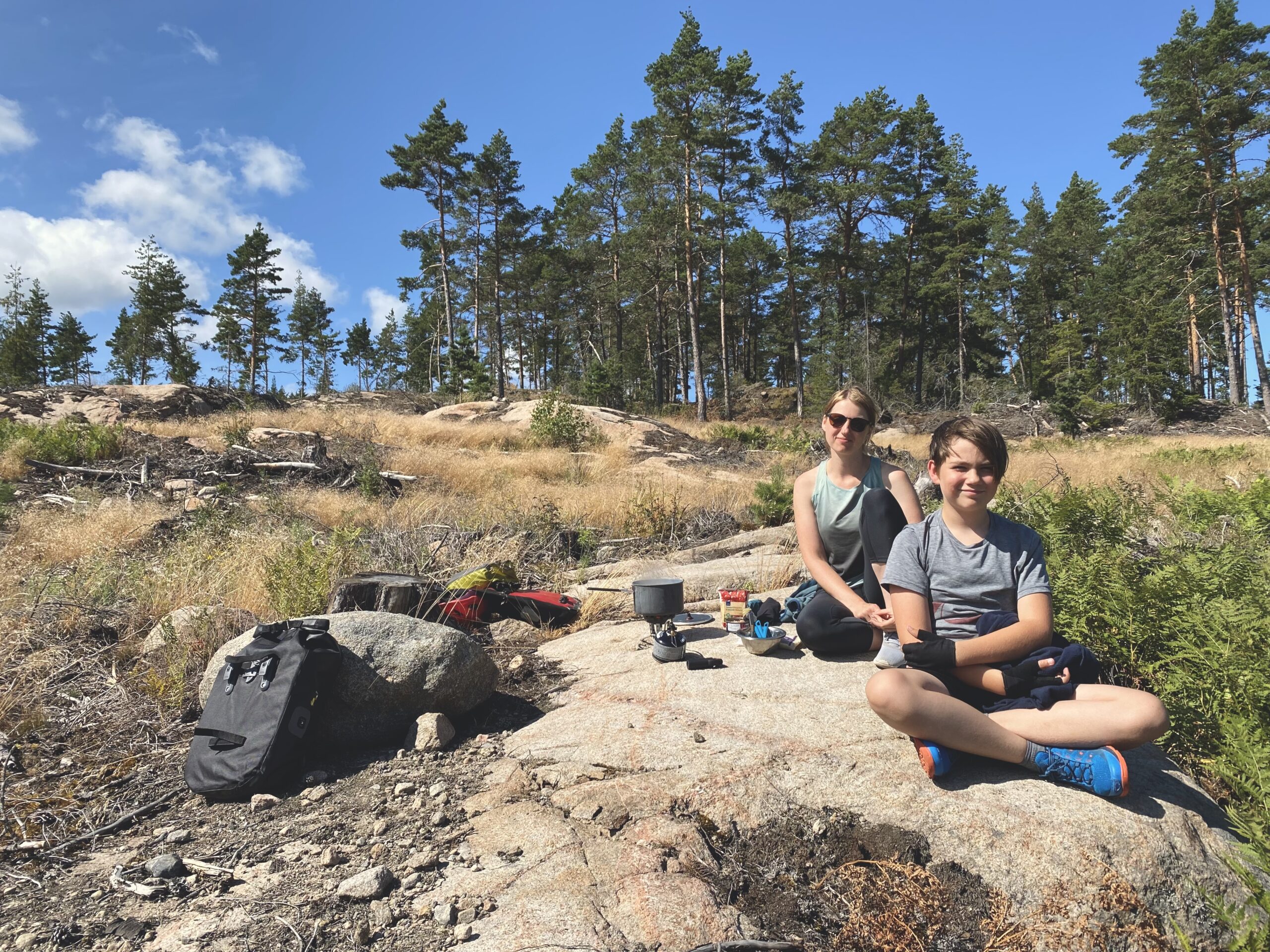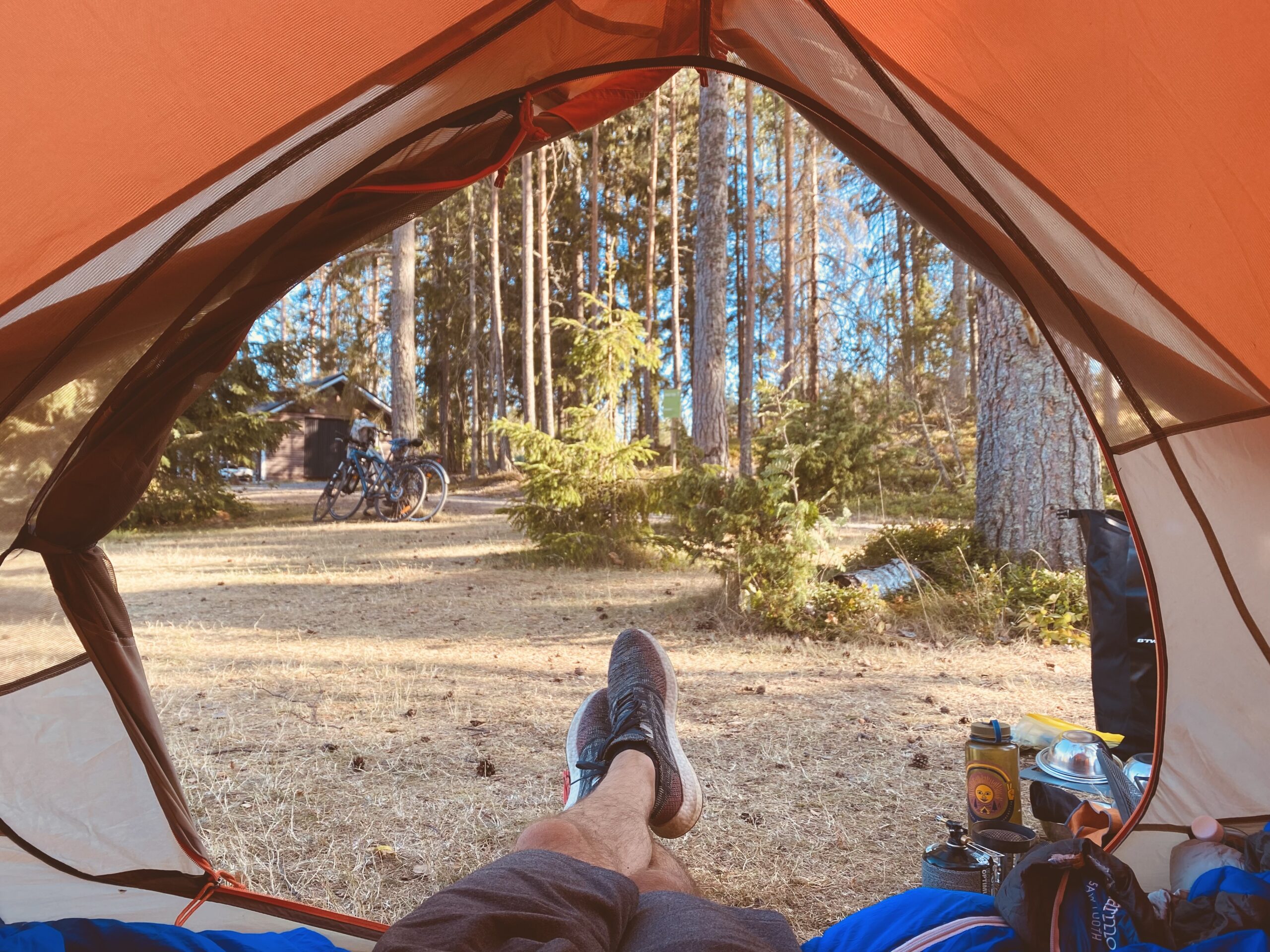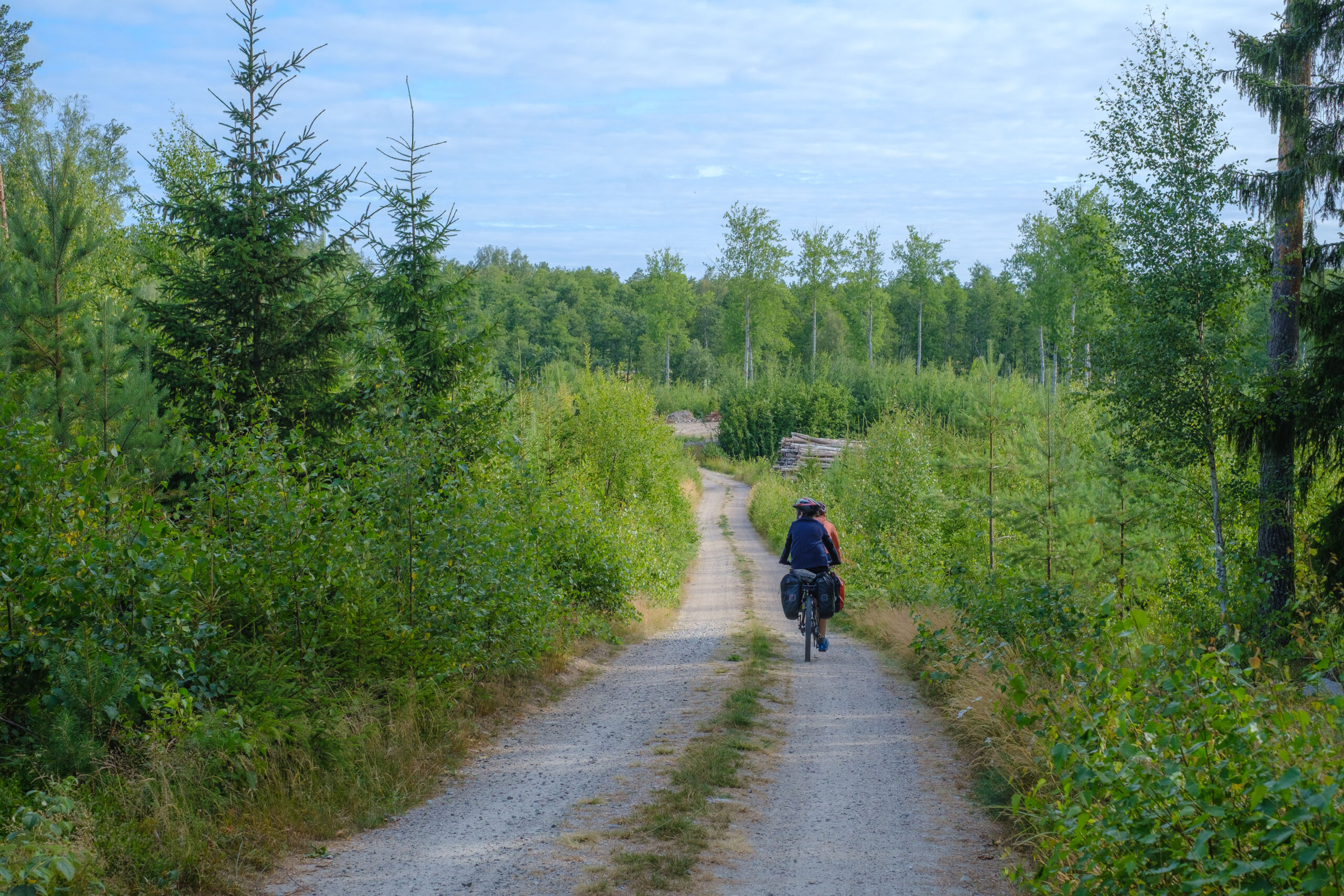 Tā kā izbraucām vakarā, nebijām nobraukuši ārkārtīgi daudz, kad sākām meklēt pirmo naktšņošanas vietu. Man šķiet, ka bija kādi 35 kilometri. Somijā ir t.s. pārvietošanās brīvības likums, kas ļauj ceļotājam būvēt telti, kur vien viņš vēlas, bet šī izvēles brīvība nāk ar saviem mīnusiem. Tas nozīmē, ka nav tādu labiekārtotu vietiņu kā Latvijā un Igaunijā, kā arī tas, ka ja tev ir bezgala daudz izvēles iespēju, ir grūti nolemt, kur tad palikt. Vienmēr gribas pabraukt vēl nedaudz un pameklēt vēl labāku vietu, kas var nogurdināt un beigās frustrēt. Nu un tad ir tas moments, ka no rīta sapakojies, nobrauc kilometru un izrādās, ka tur ir fantastiskākā vieta ar skatu uz ezeru. Yep, arī šoreiz.