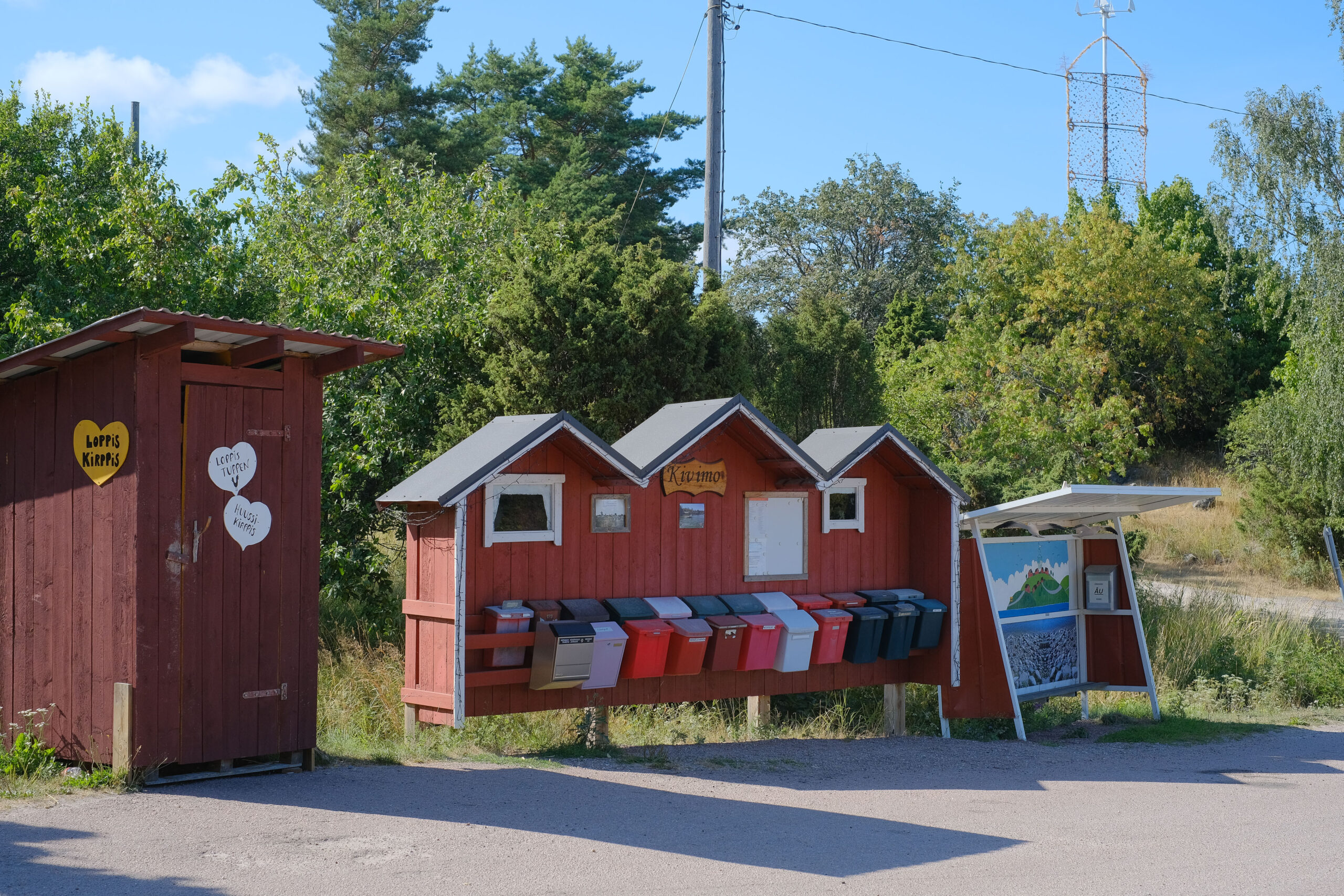 Vēl skatu bagātina tipiskās sakanās mājiņas, kuru iespaidoti beigās pat nopirkām šo “Rodfarg” krāsu, lai nokrāsotu arī sev kādu šķūnīti zviedru toņos (jā, tās krāsainās mājiņas nākot tieši no Zviedrijas, tur vesels stāsts par pašas krāsas izcelsmi un arī par to, kāpēc popularitāte atgriezās, bet tas ir stāsts nevis citai reizei, bet wikipēdijai).